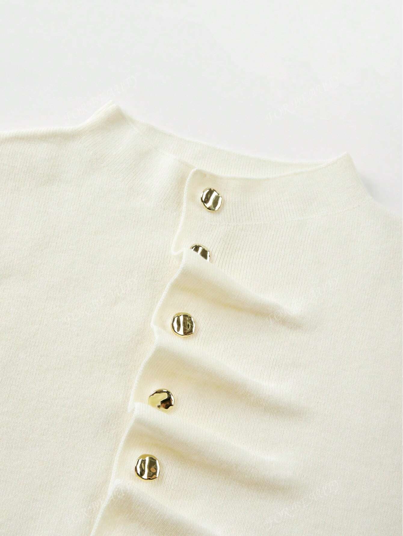 Cardigan lavorato a maglia da donna con collo alto, bottoni singoli, maniche lunghe