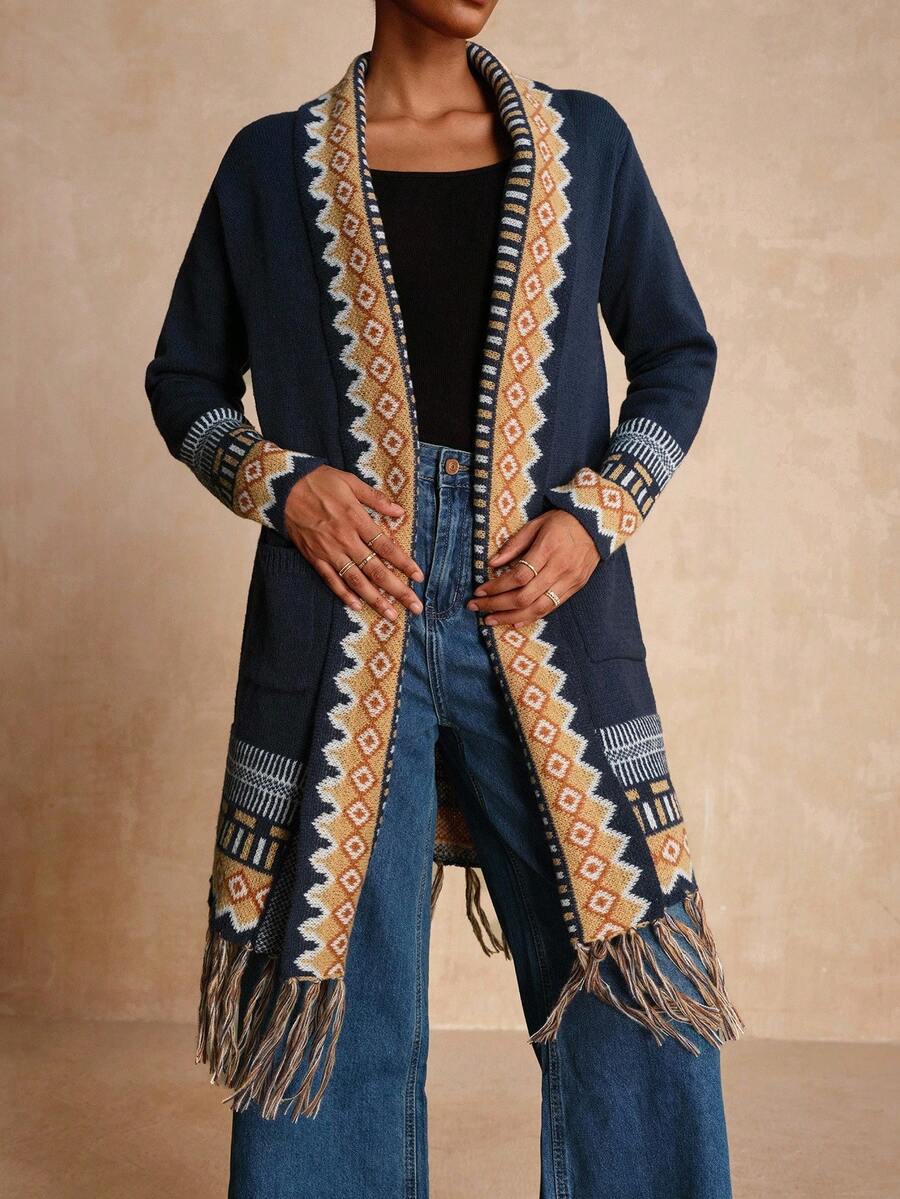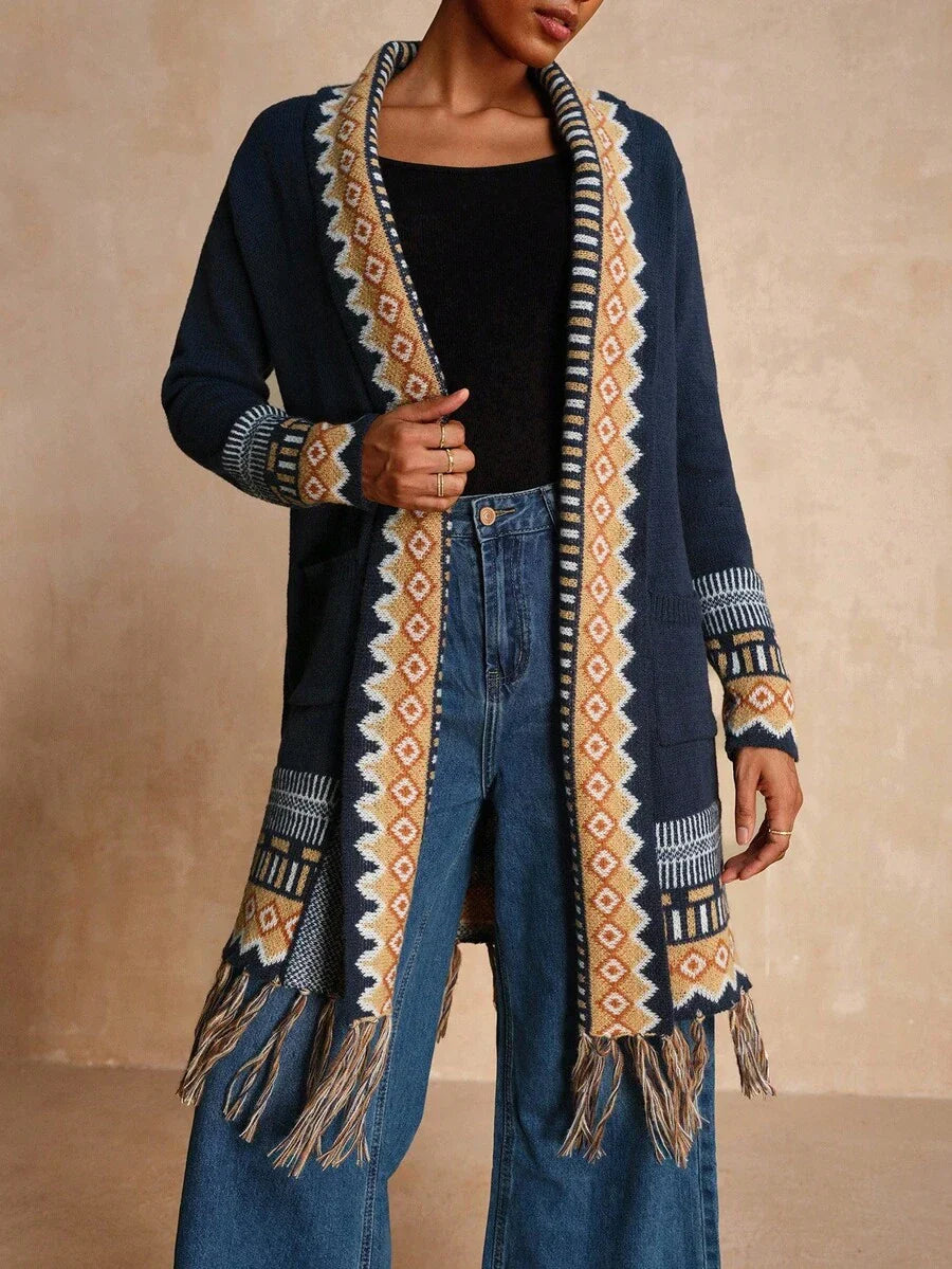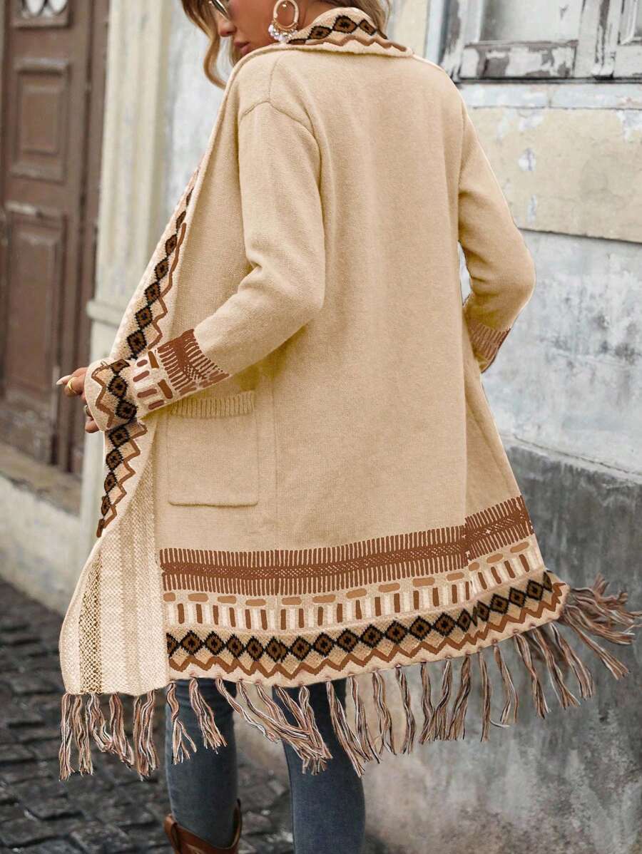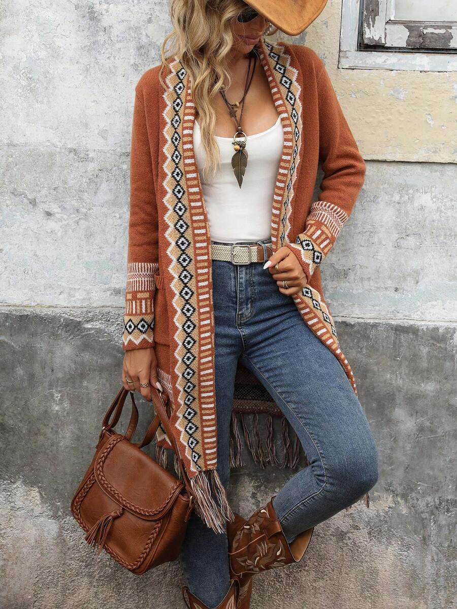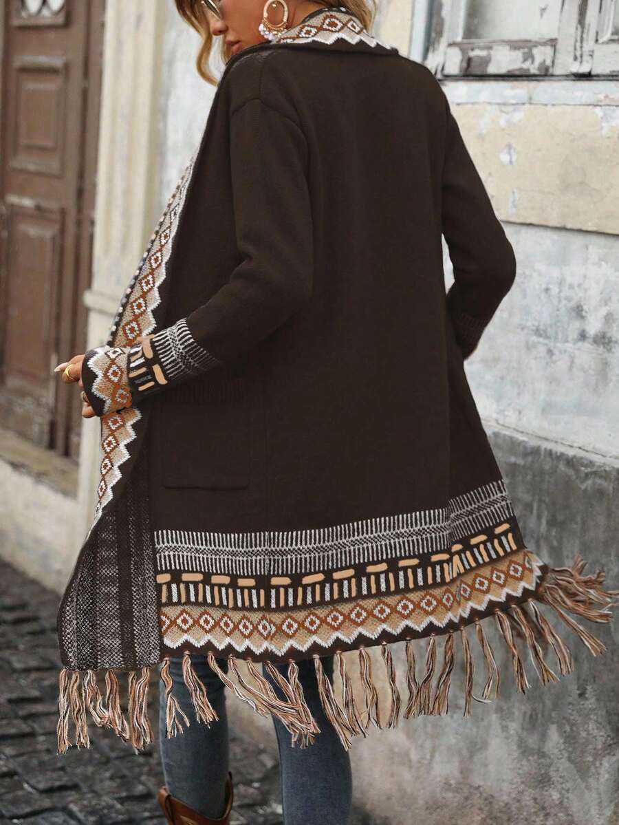 Cardigan lungo a maniche aperte con stampa geometrica da donna, stile casual