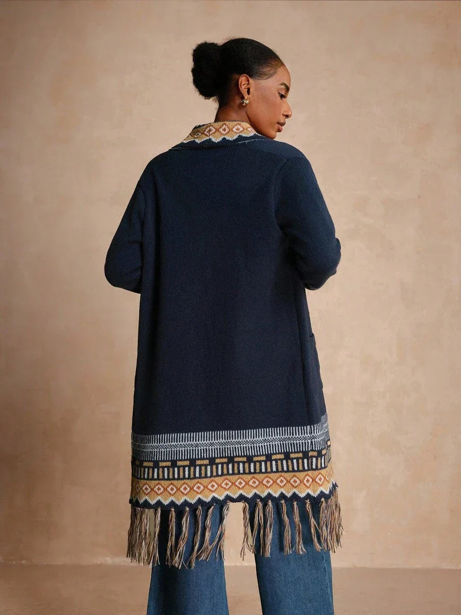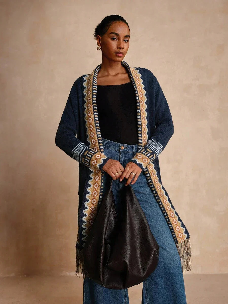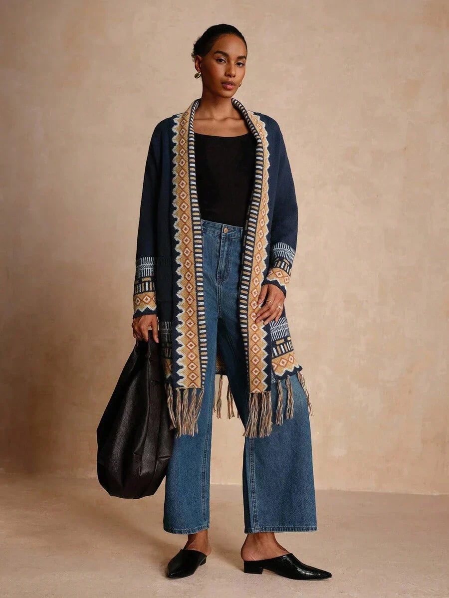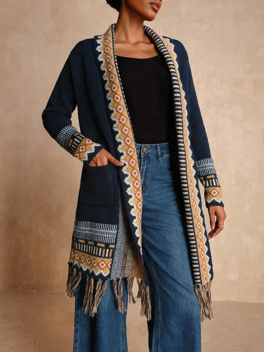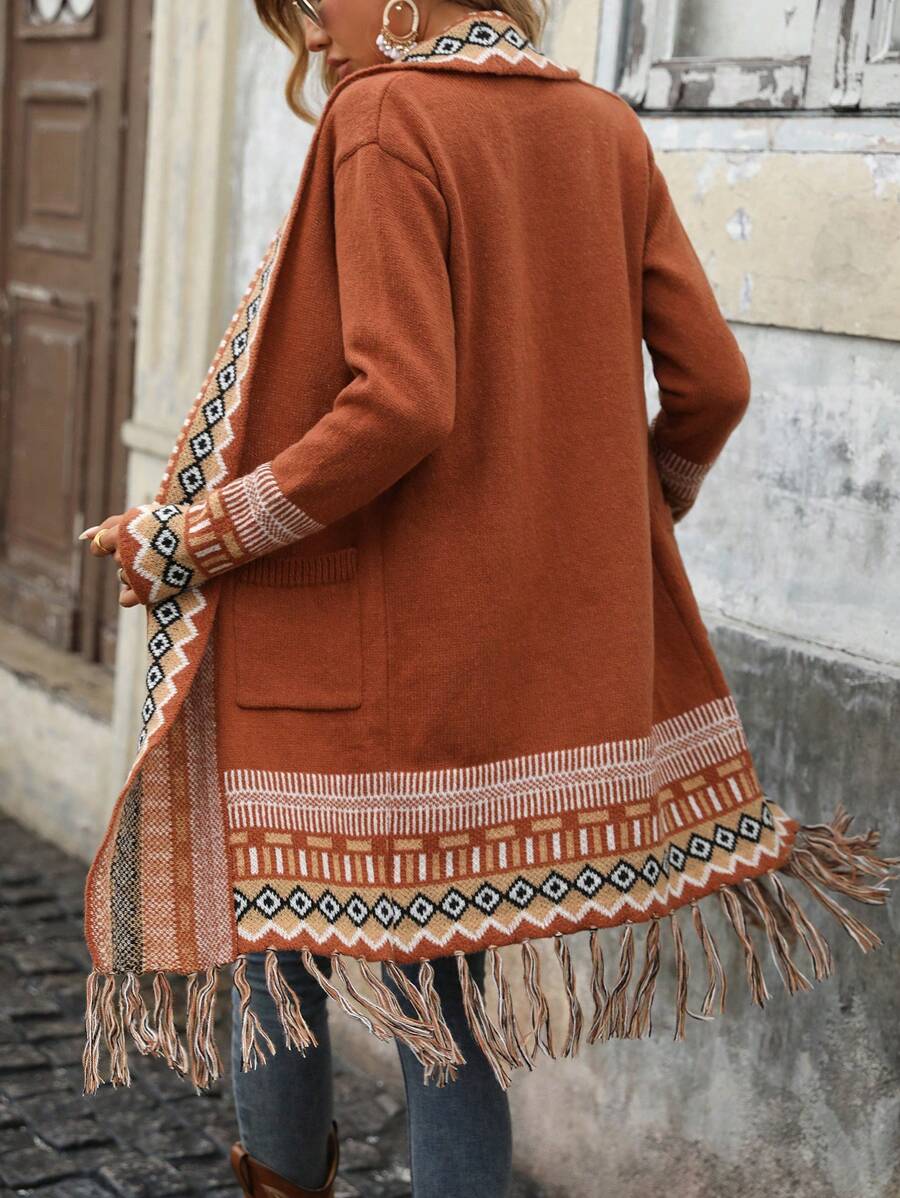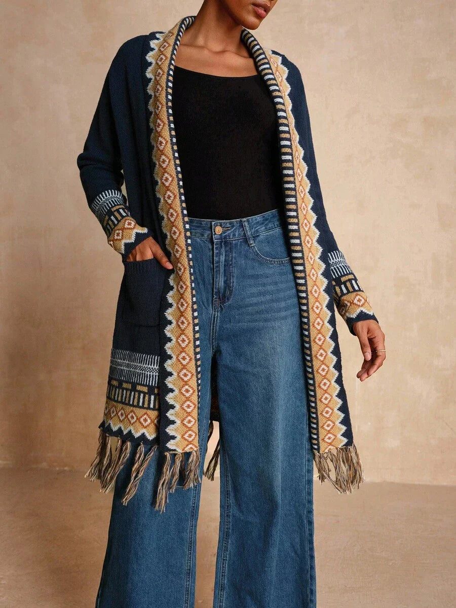 Cardigan lungo a maniche aperte con stampa geometrica da donna, stile casual