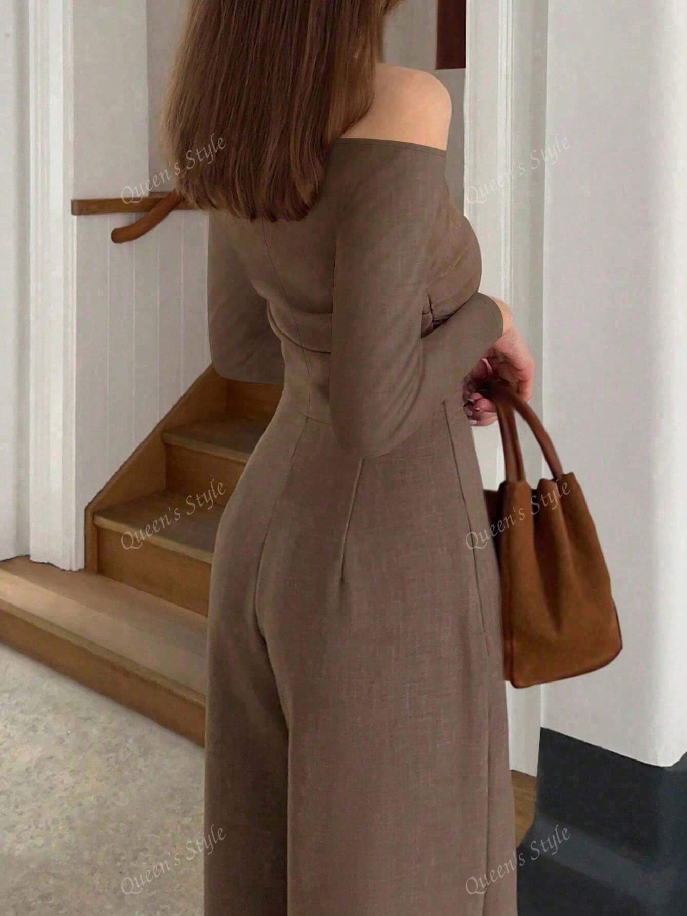 Elegante tuta da donna con design arricciato sulla spalla obliqua