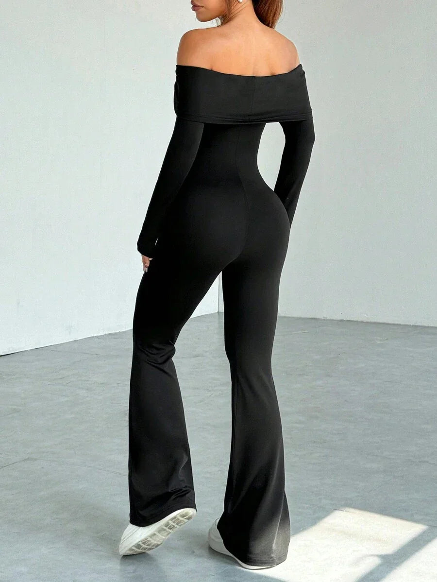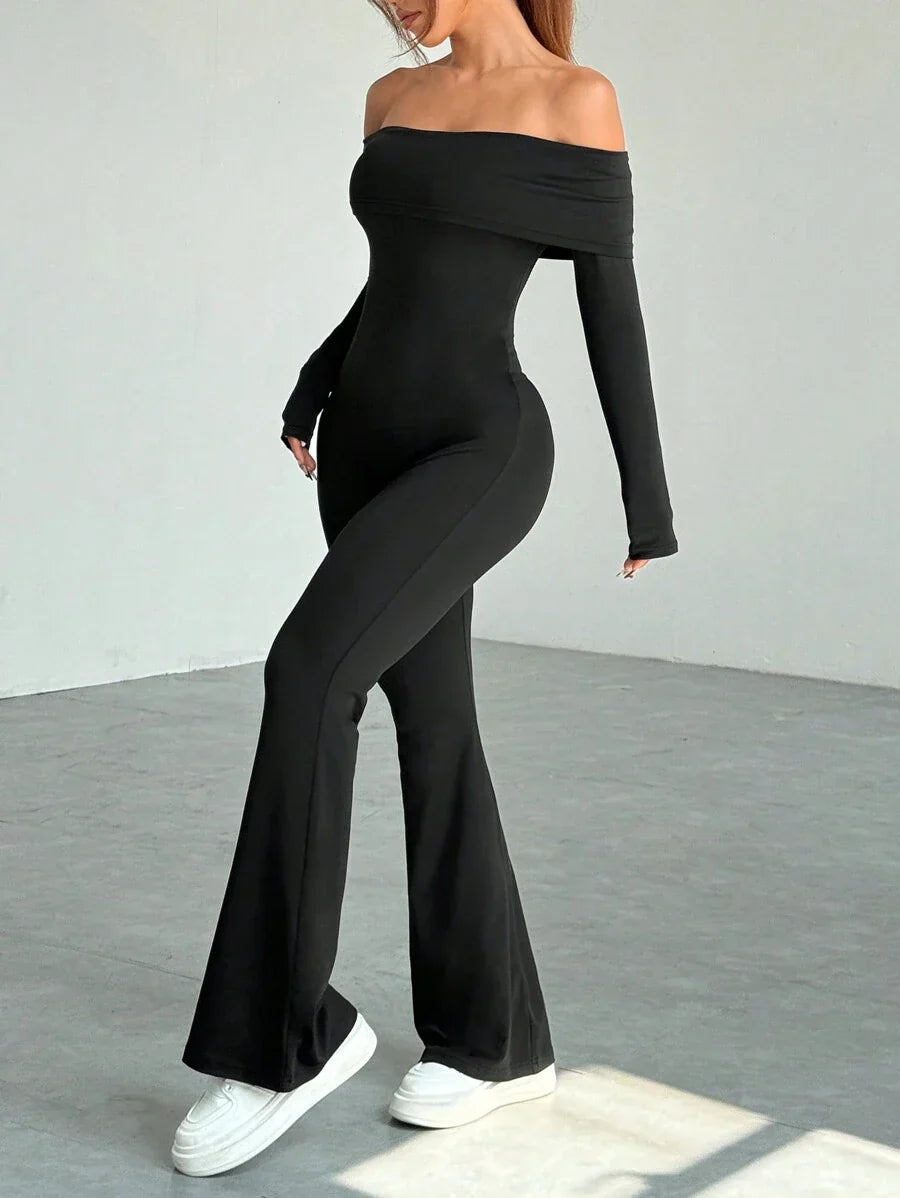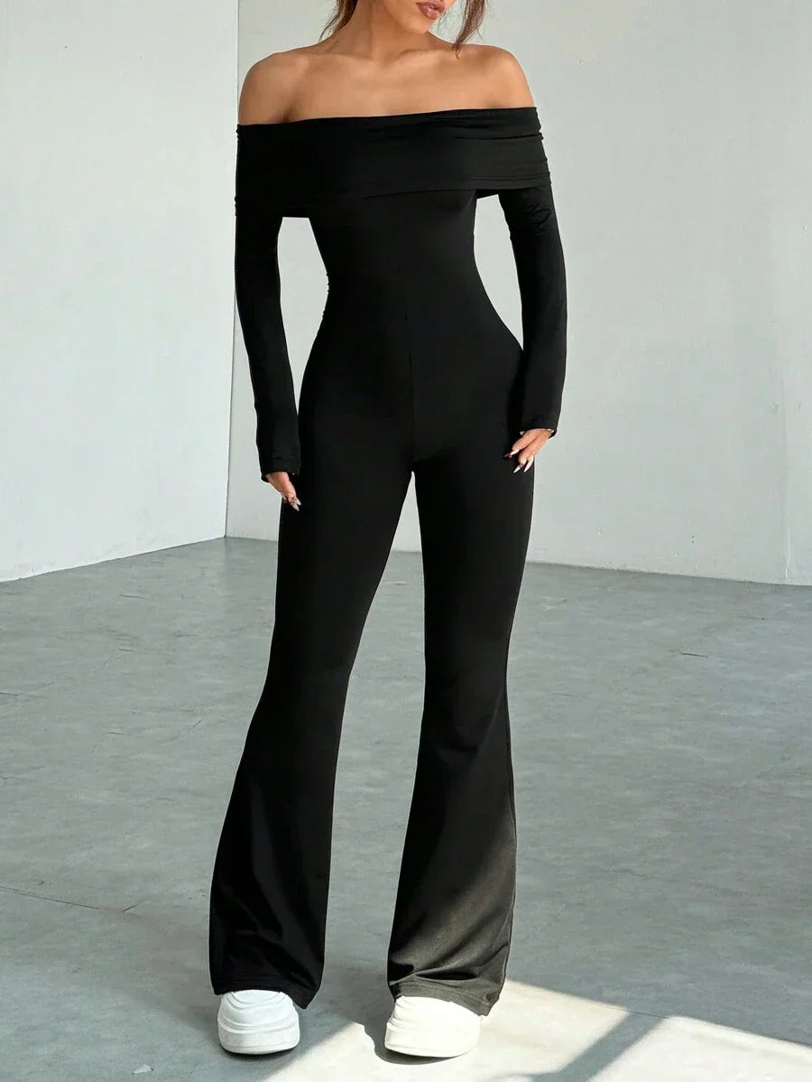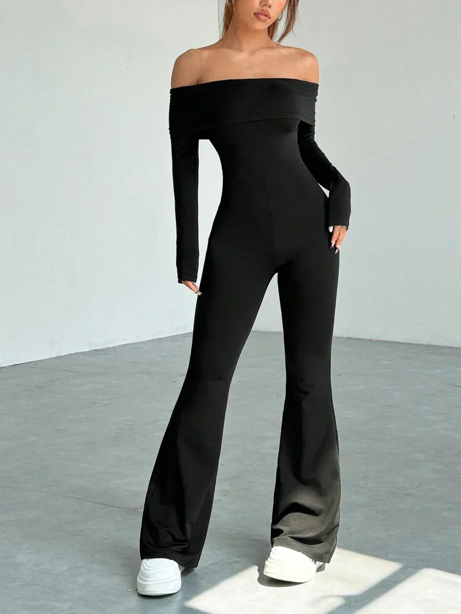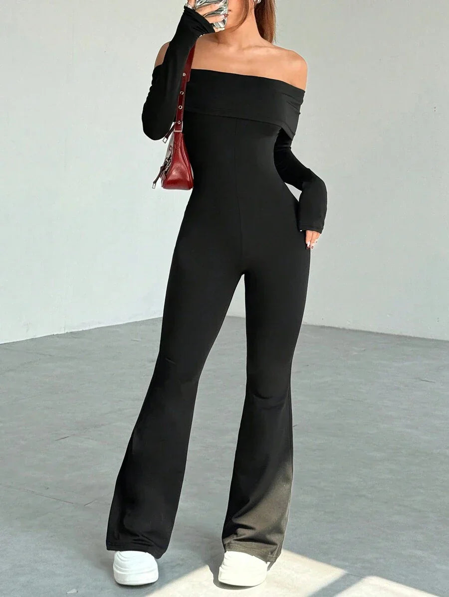Tuta casuale con spalle scoperte e gamba ampia, di colore unito semplice