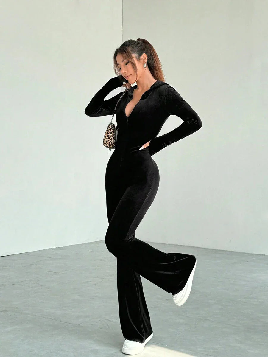 Tuta da donna slim fit in velluto monocromatico casual minimalista