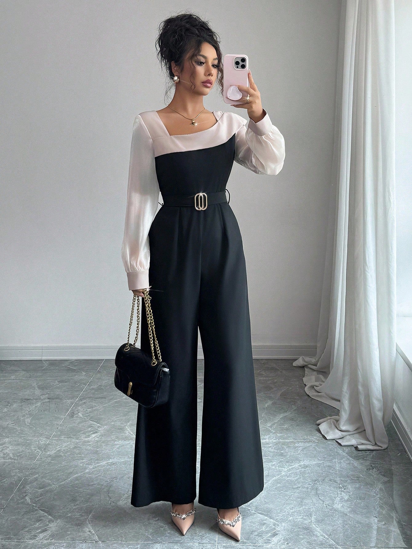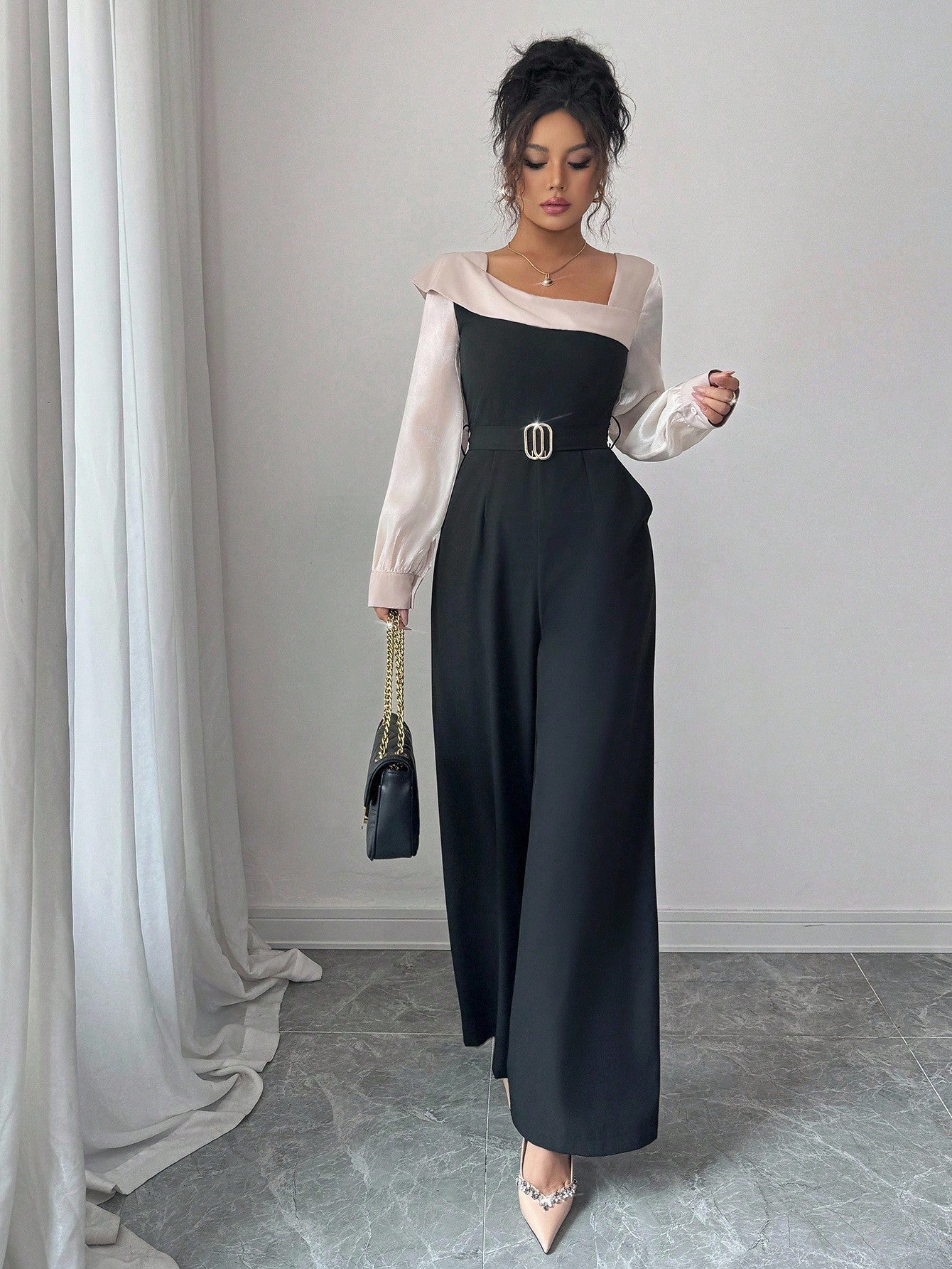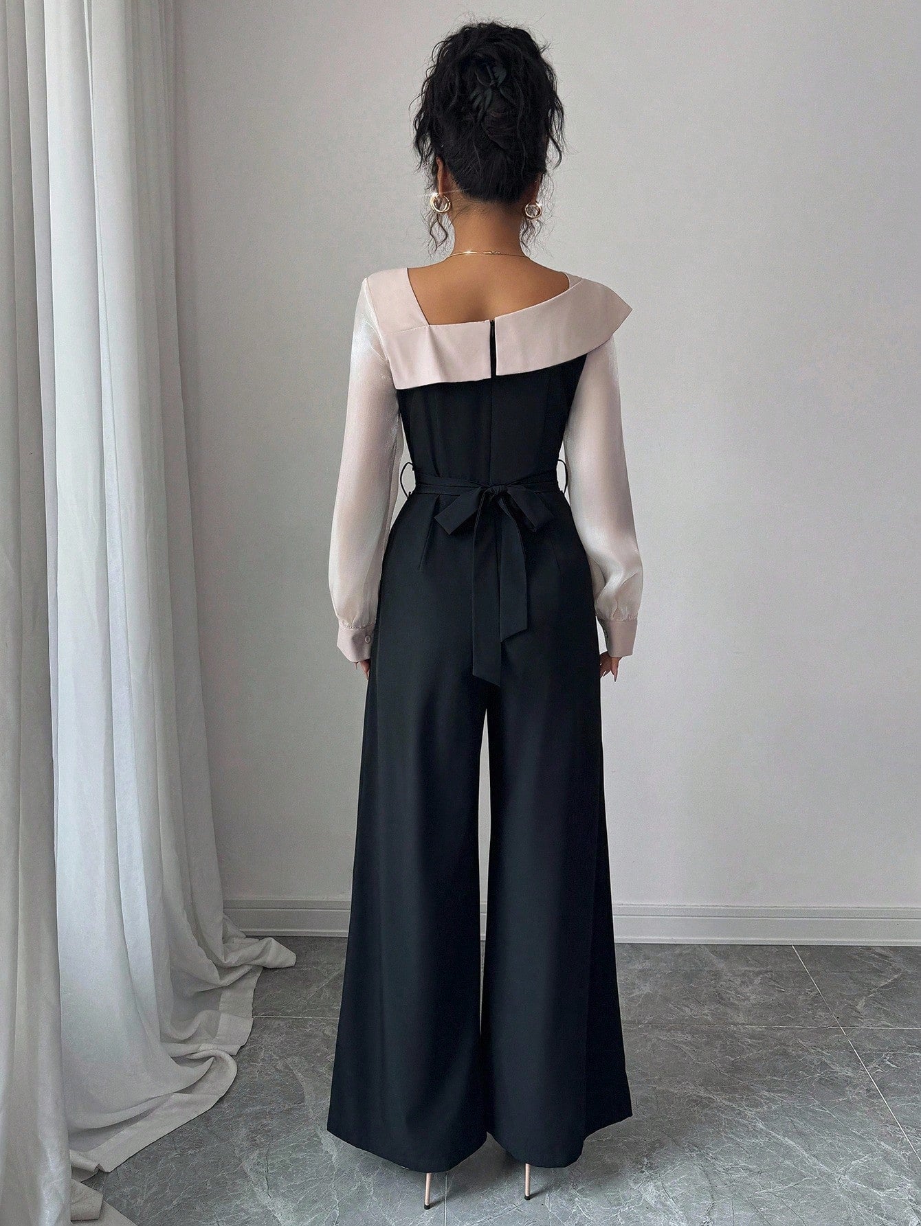 Tuta elegante asimmetrica da pendolare con colori a contrasto