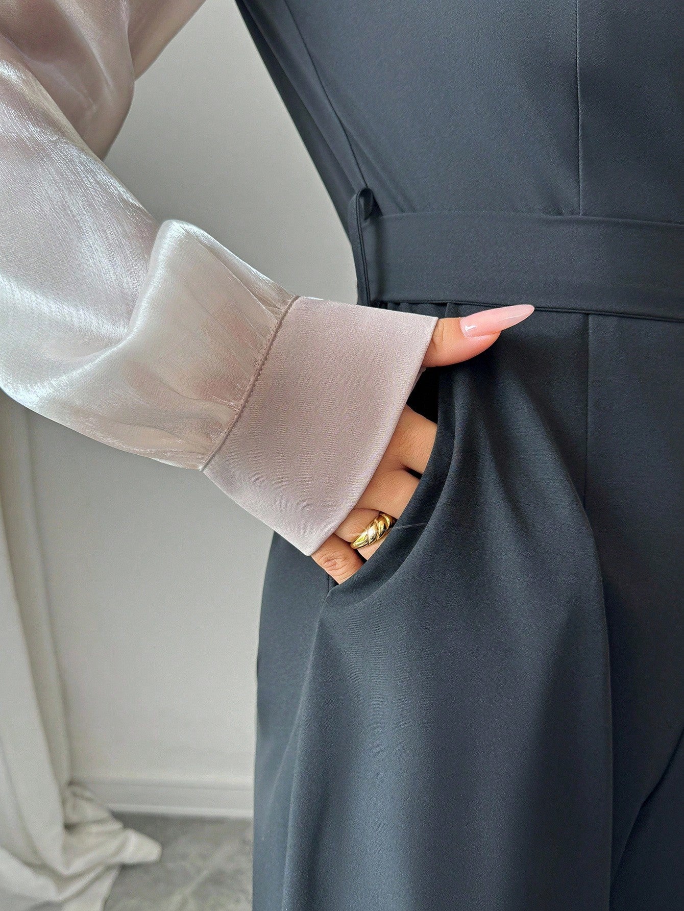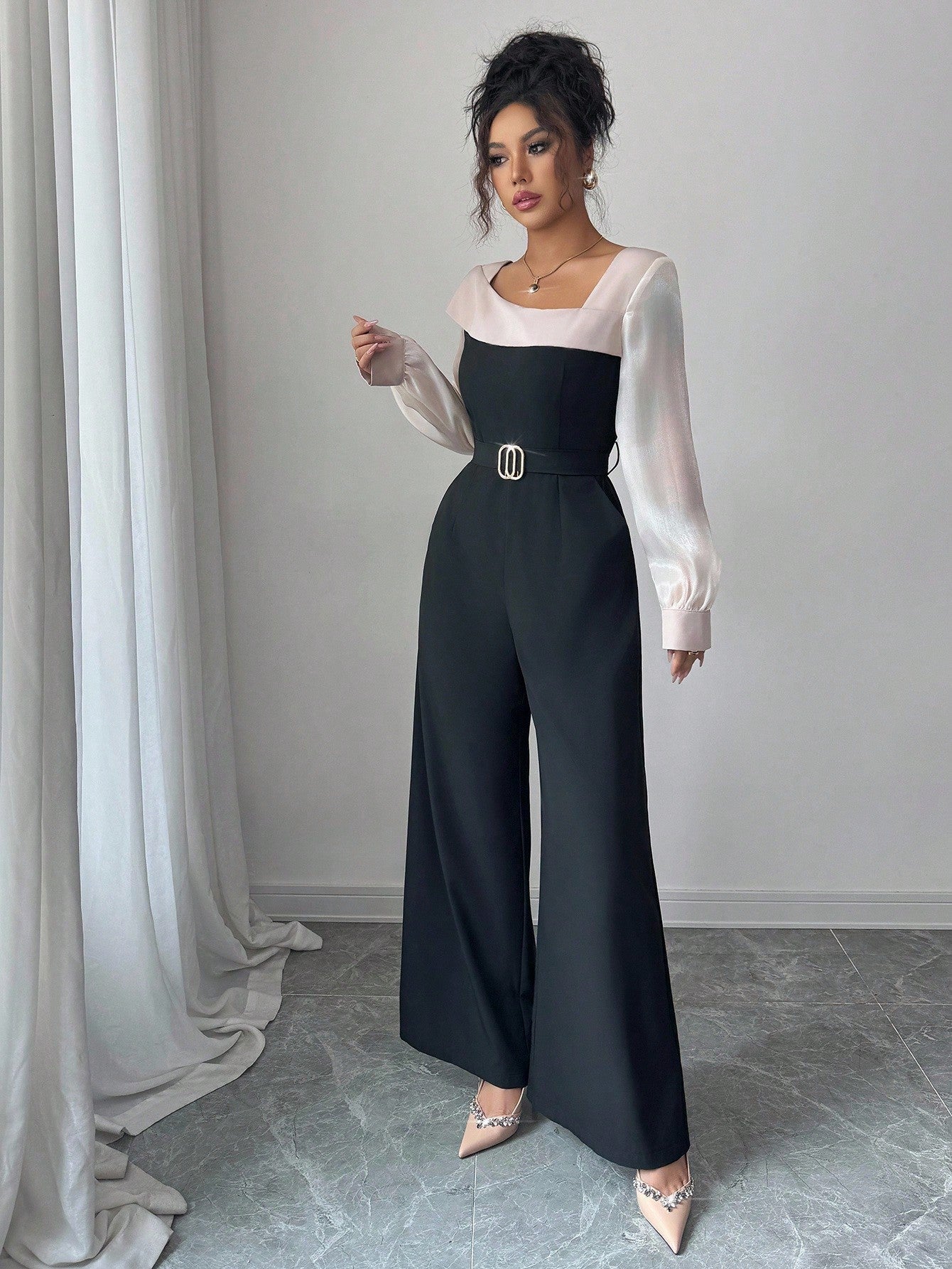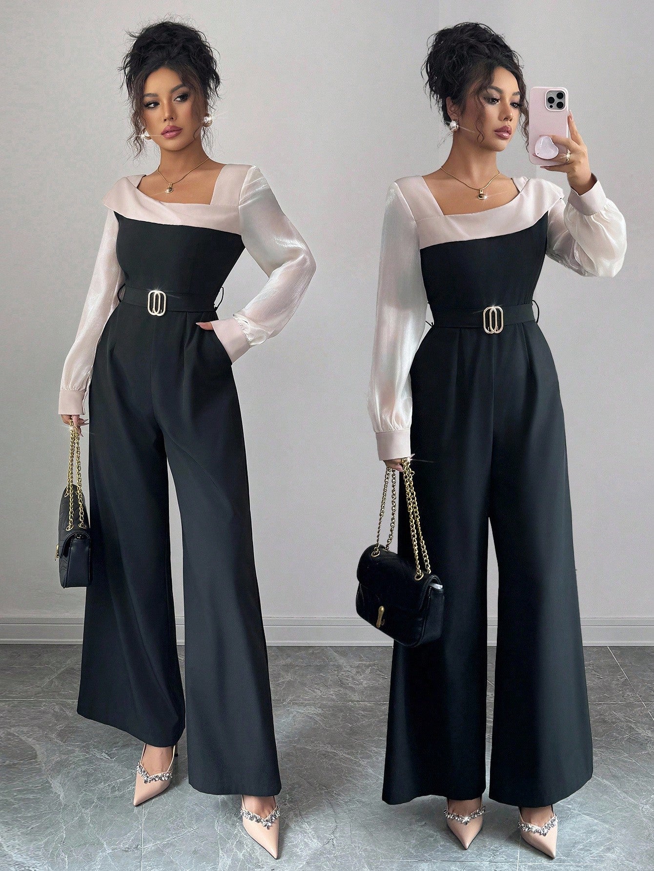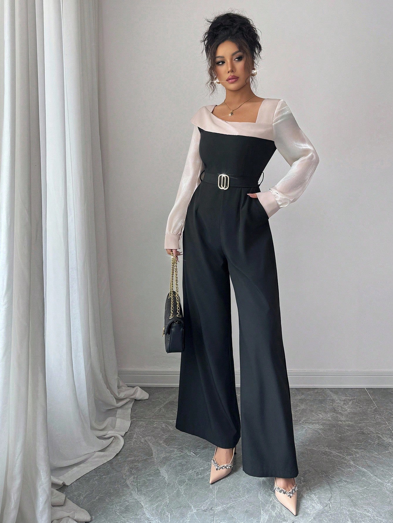 Tuta elegante asimmetrica da pendolare con colori a contrasto