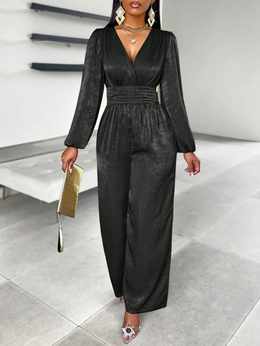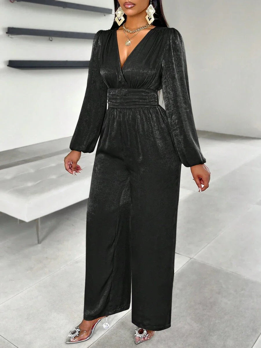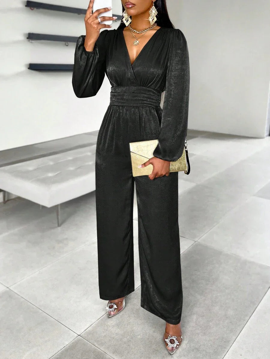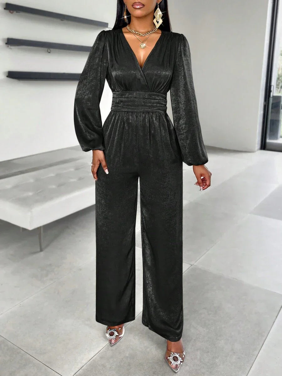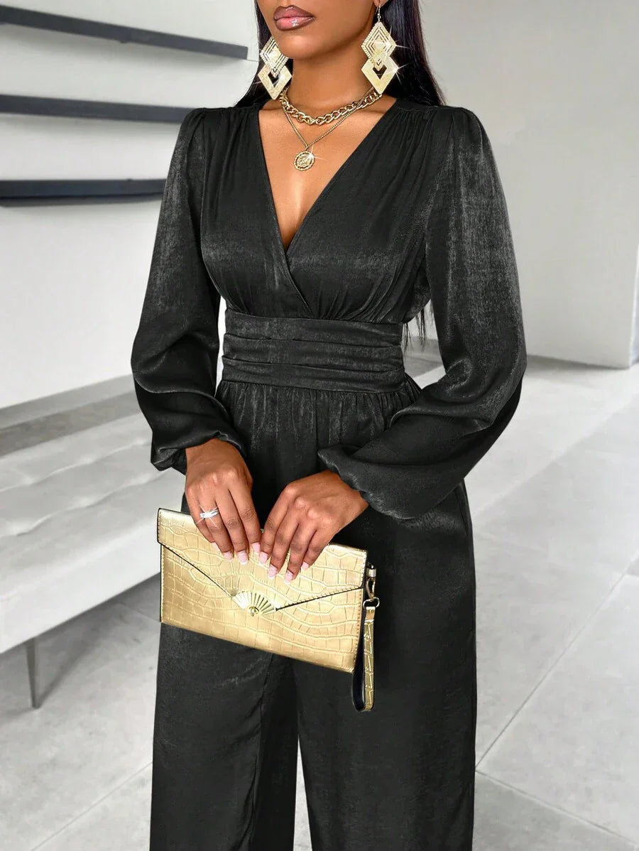 Tuta elegante da donna con maniche a lanterna, vita arricciata