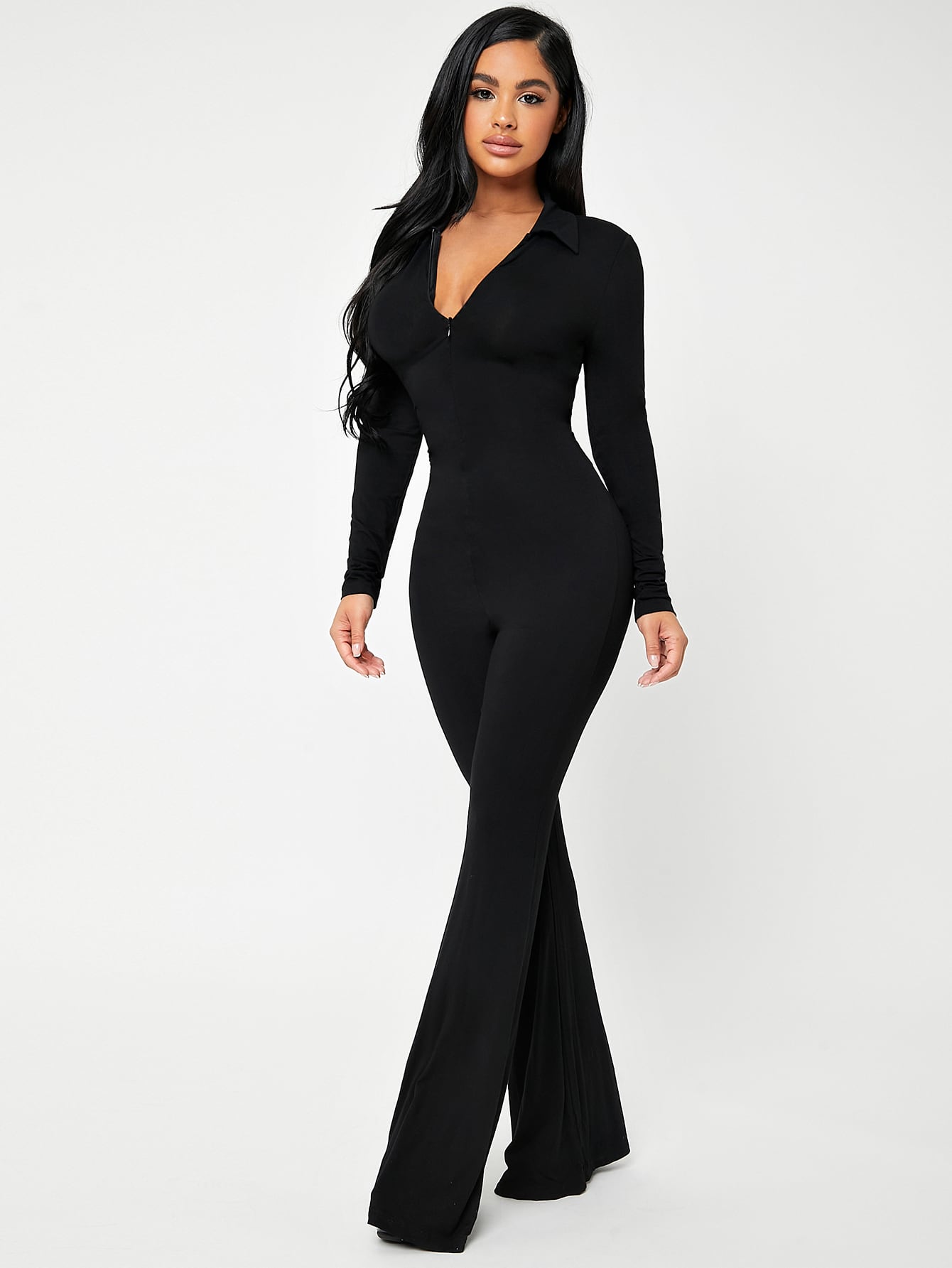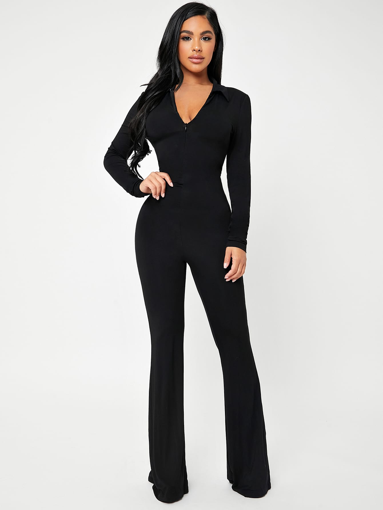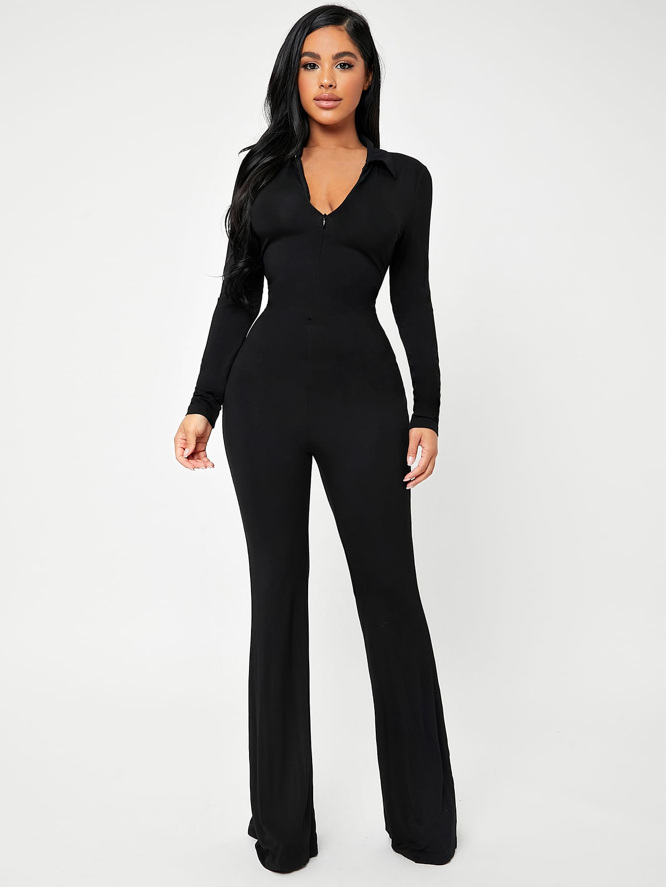 Tuta intera donna con cerniera e scollo a V