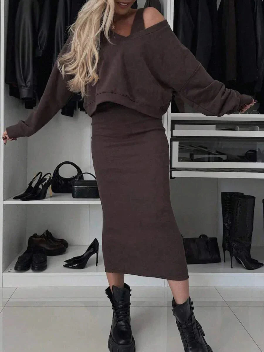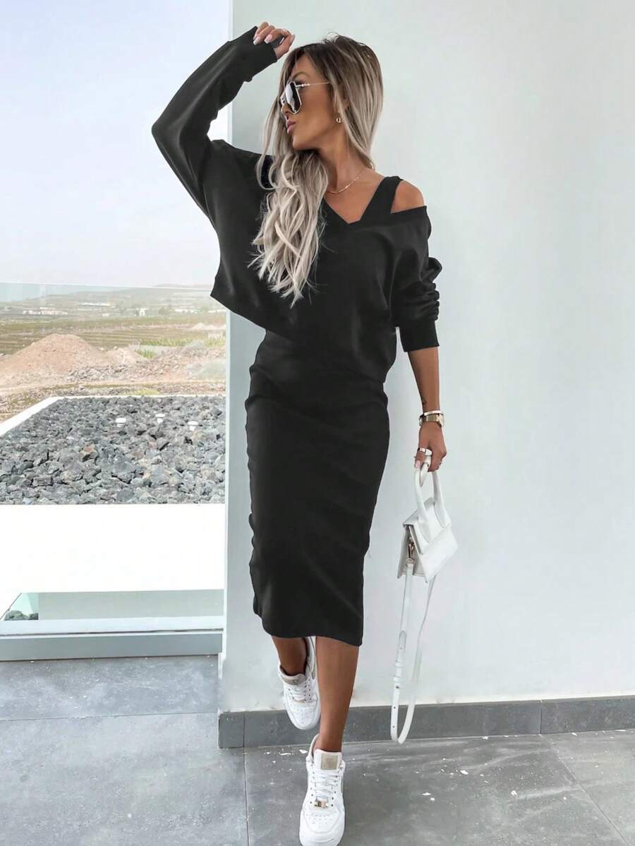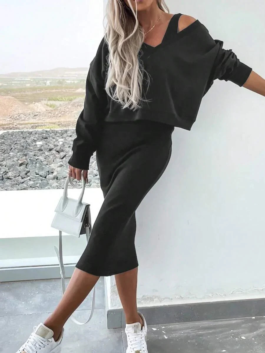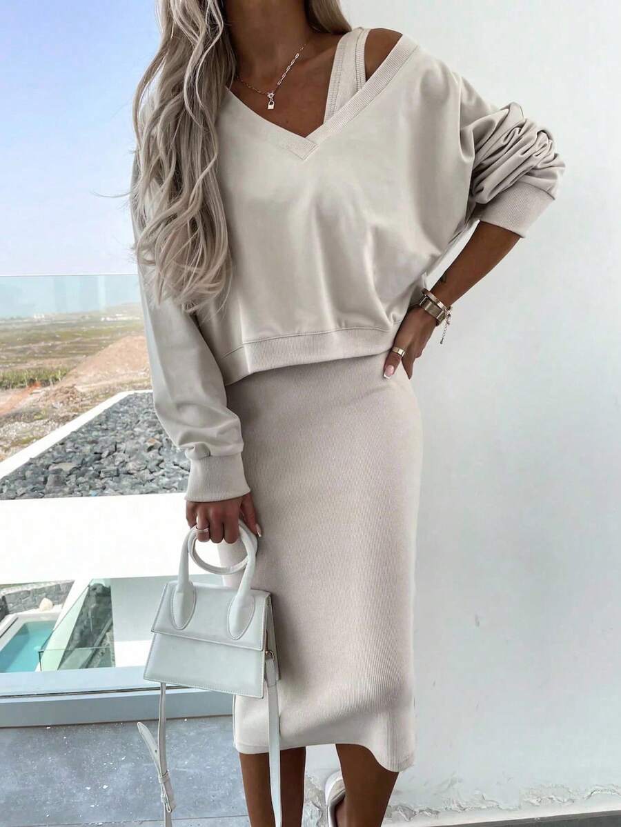 2 pezzi set casual composto da felpa tinta unita e vestito
