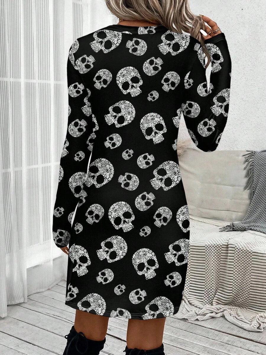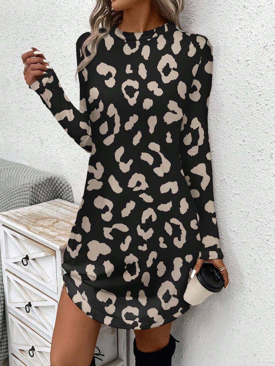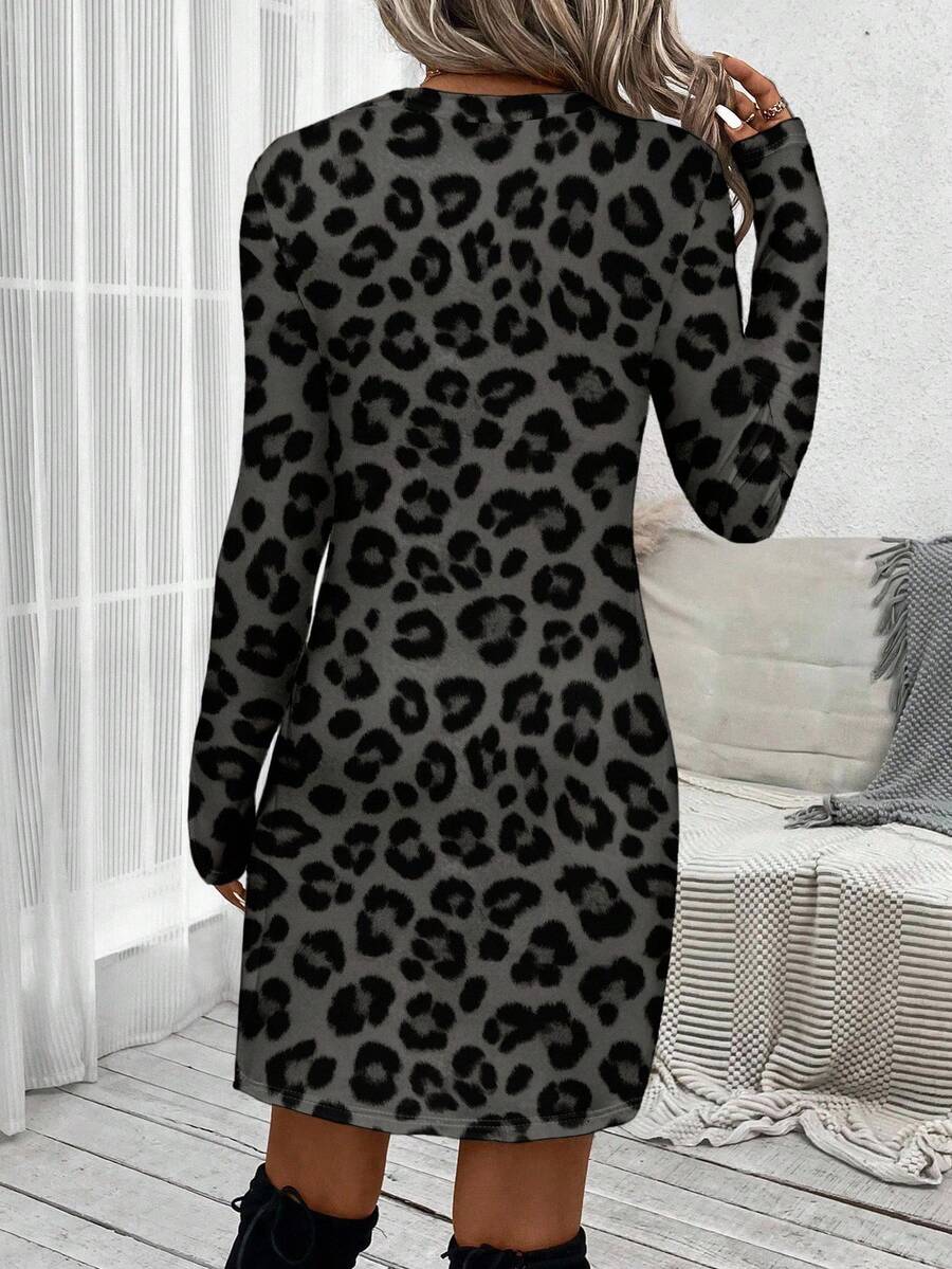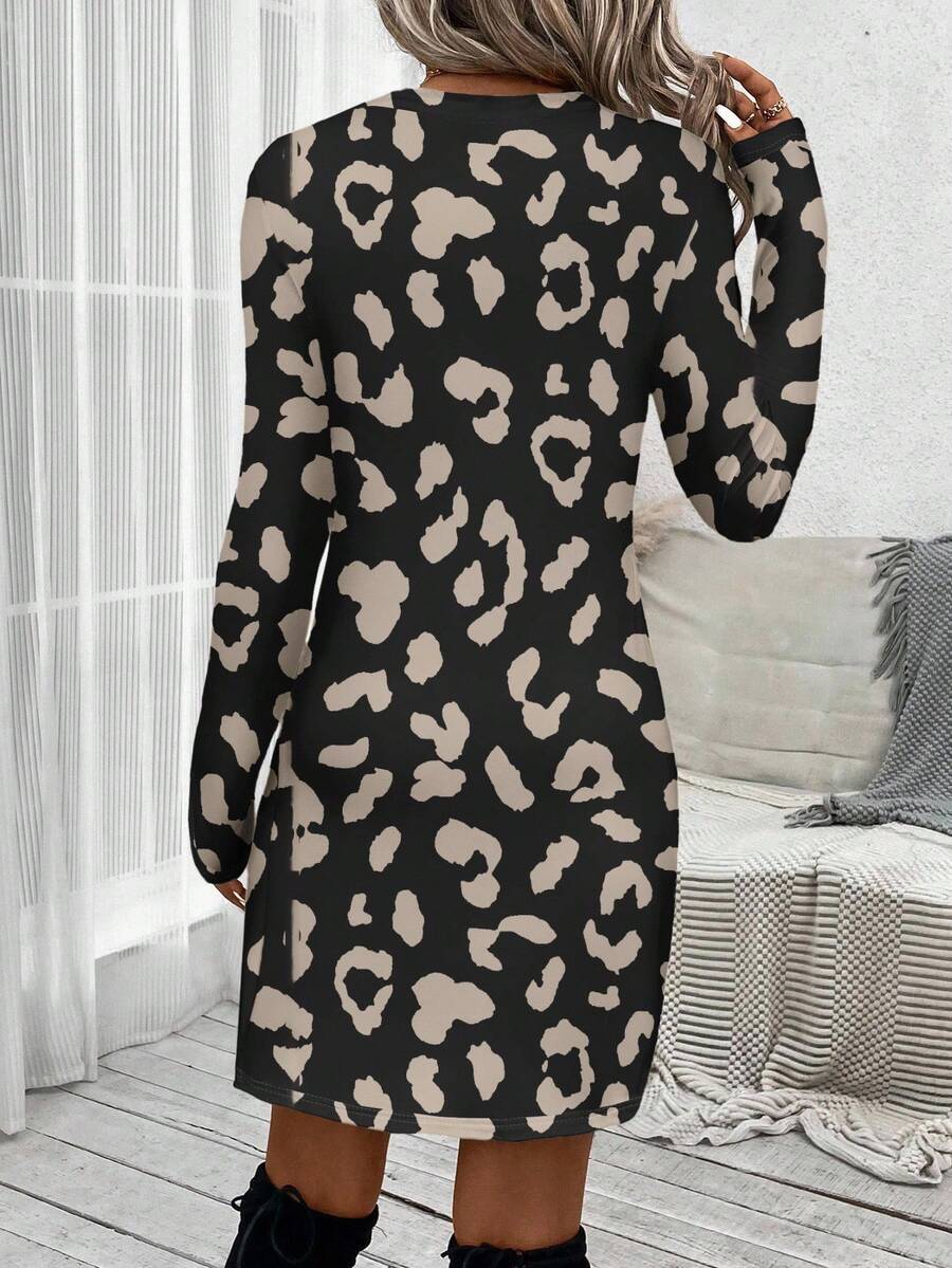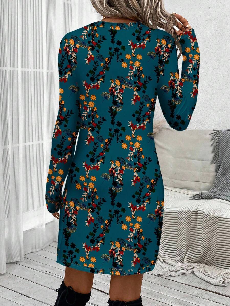Abito a maniche lunghe con collo a ciambella, in stile casual, con torsione frontale, lunghezza midi, adatto per primavera/autunno