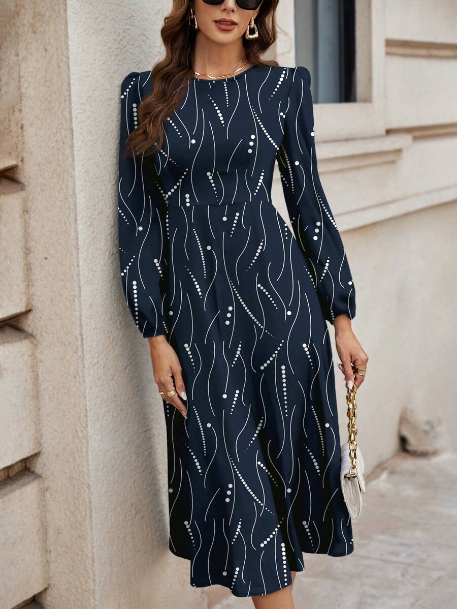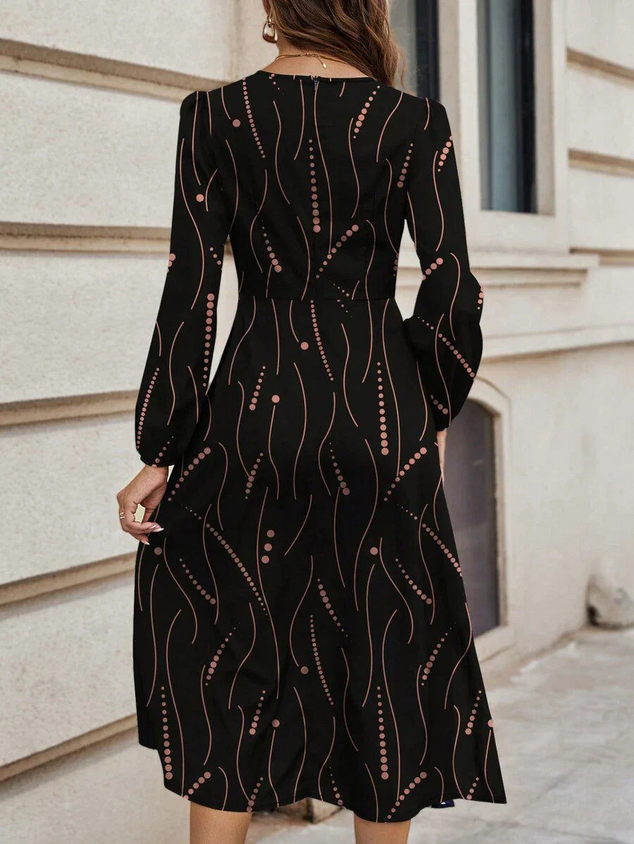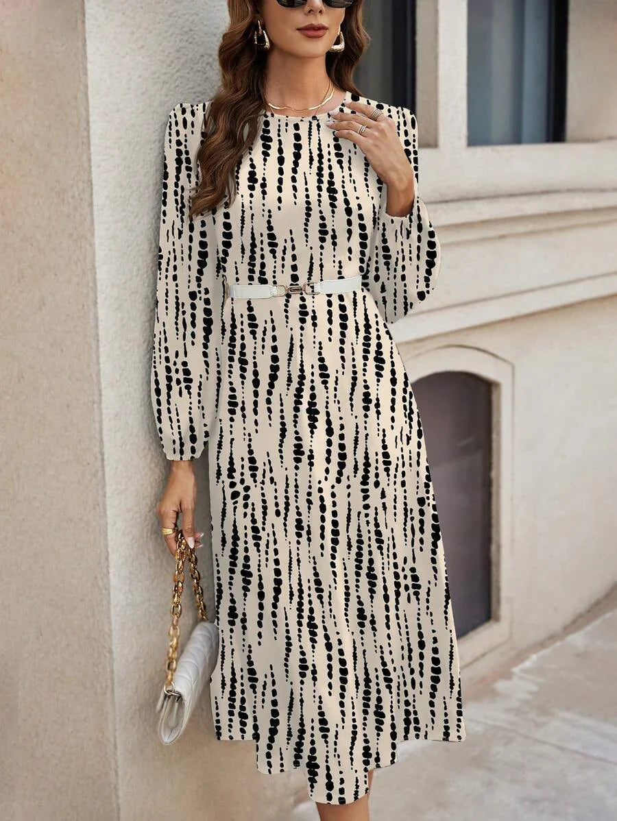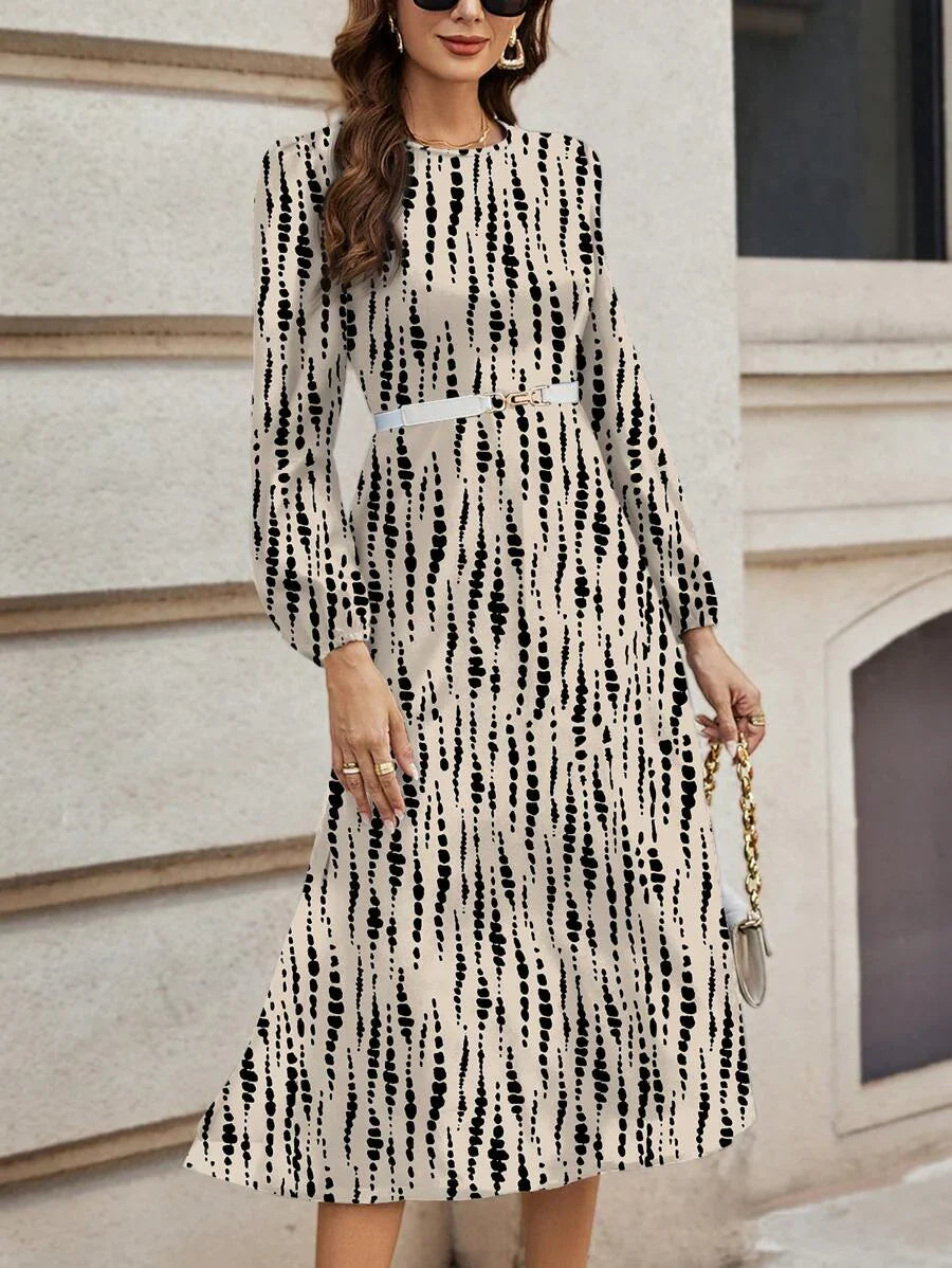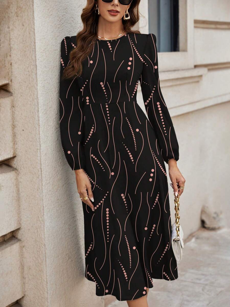 Abito aderente a maniche lunghe con collo tondo, motivo casual