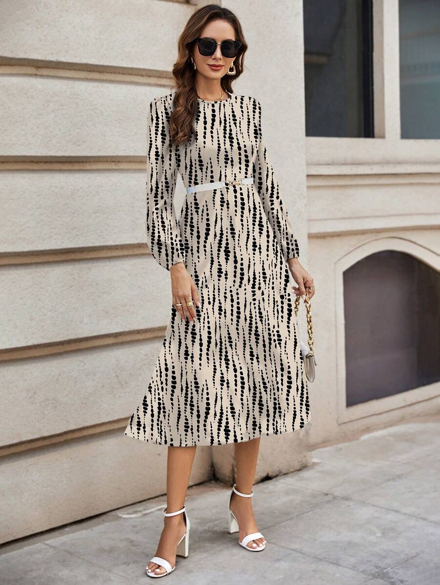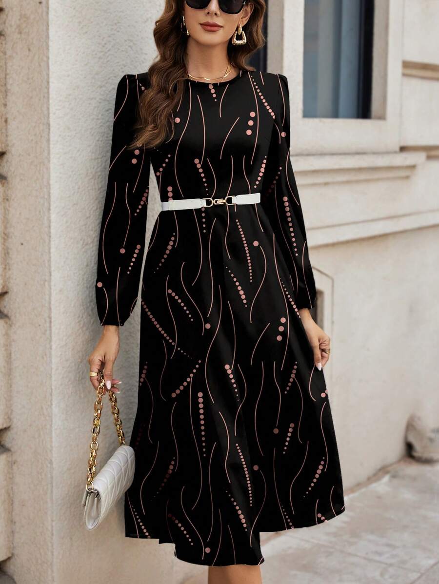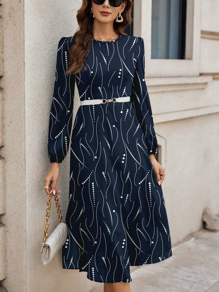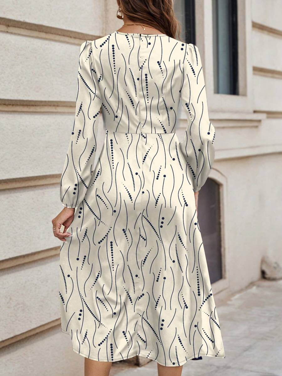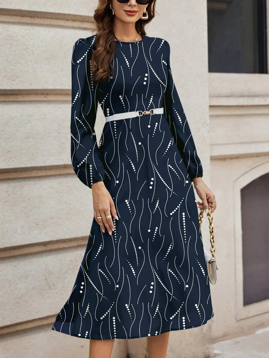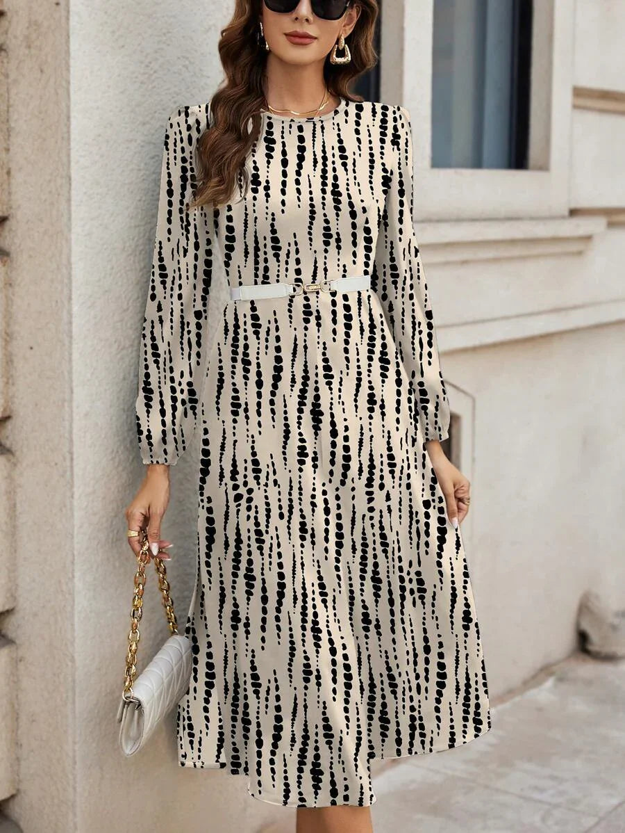 Abito aderente a maniche lunghe con collo tondo, motivo casual