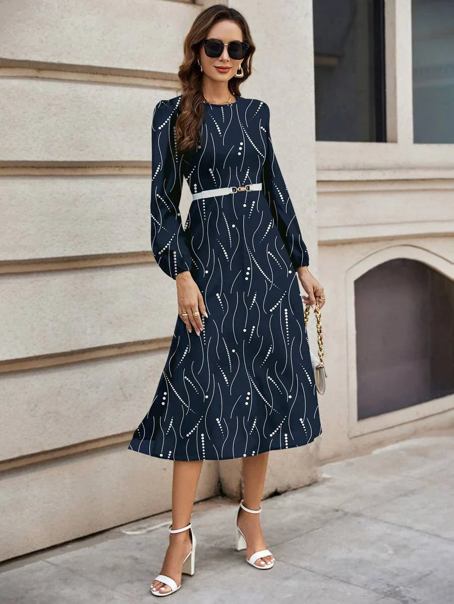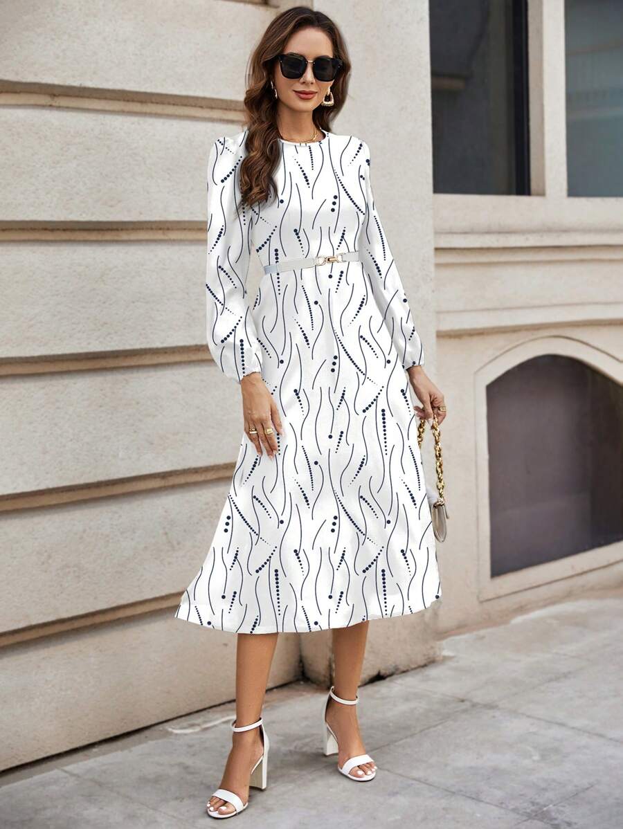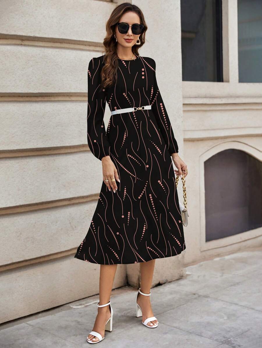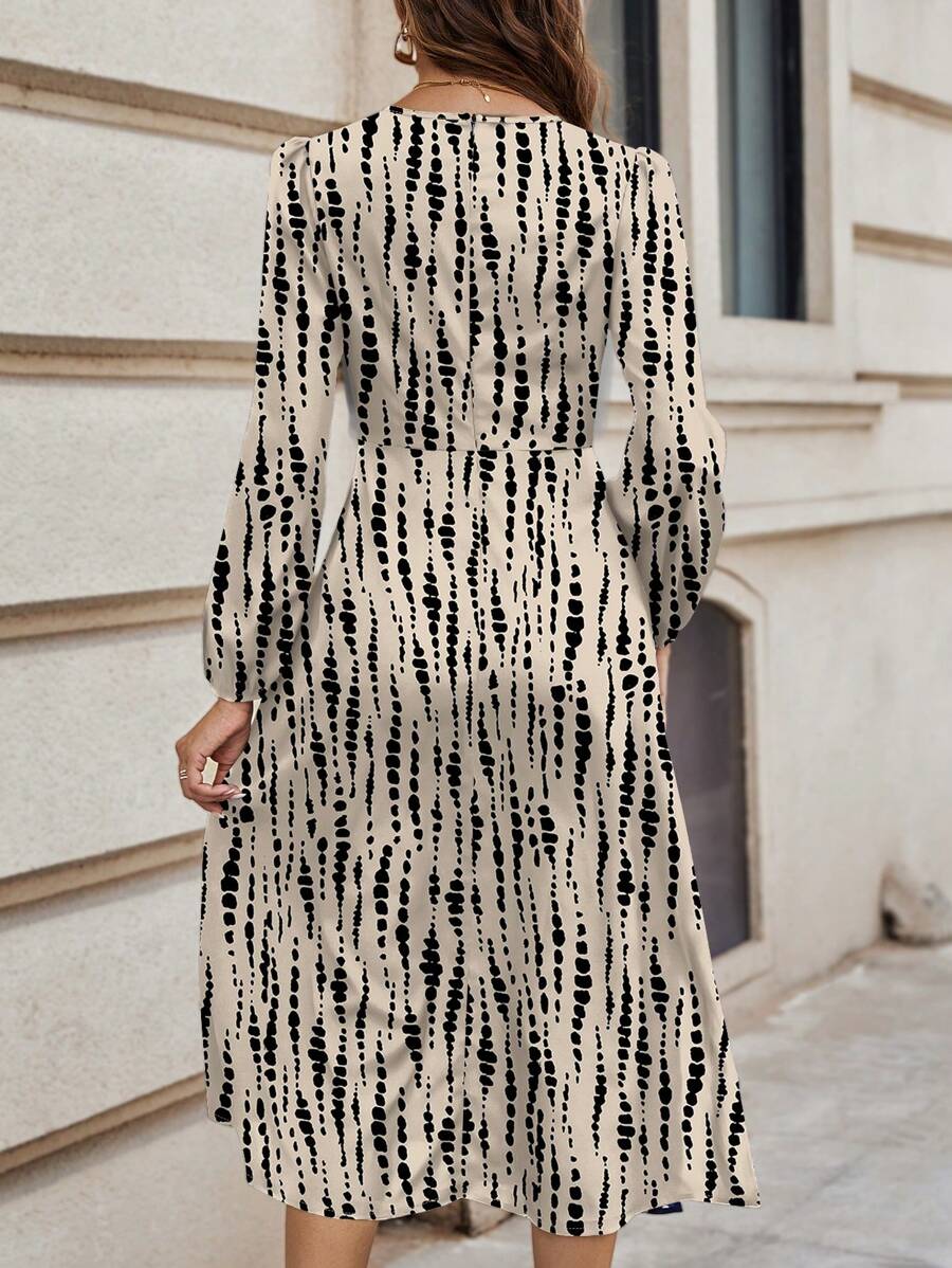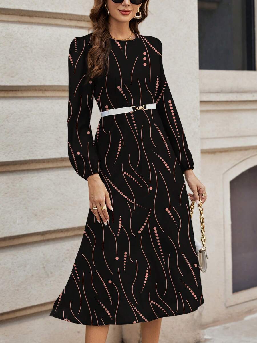 Abito aderente a maniche lunghe con collo tondo, motivo casual