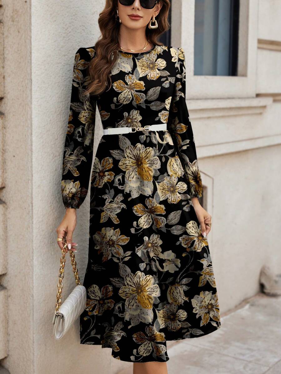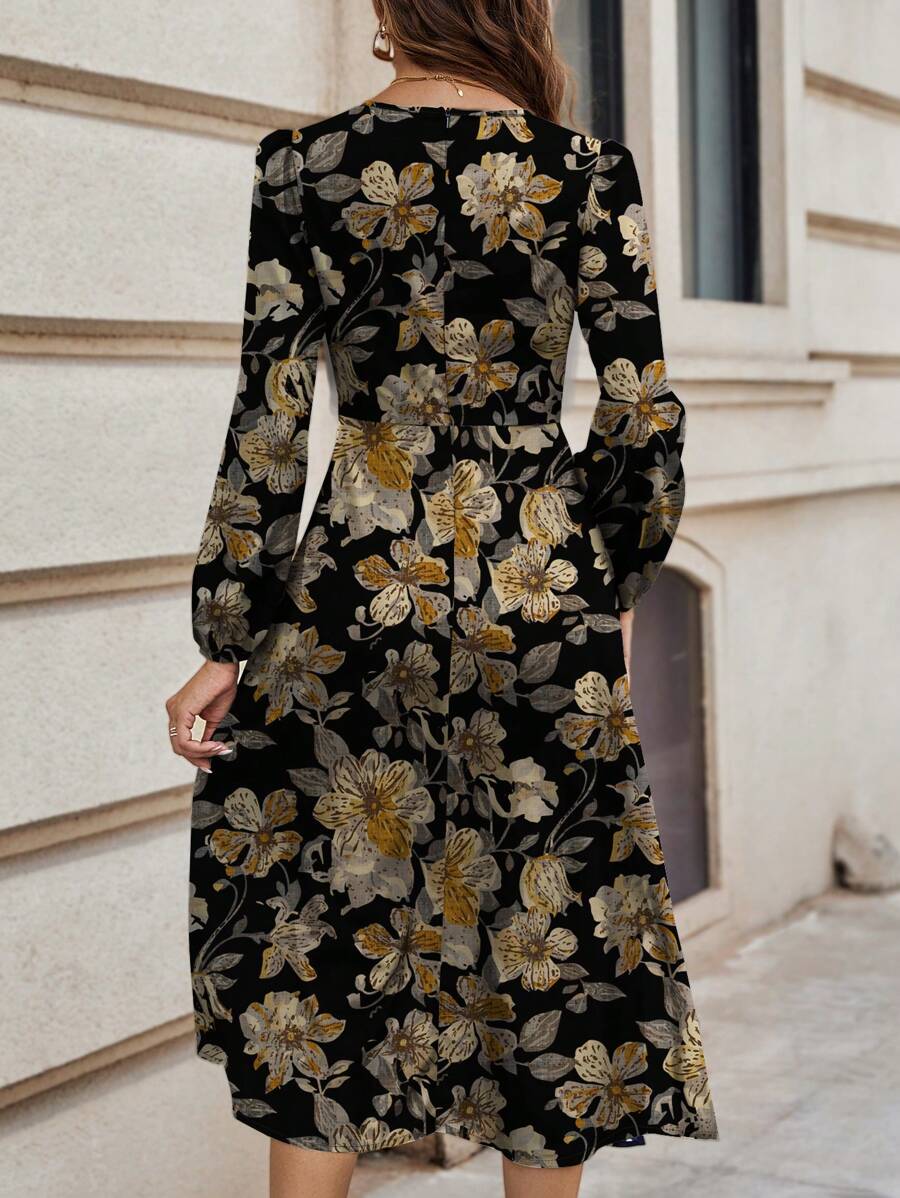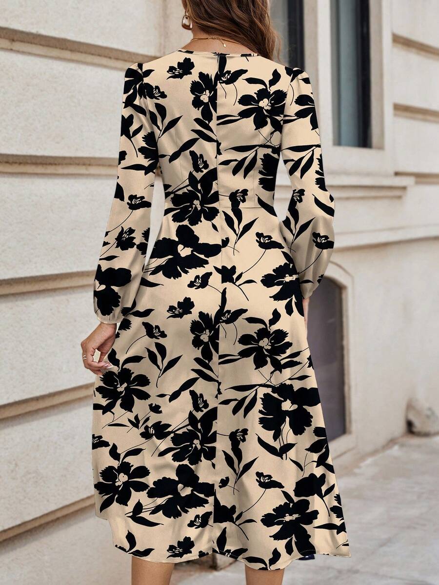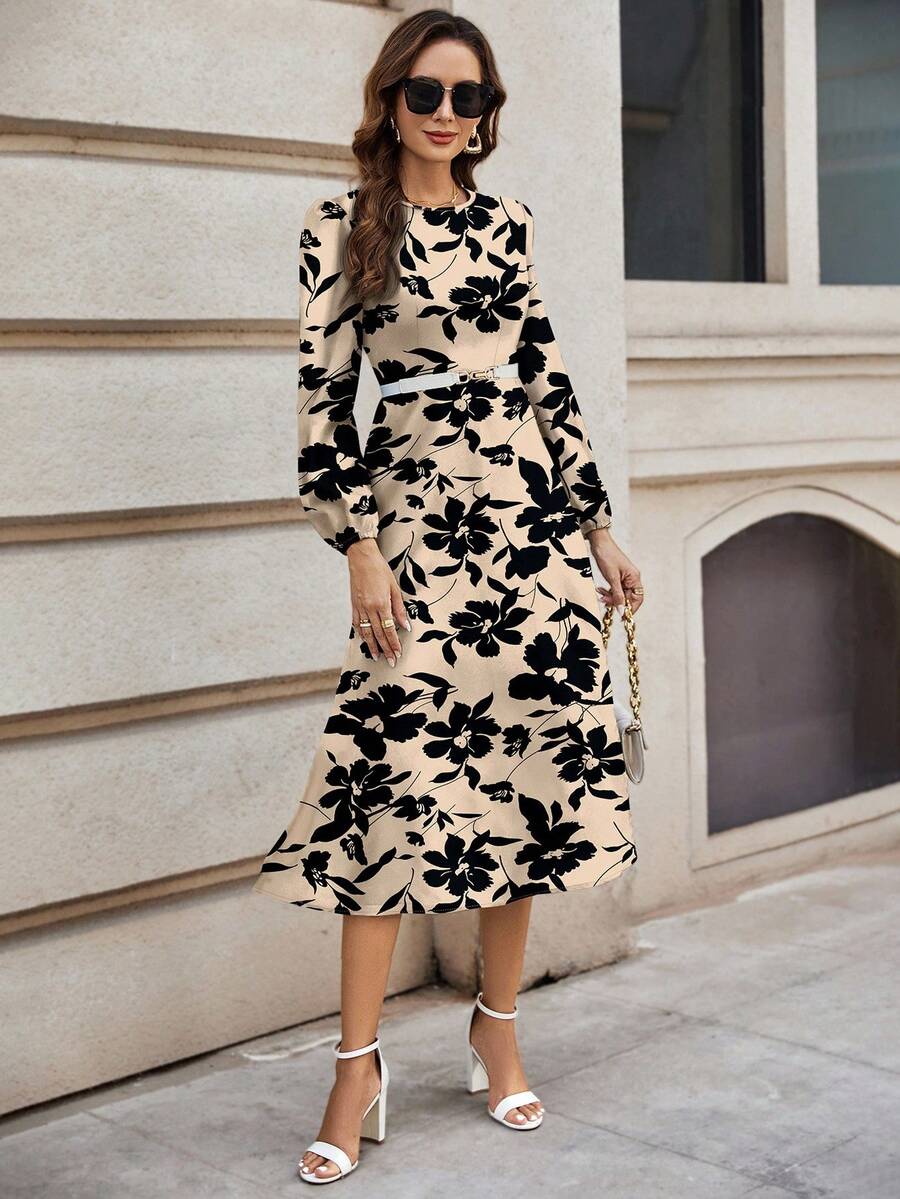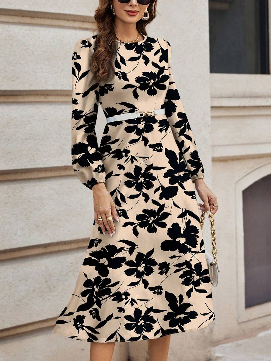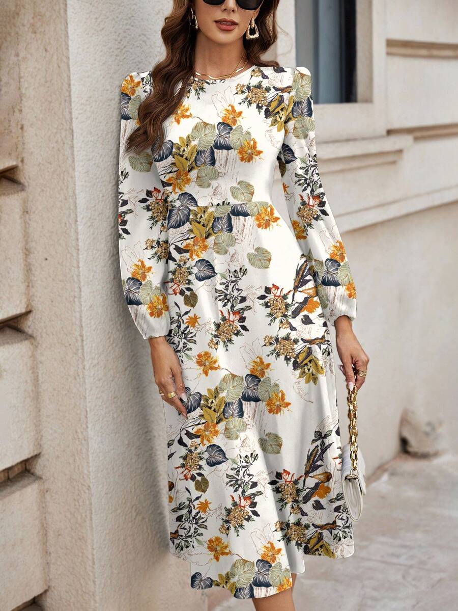 Abito aderente a maniche lunghe con collo tondo, motivo casual