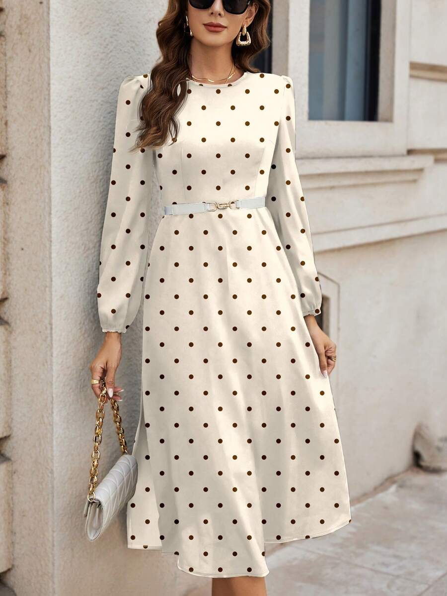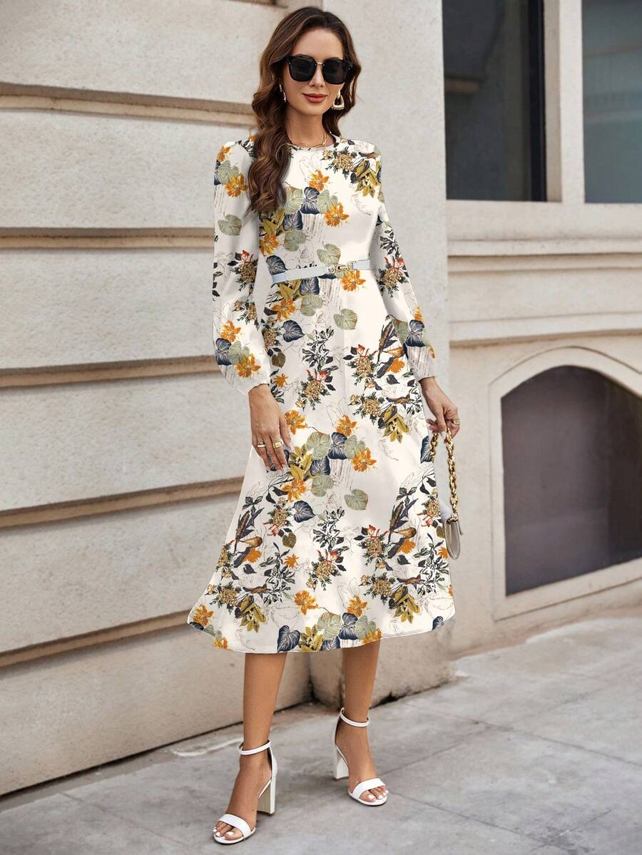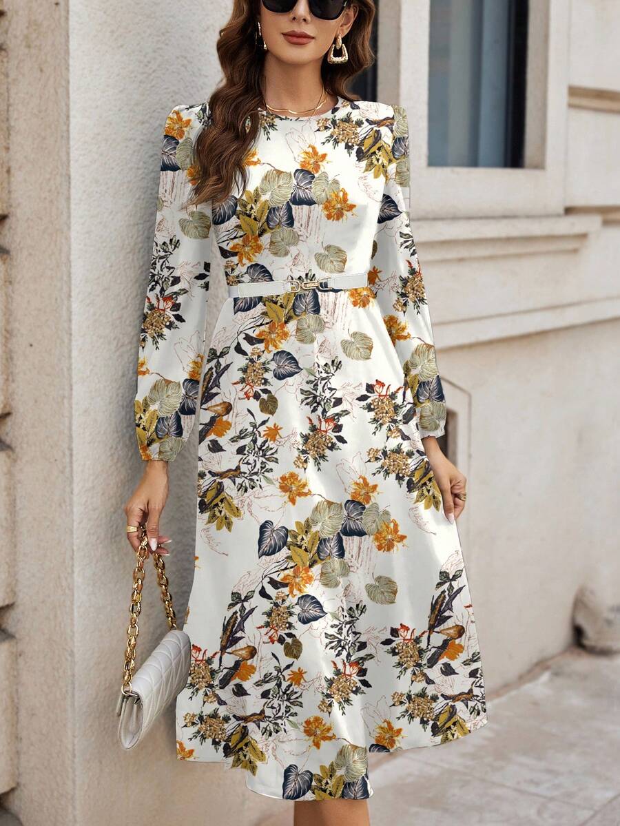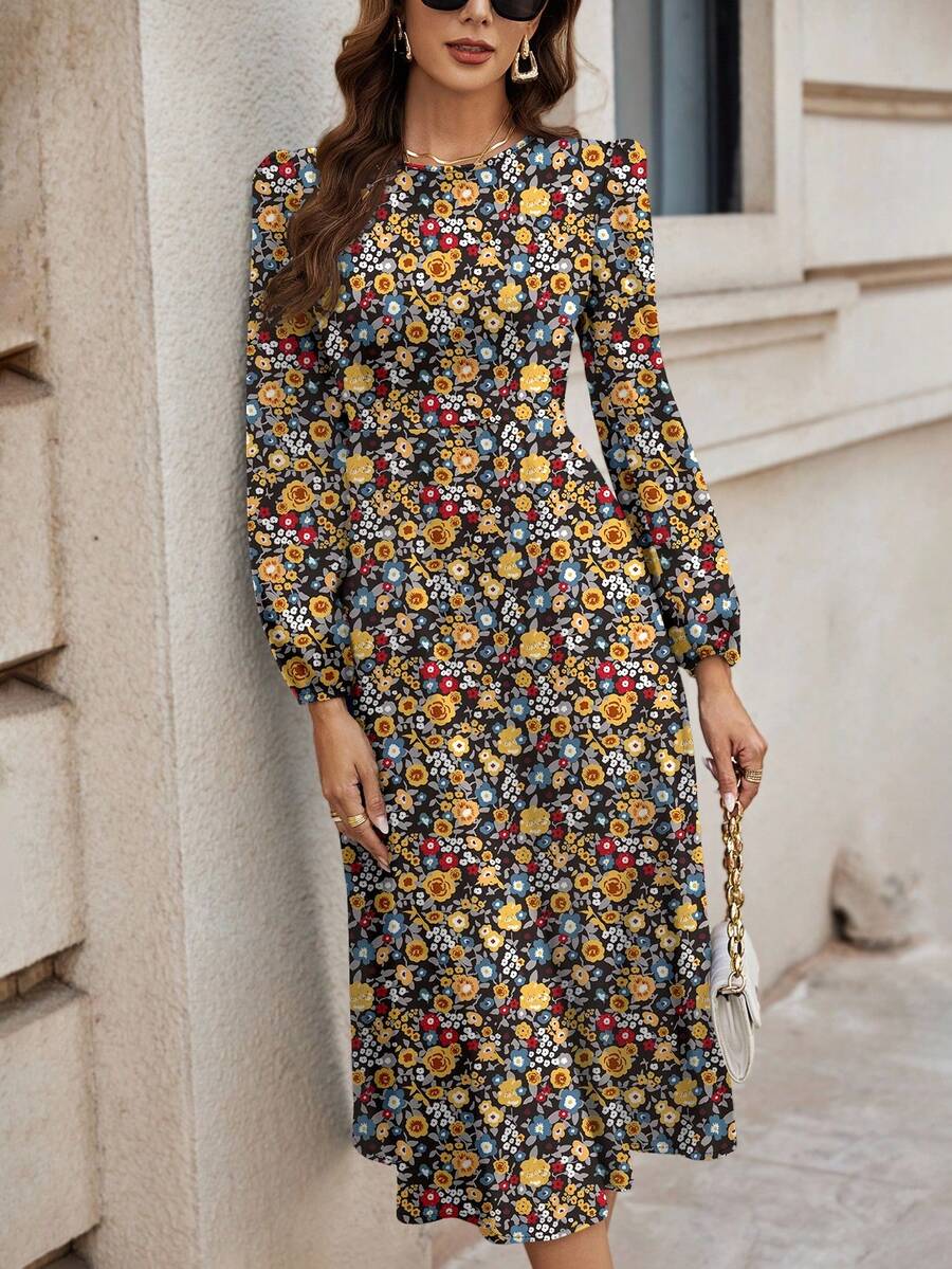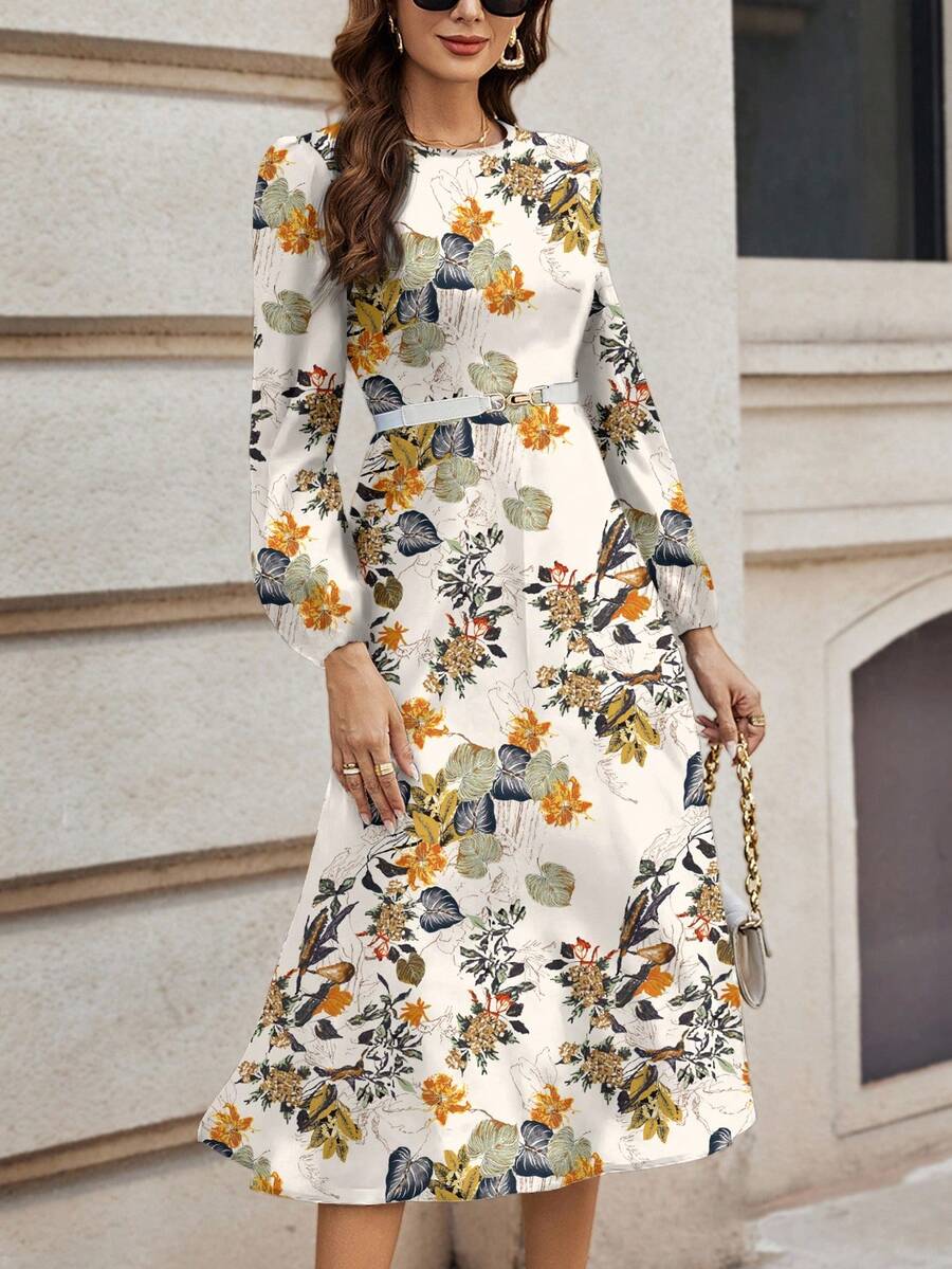 Abito aderente a maniche lunghe con collo tondo, motivo casual