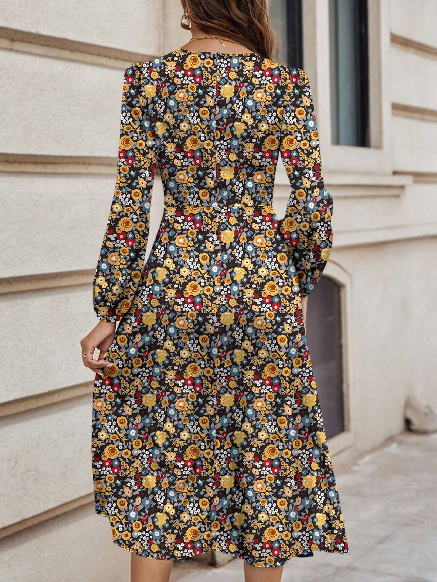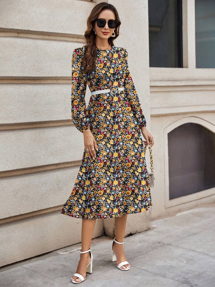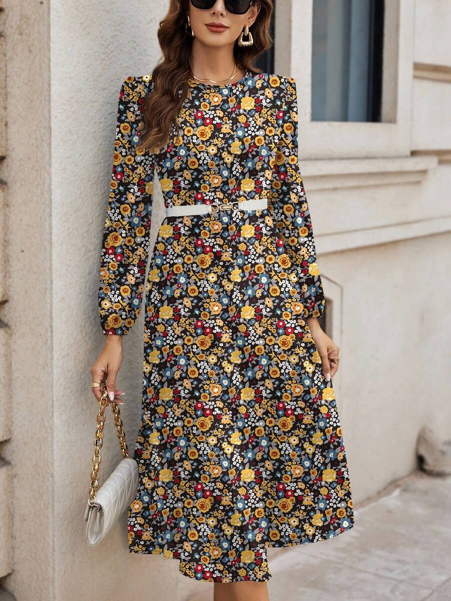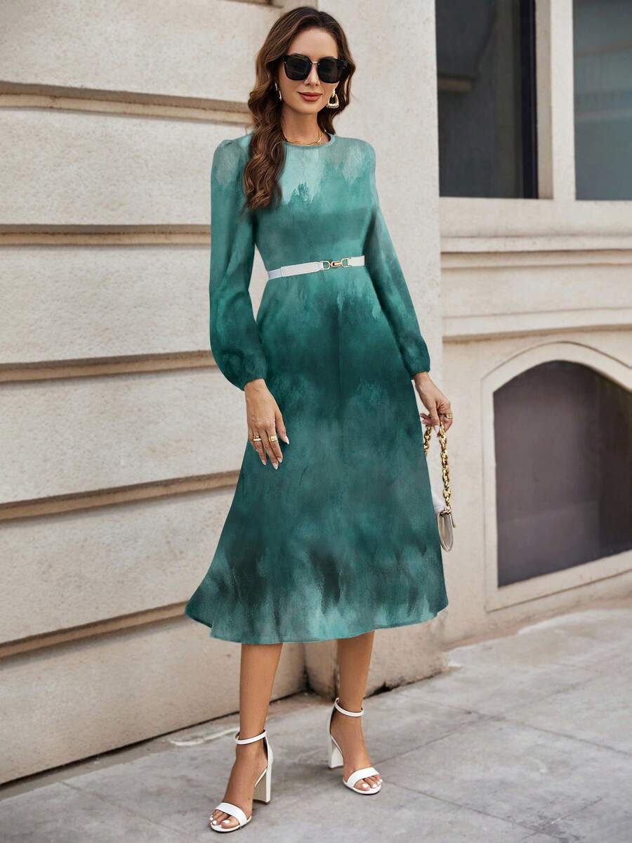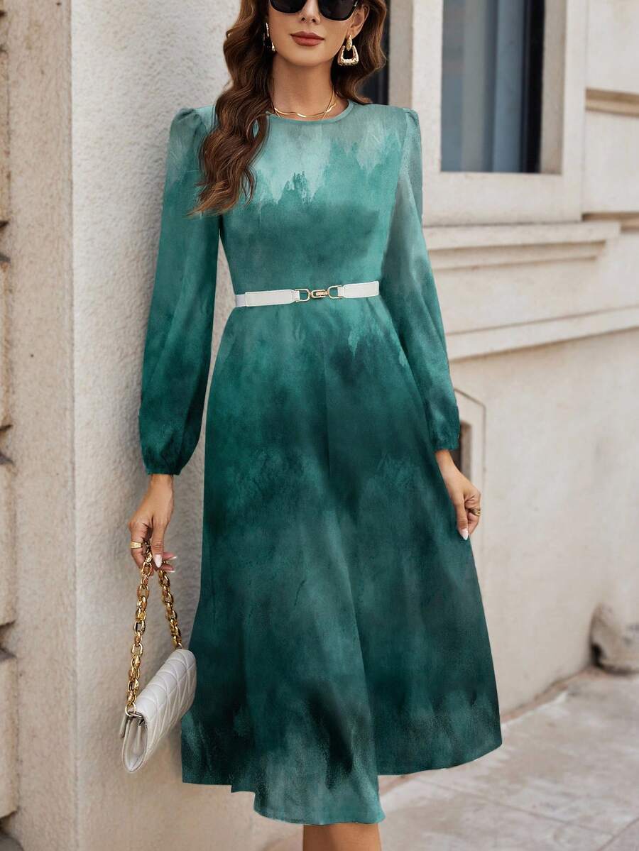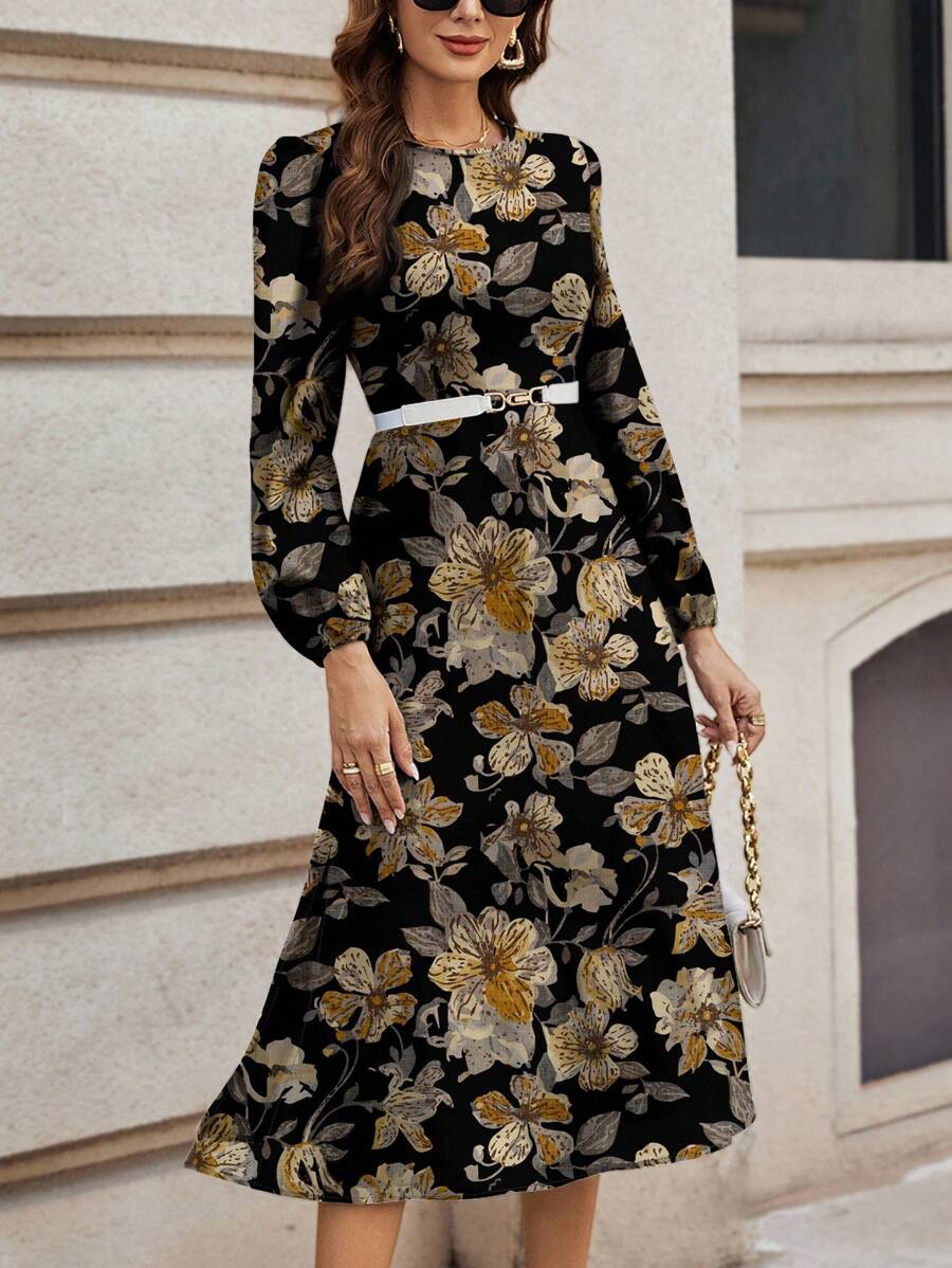 Abito aderente a maniche lunghe con collo tondo, motivo casual
