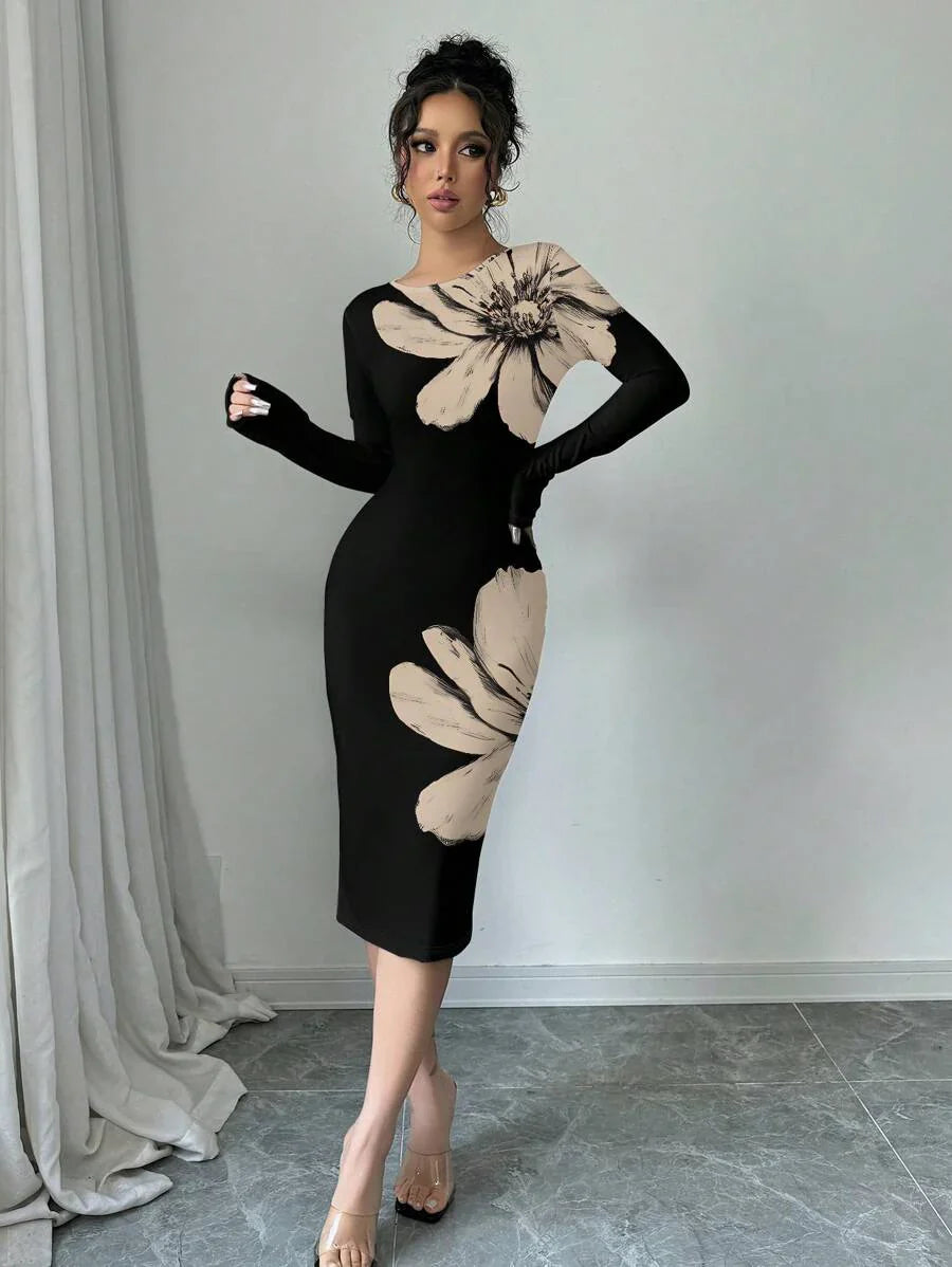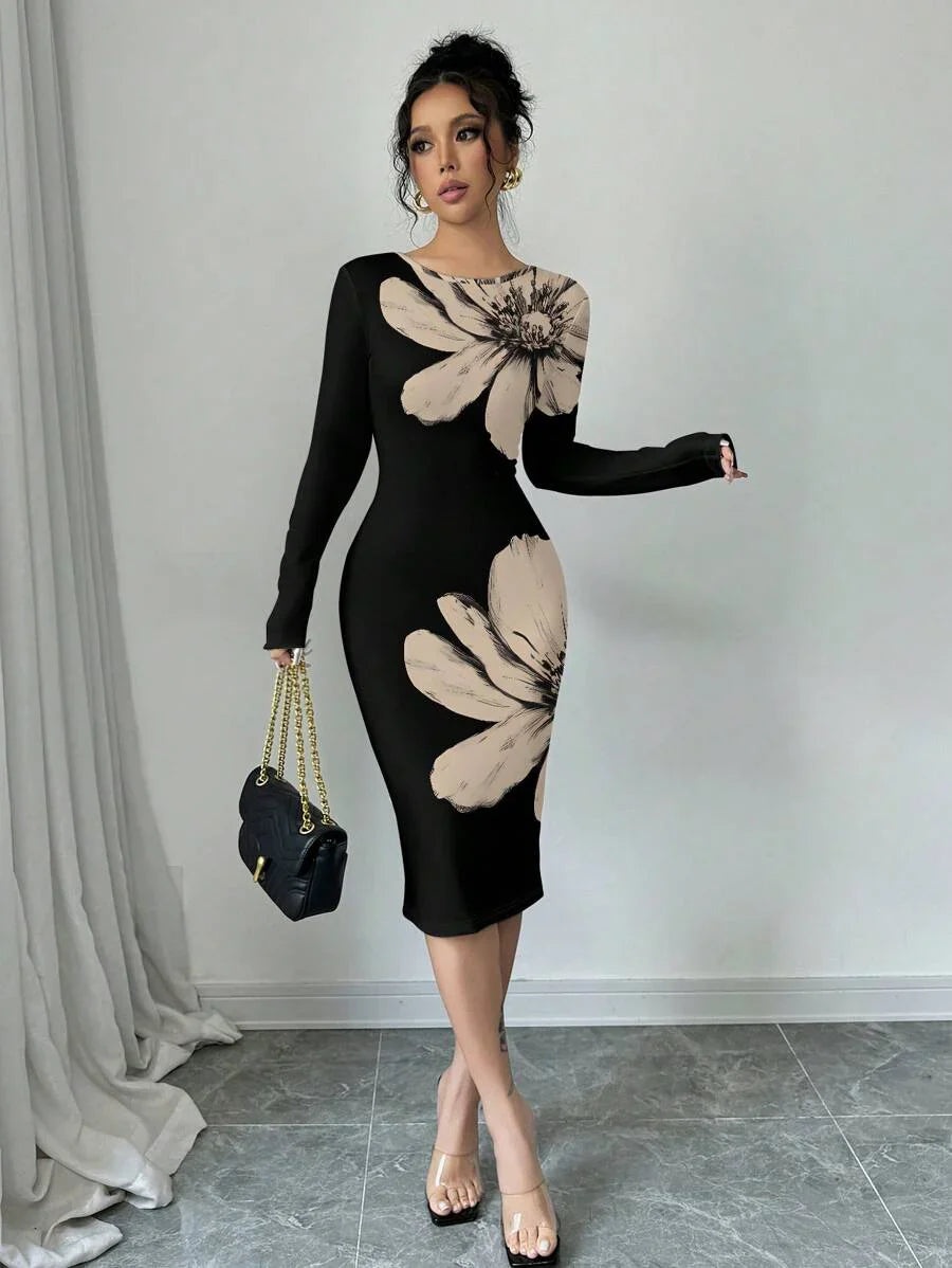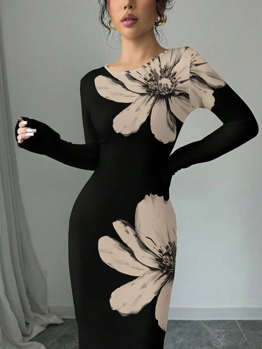 Abito aderente a maniche lunghe con scollo tondo, adatto per primavera e autunno