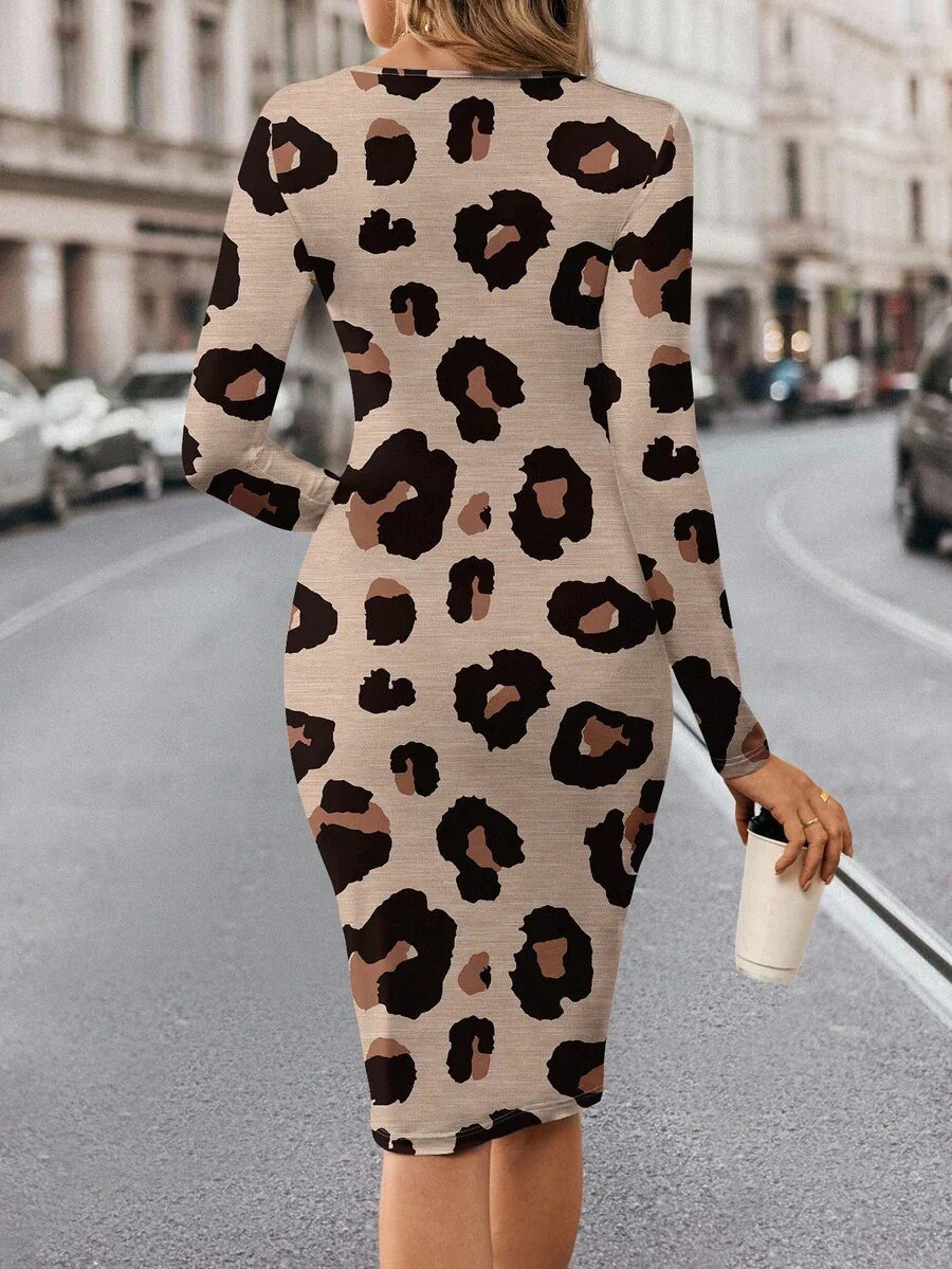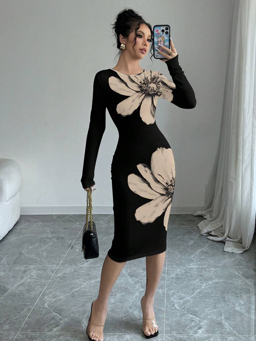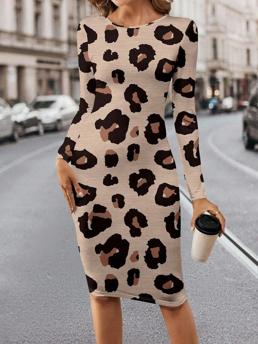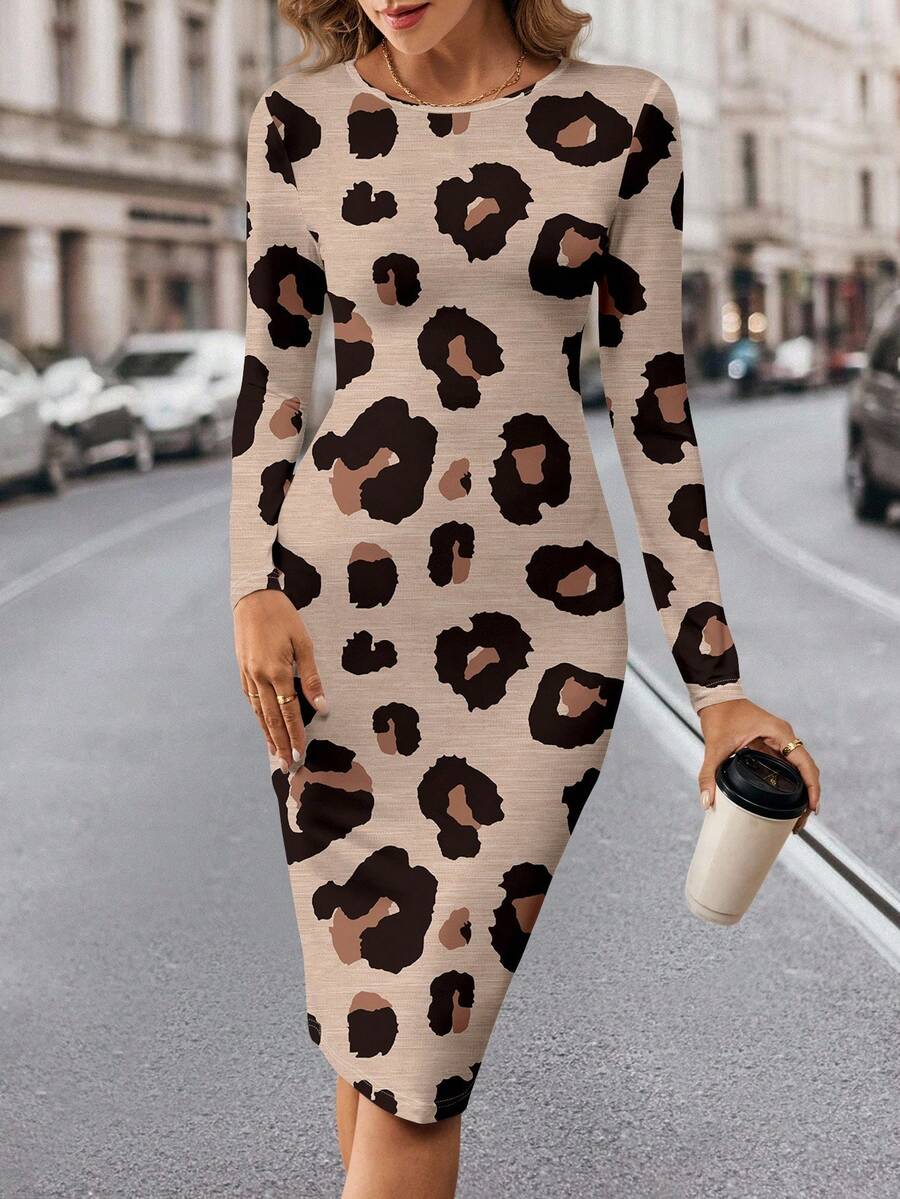 Abito aderente a maniche lunghe con scollo tondo, adatto per primavera e autunno