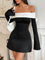 Abito corto casual da donna con spalle scoperte, maniche lunghe e blocchi di colore