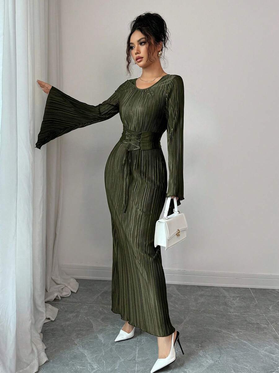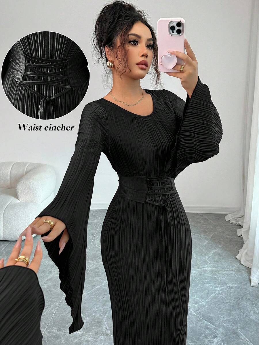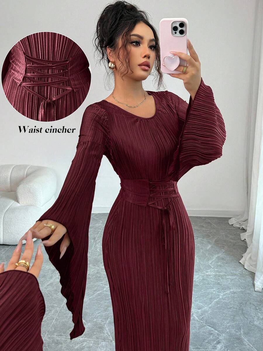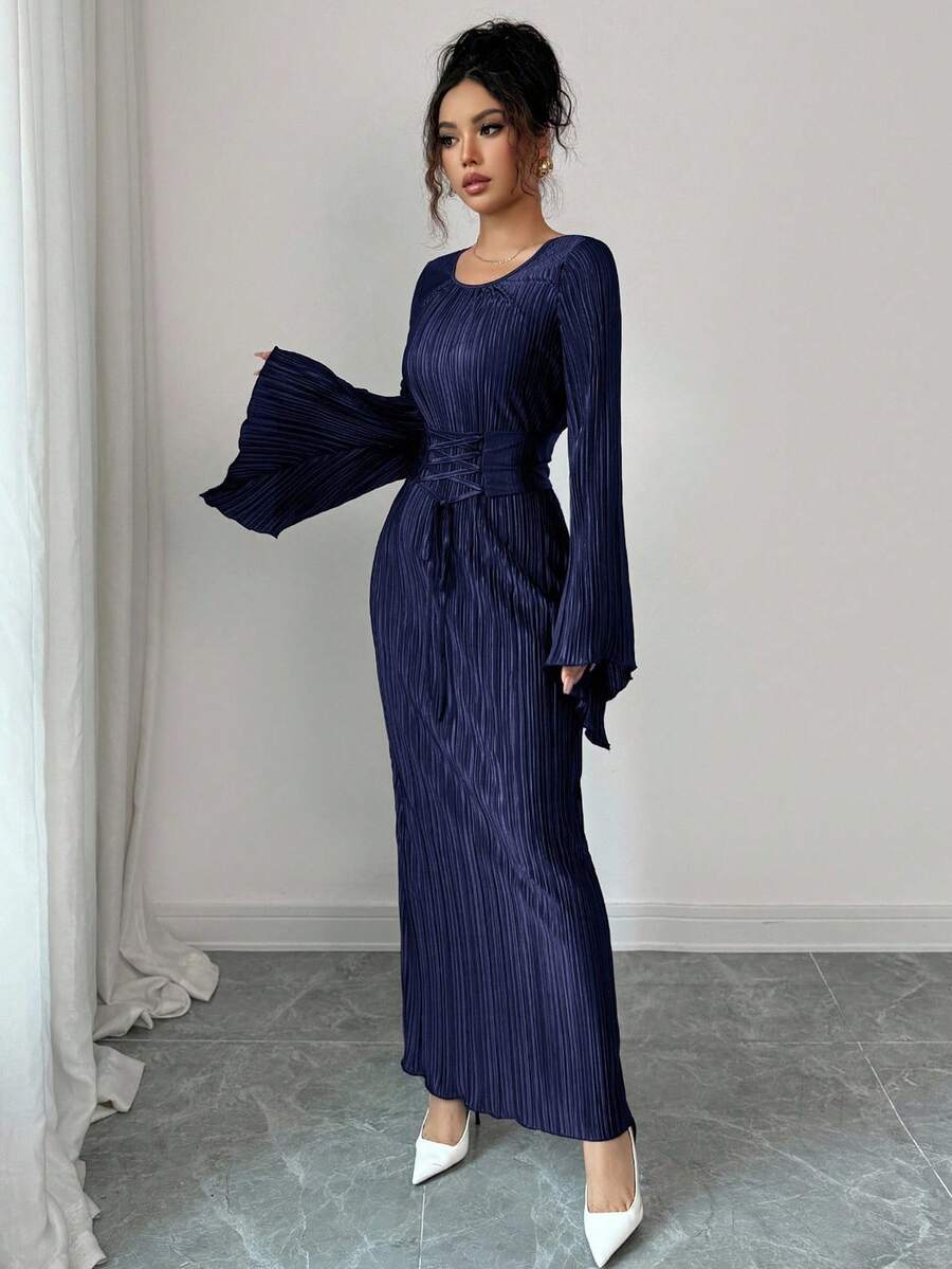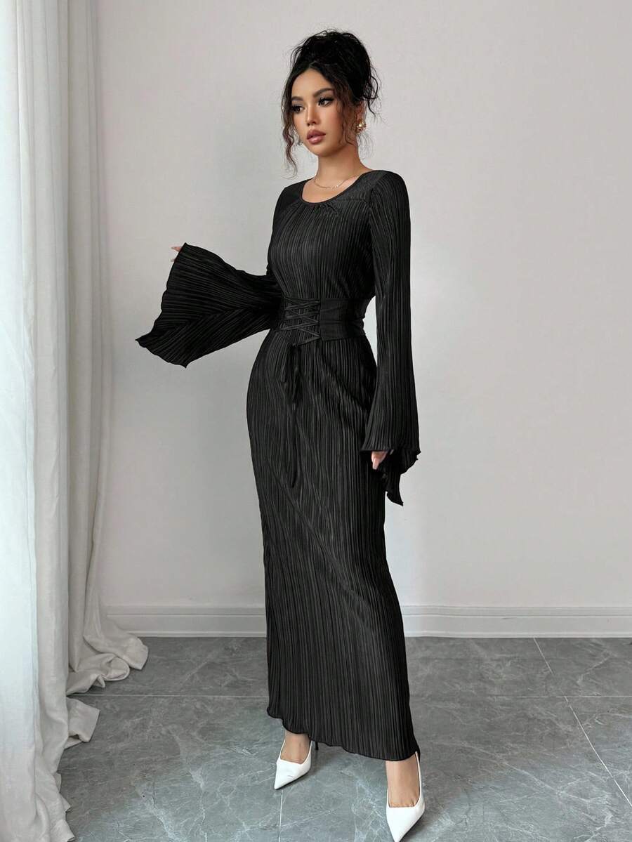 Abito lungo elegante da donna con vita svasata di taglia standard