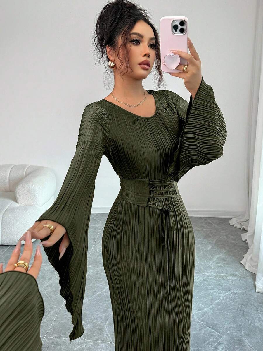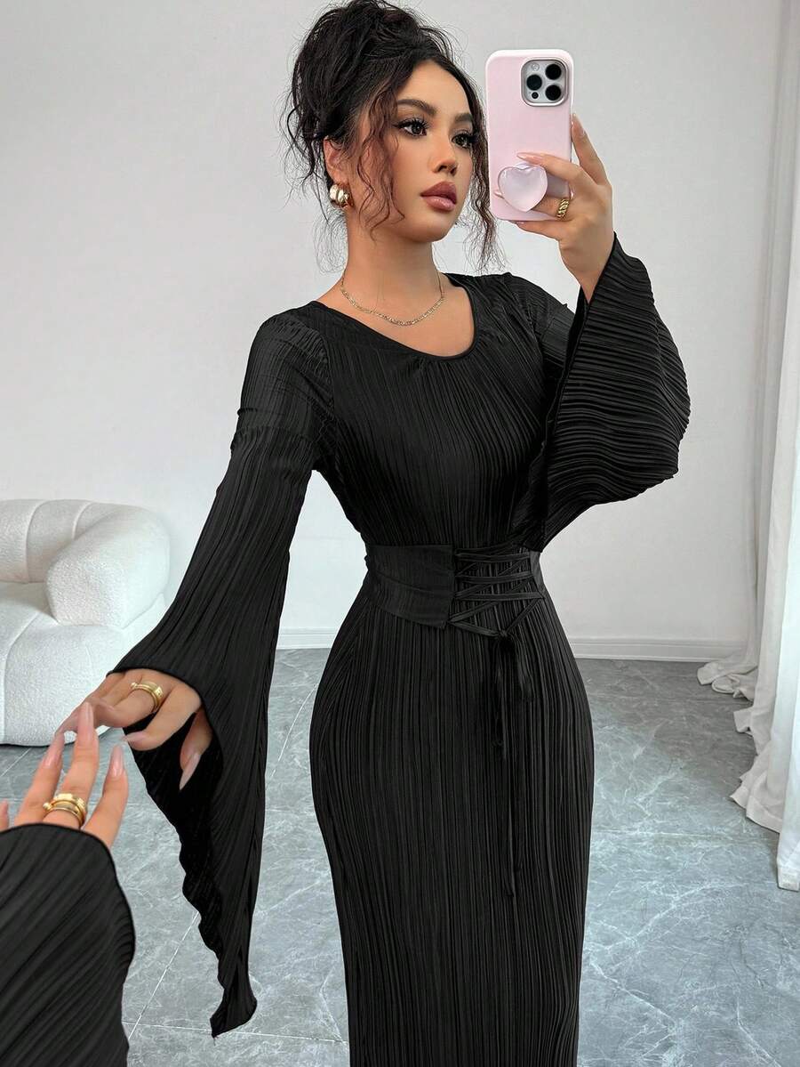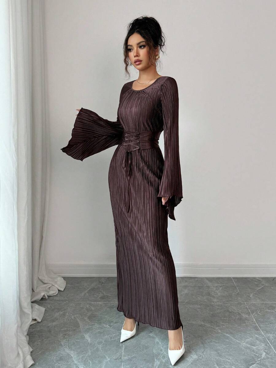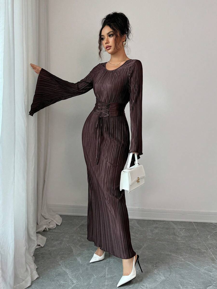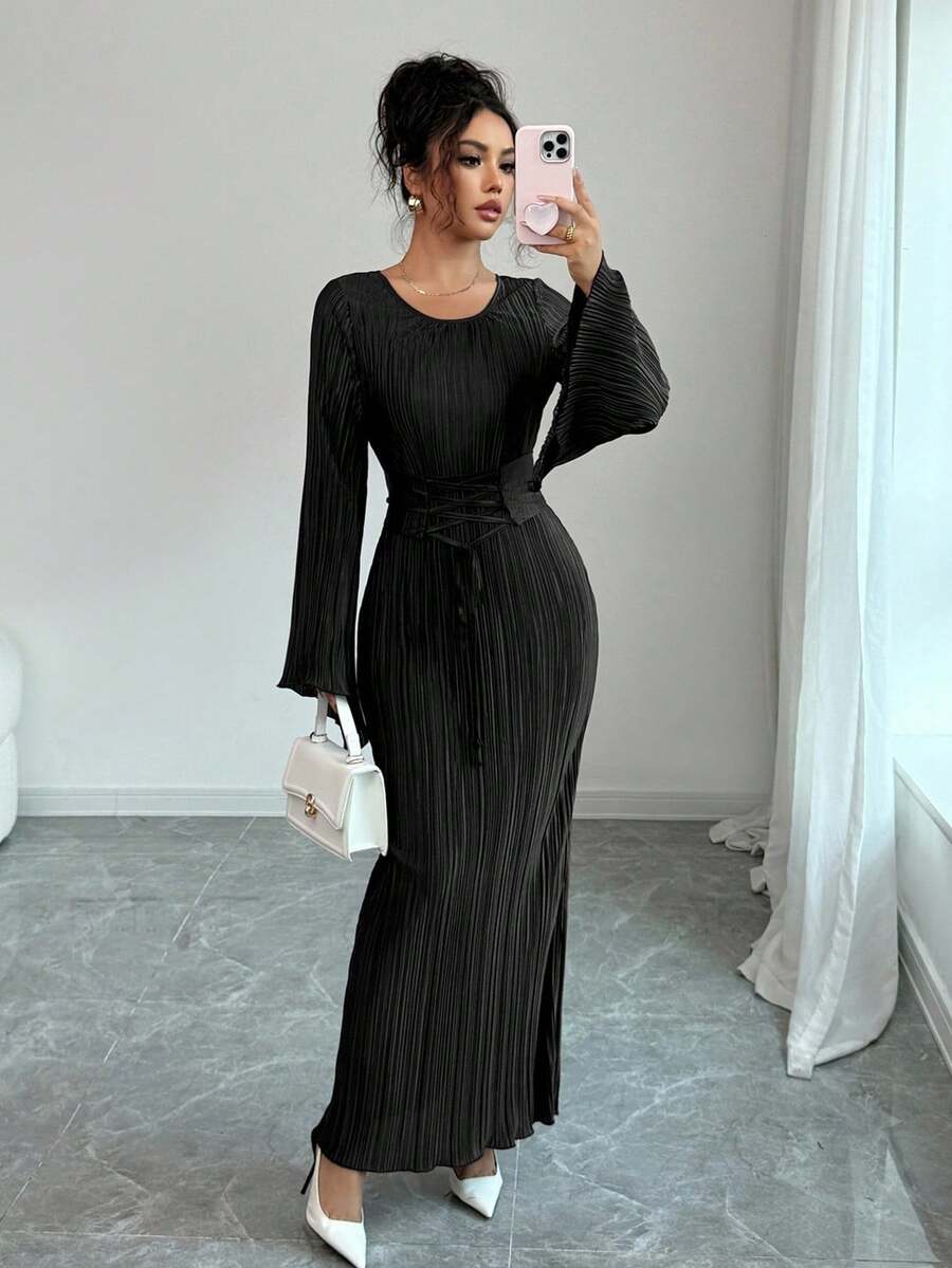 Abito lungo elegante da donna con vita svasata di taglia standard