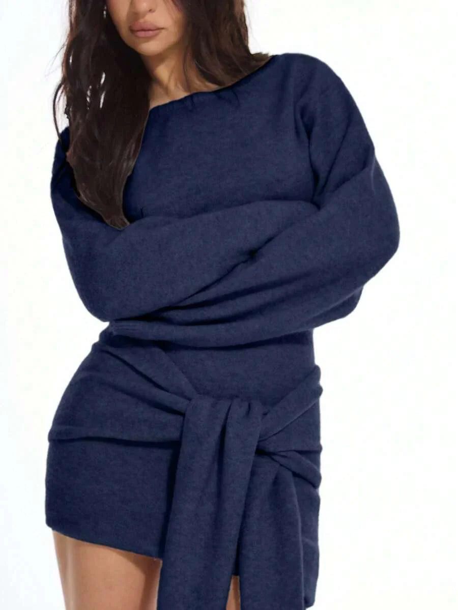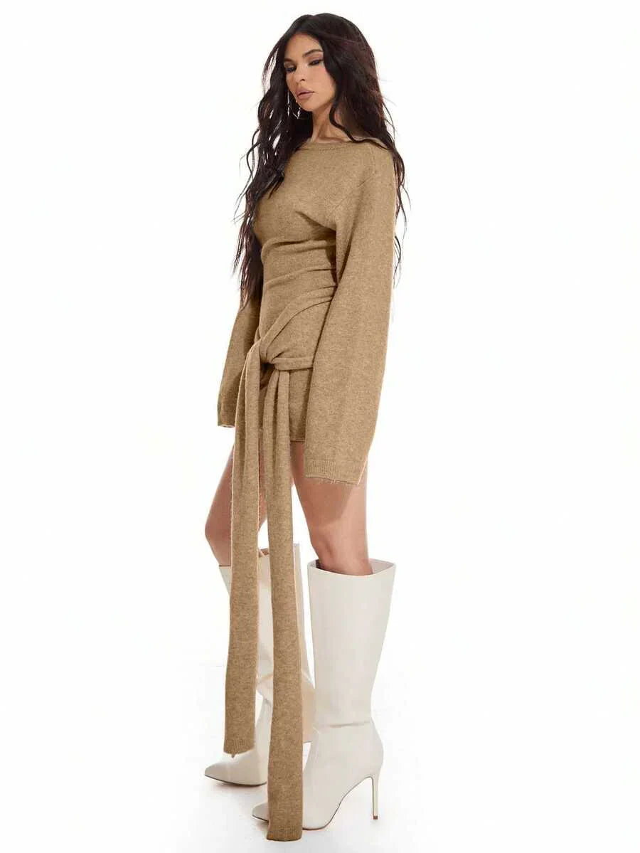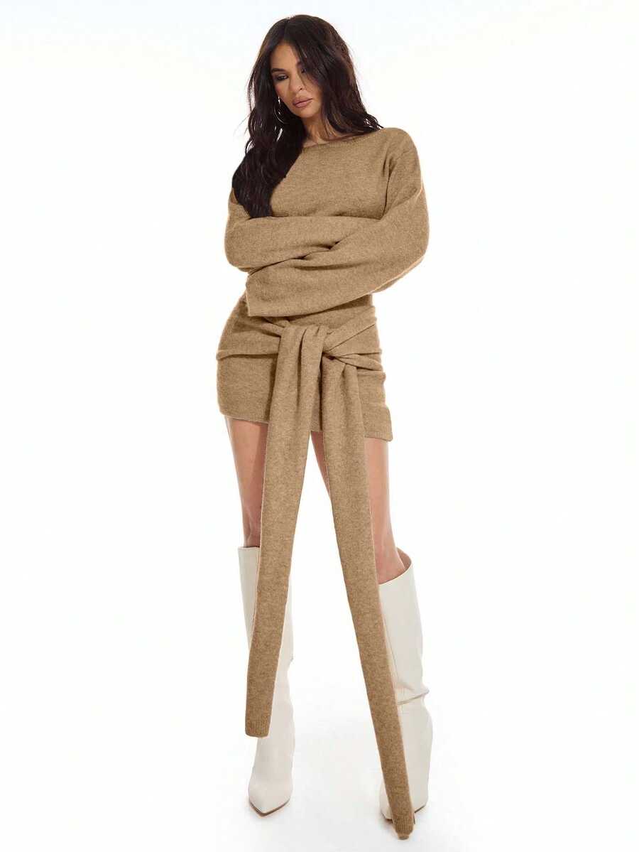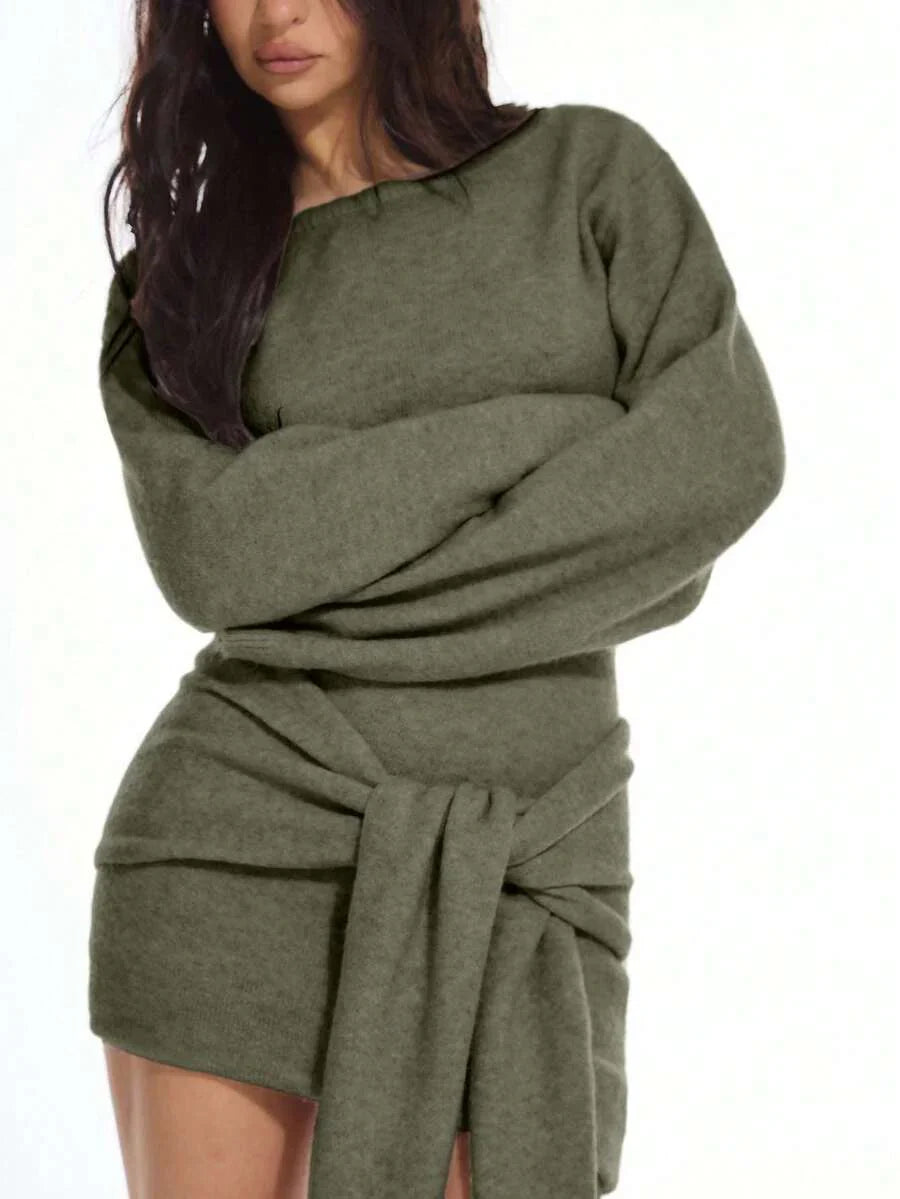 Abito maglione lavorato a maglia pesante con fiocco, elegante