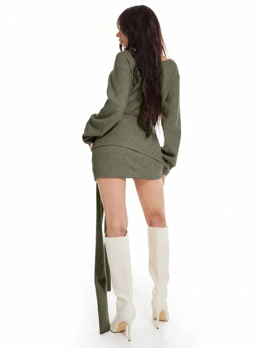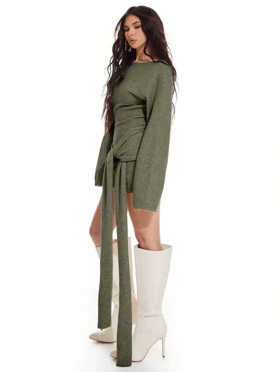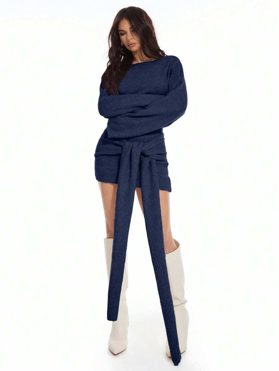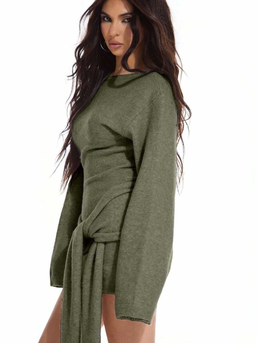 Abito maglione lavorato a maglia pesante con fiocco, elegante