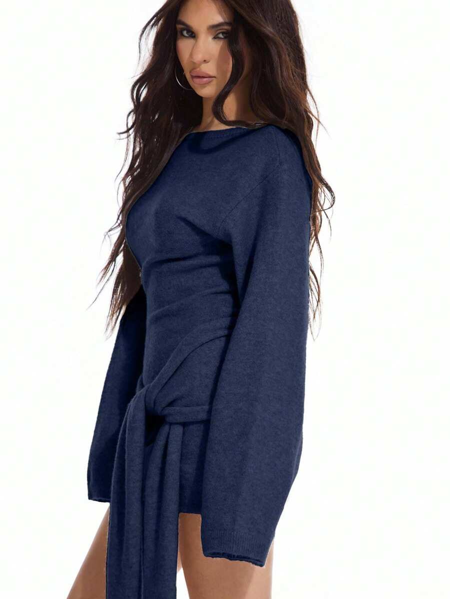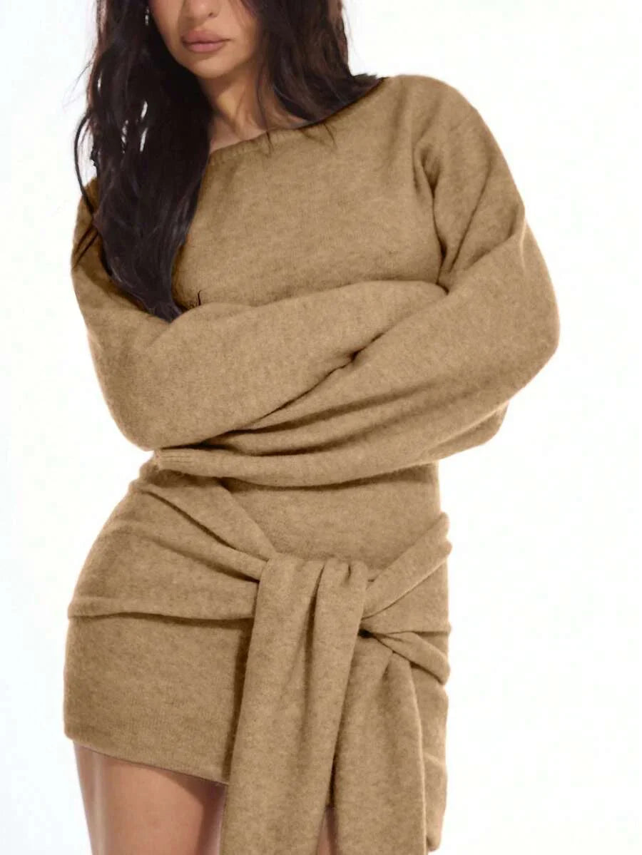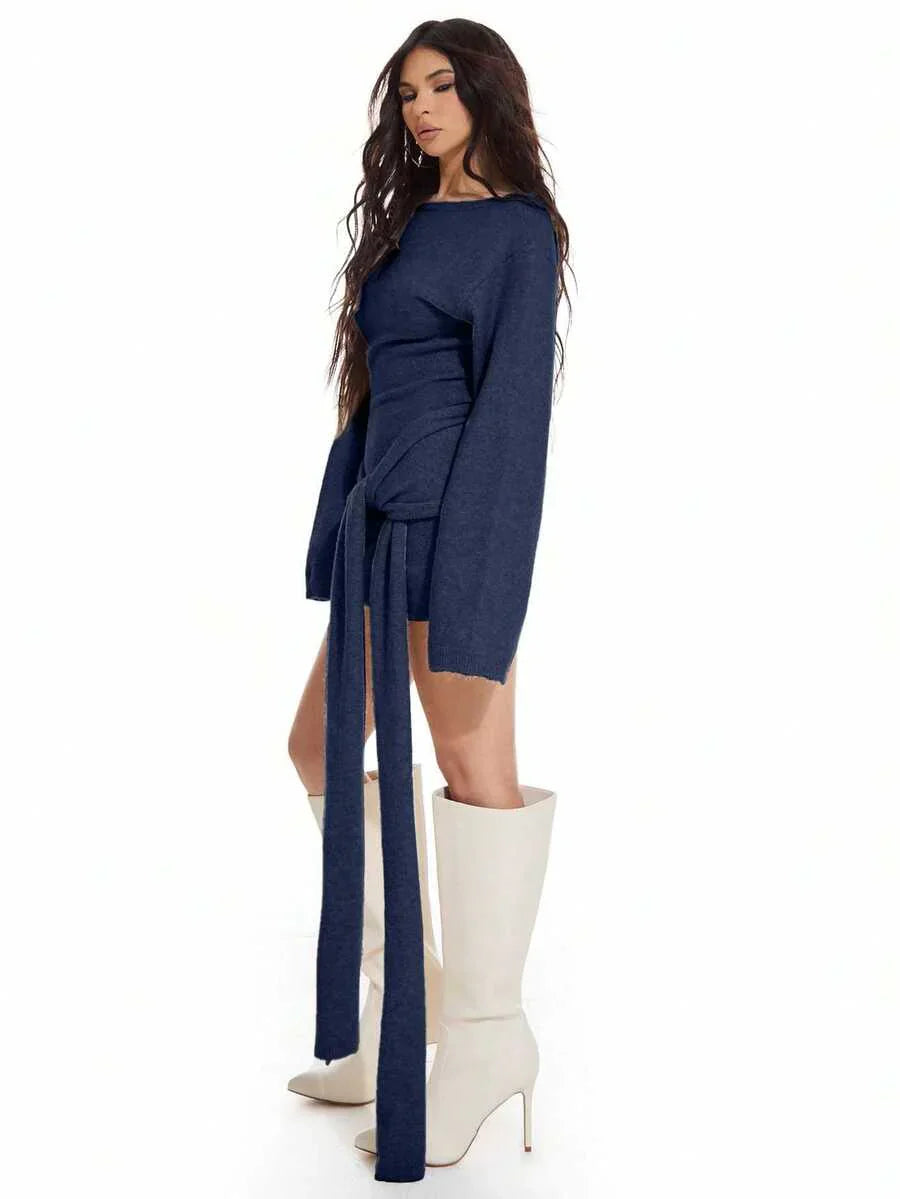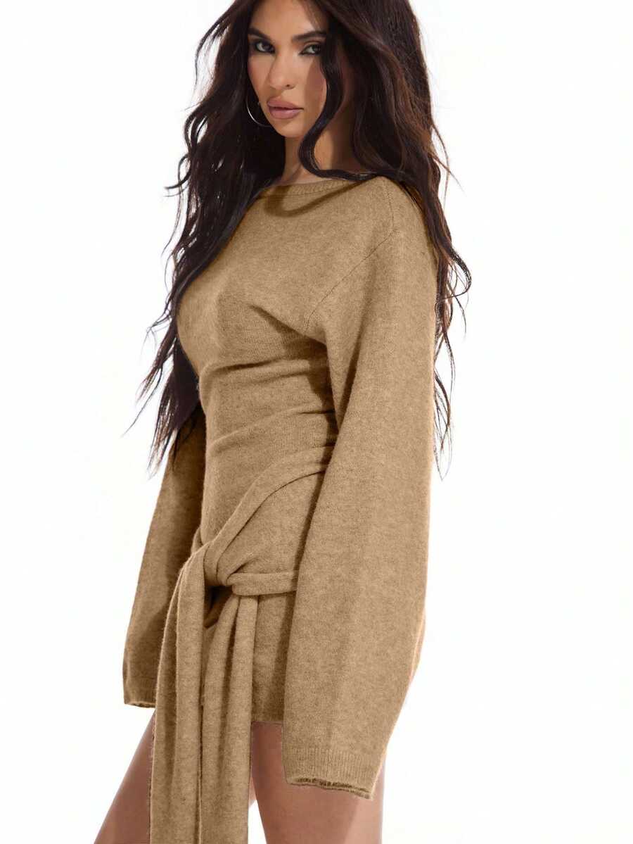Abito maglione lavorato a maglia pesante con fiocco, elegante