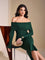Abito midi a tubino aderente con spalle scoperte e arricciature