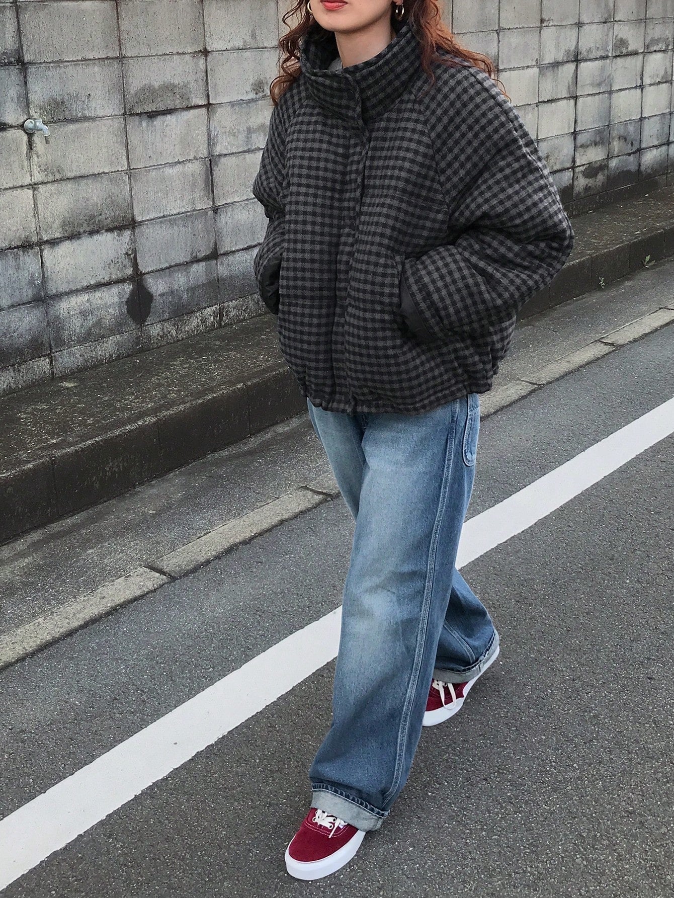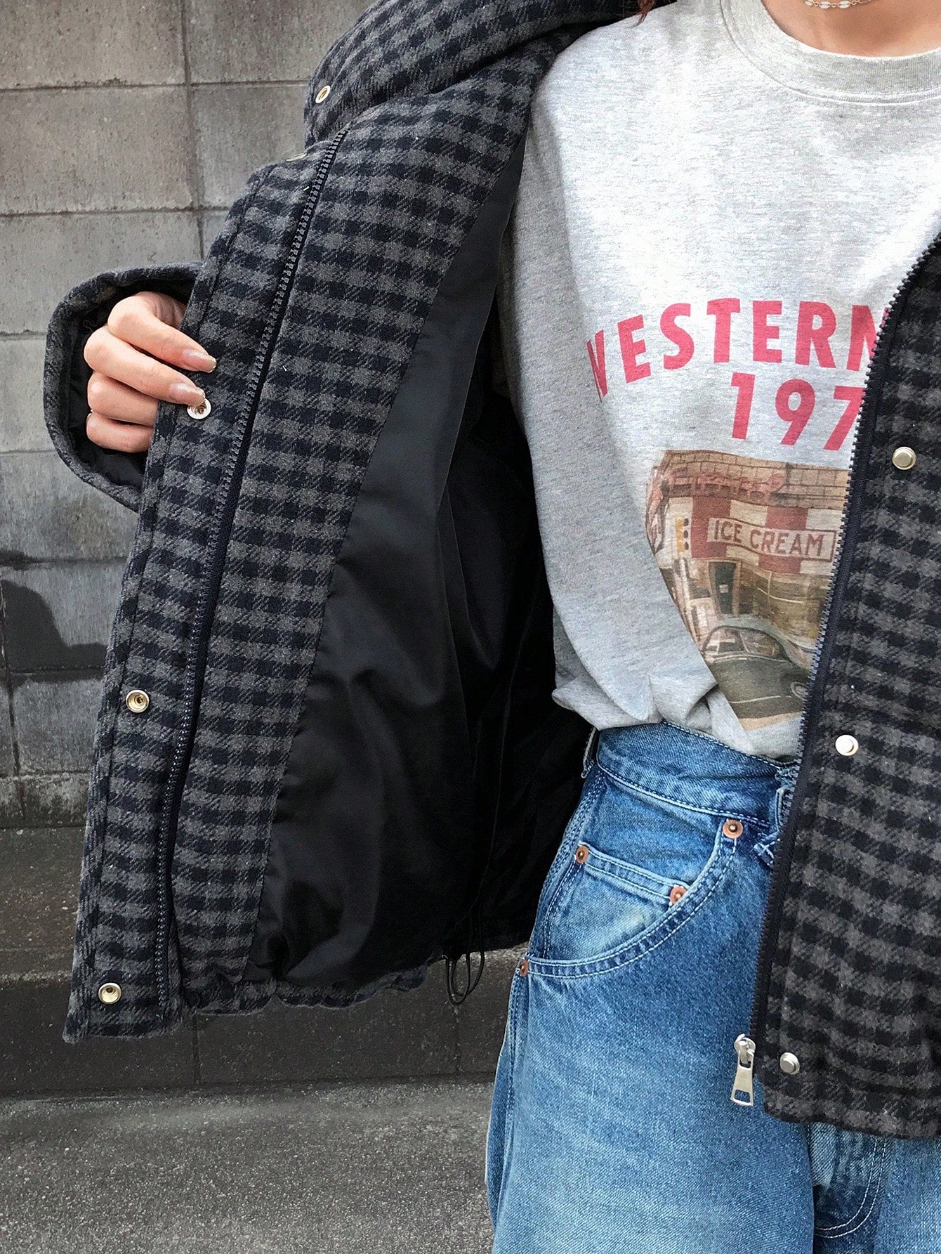 Cappotto imbottito casual e versatile con colletto alto a quadri, adatto per autunno/inverno