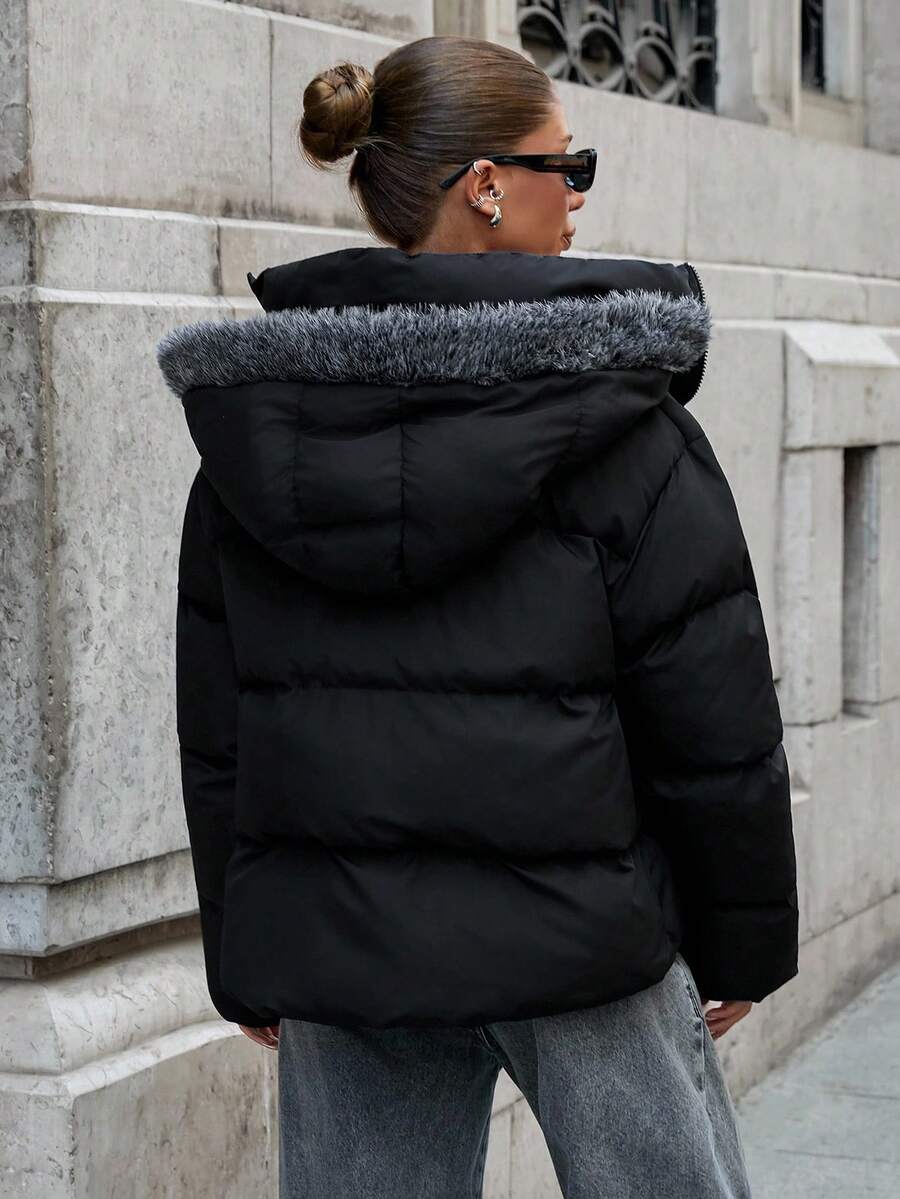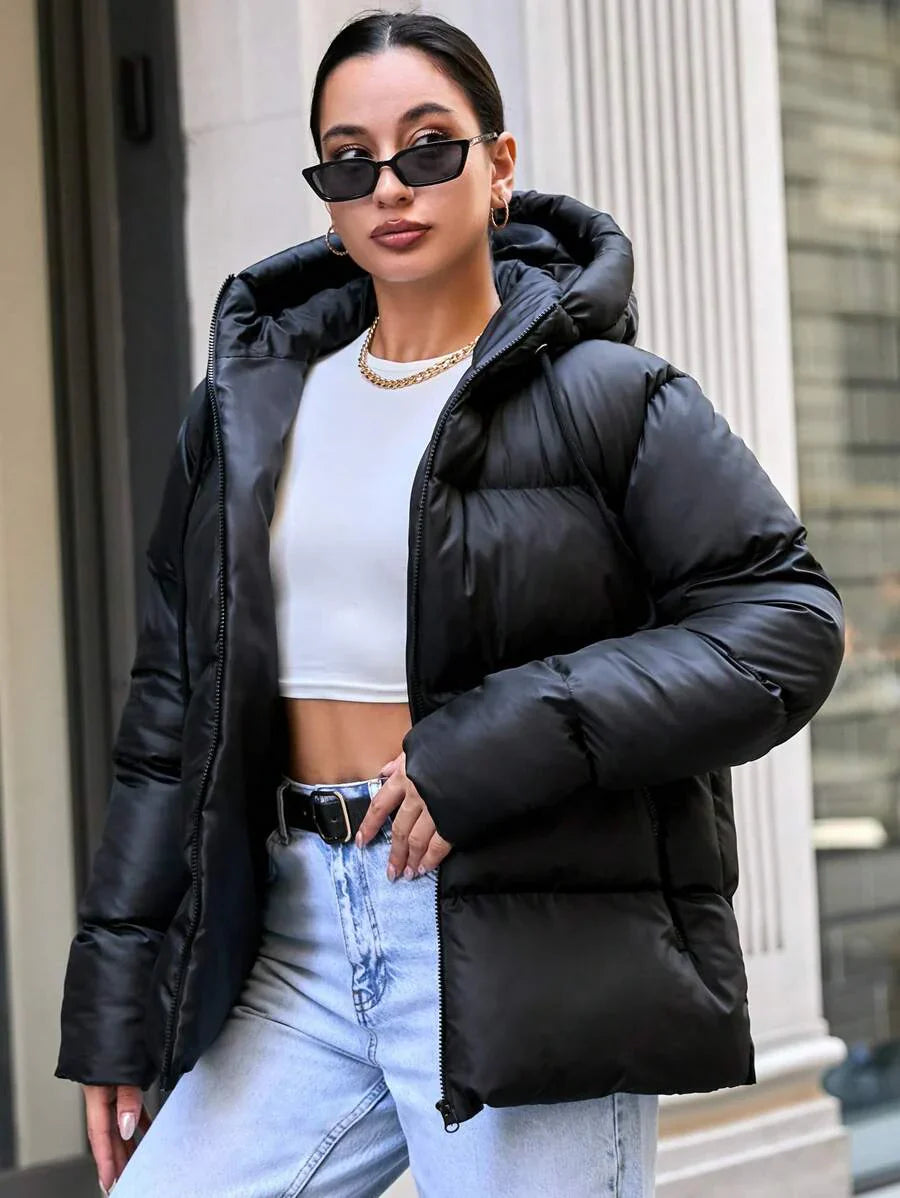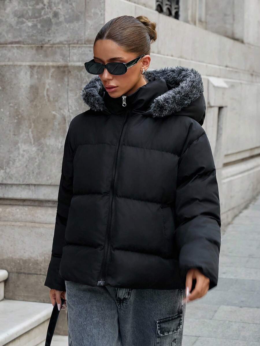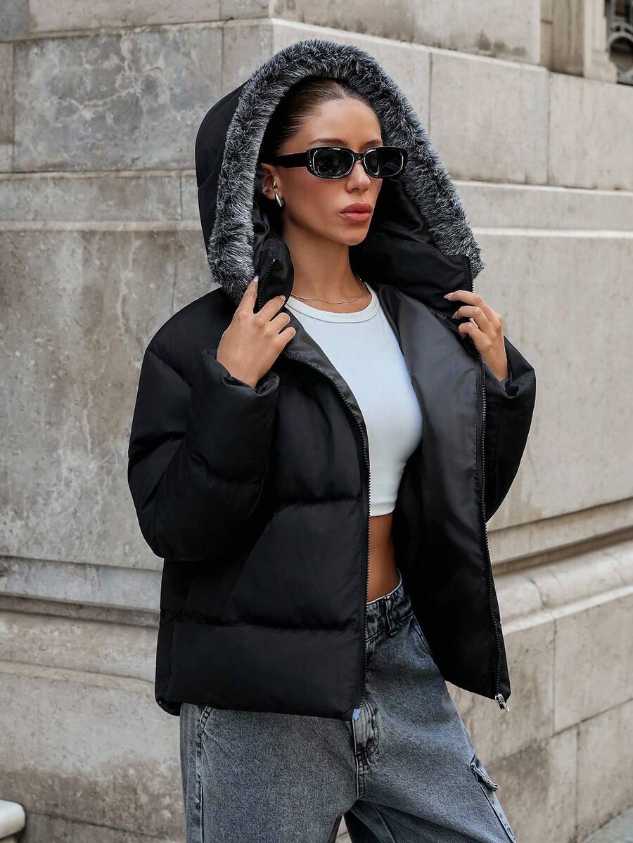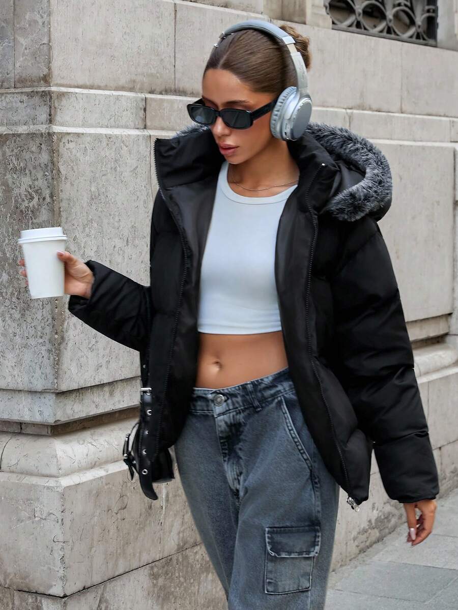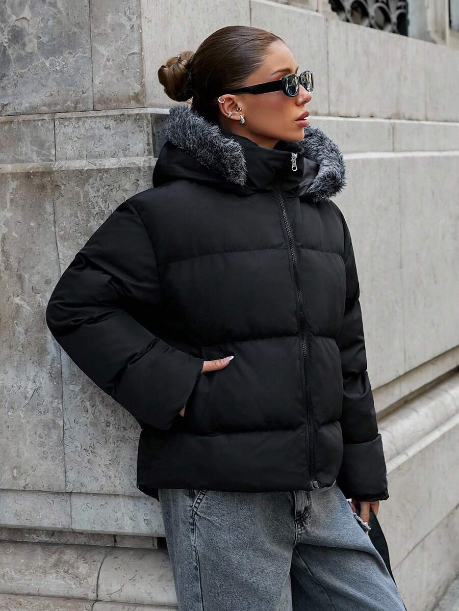 Cappotto imbottito con chiusura lampo e cappuccio soffice