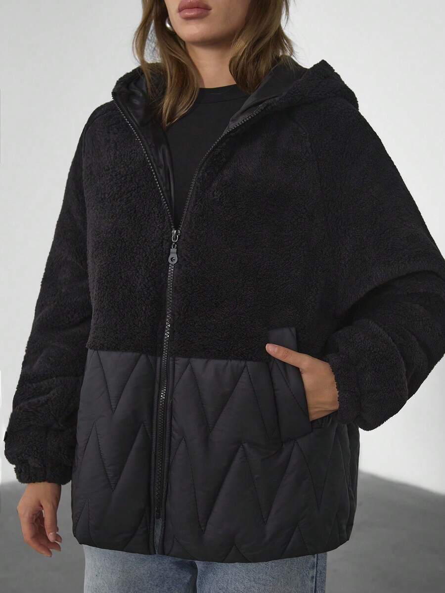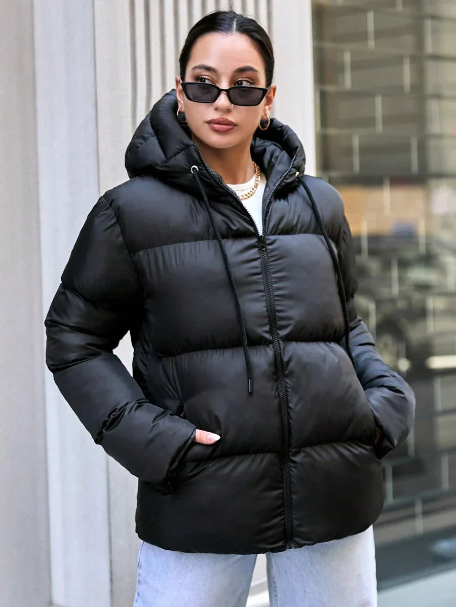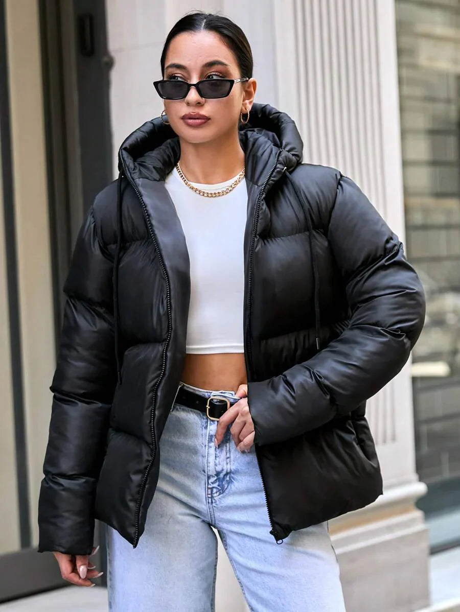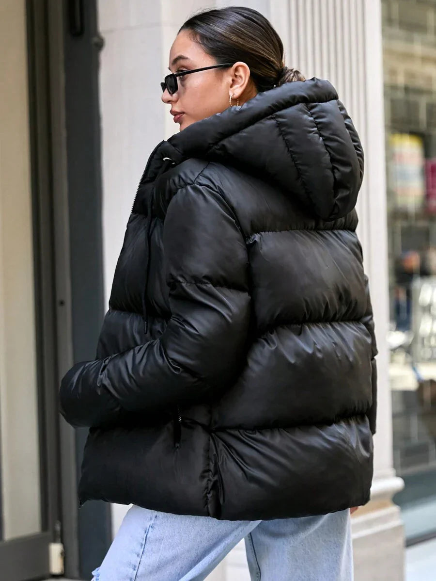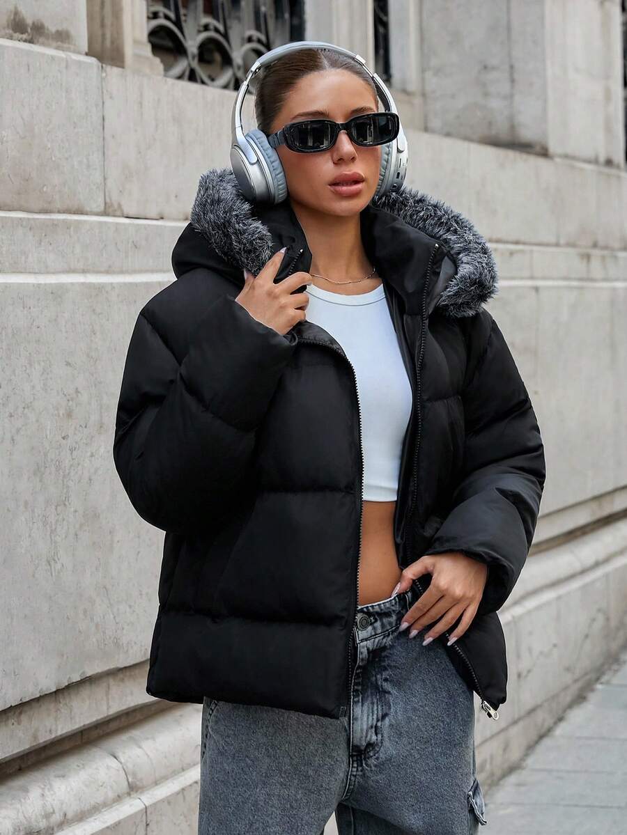 Cappotto imbottito con chiusura lampo e cappuccio soffice