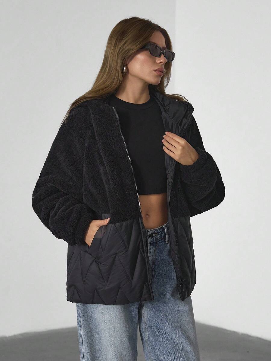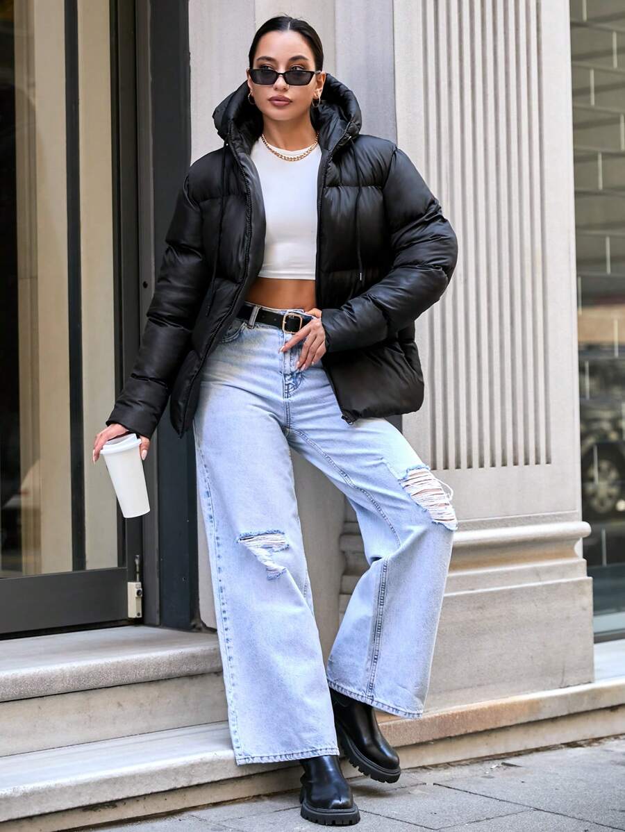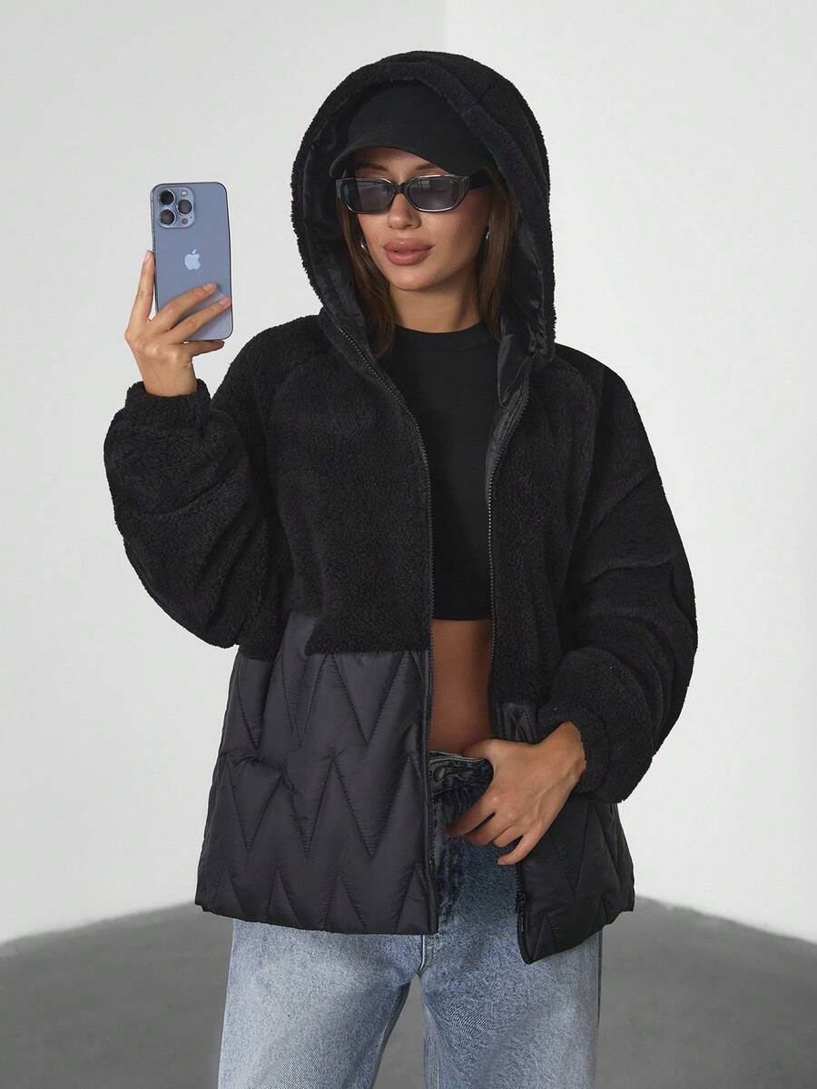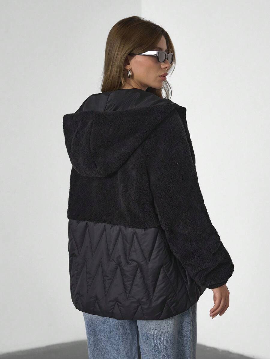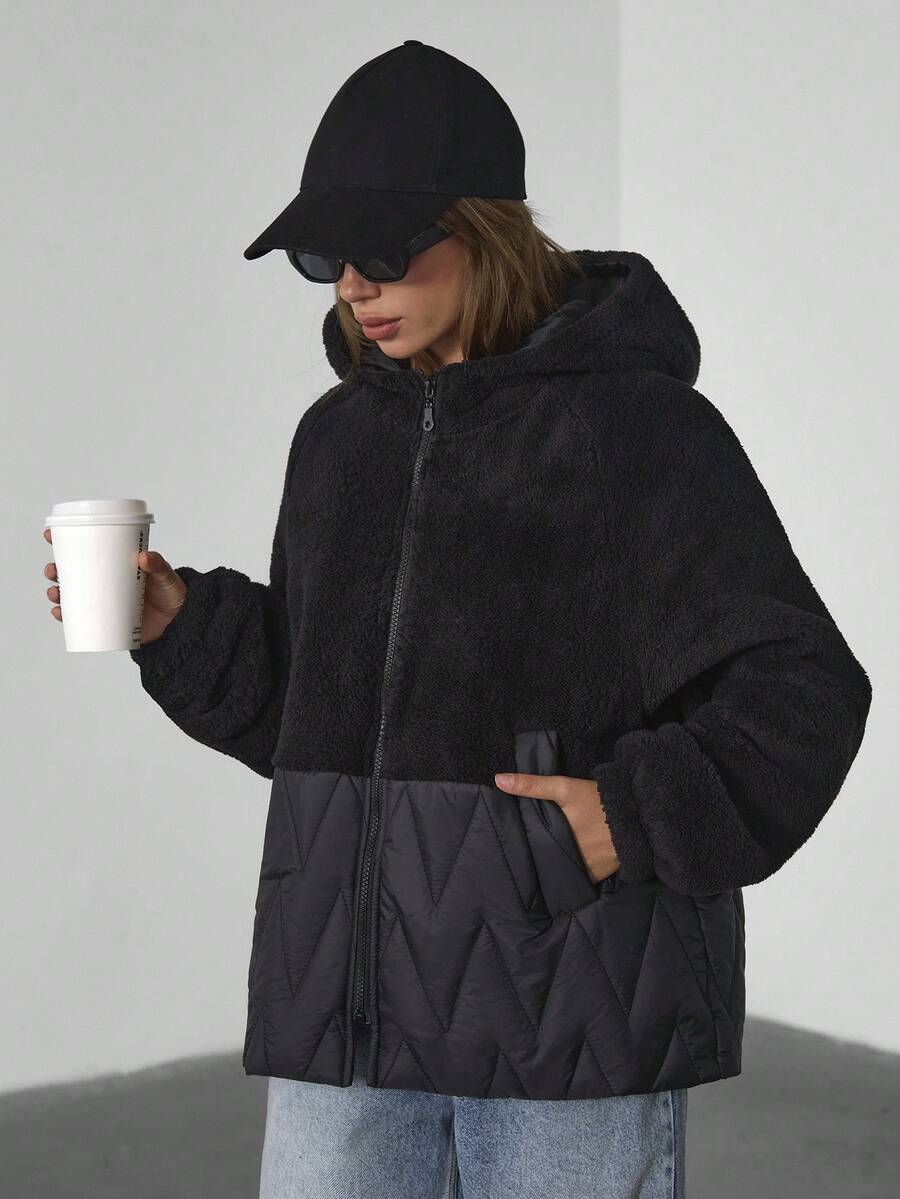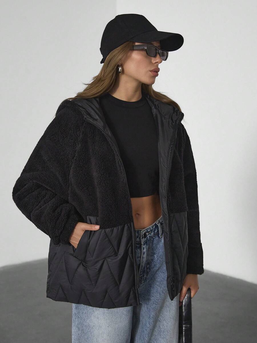 Cappotto imbottito con chiusura lampo e cappuccio soffice