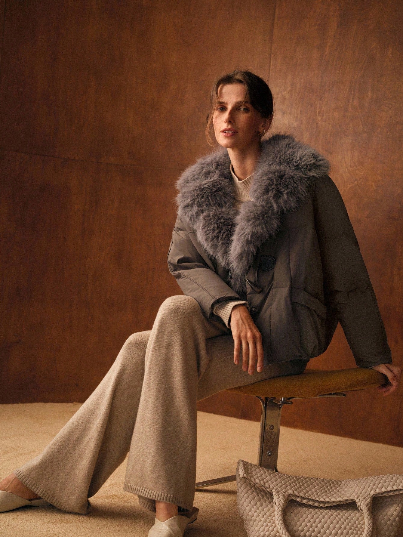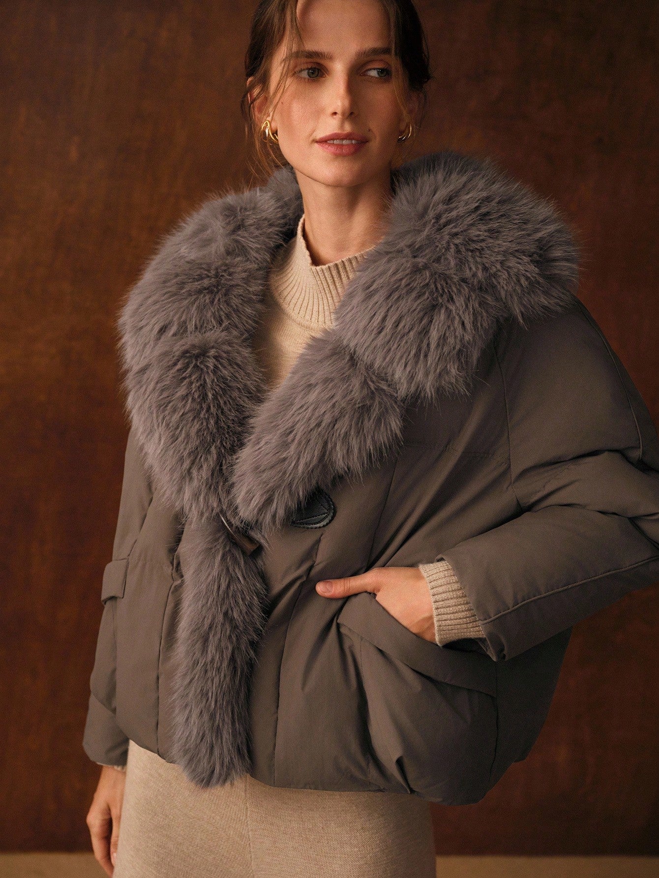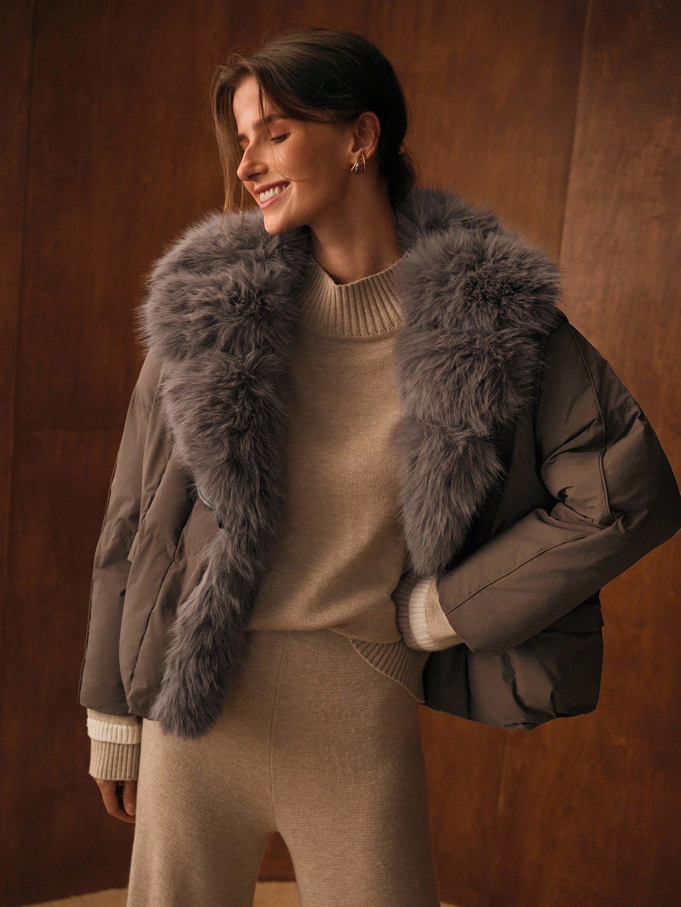 CAPPOTTO INVERNALE CON FINTA PELLICCIA A CASCATA BICOLORE