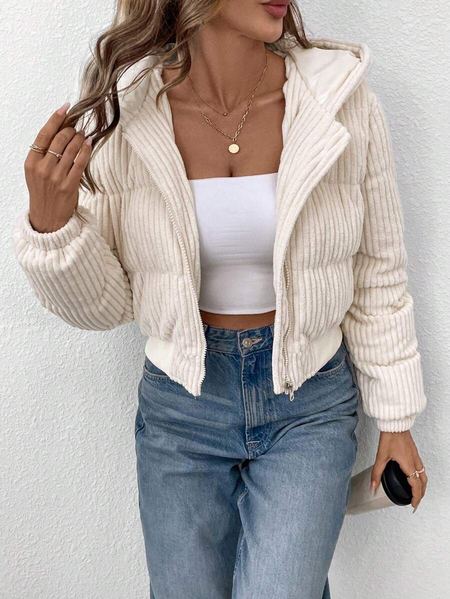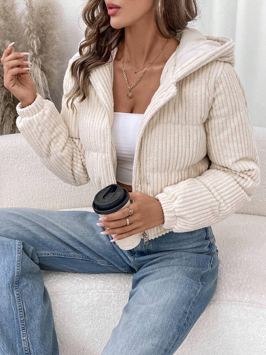 Cappotto trapuntato in velluto a coste casual e casual da donna
