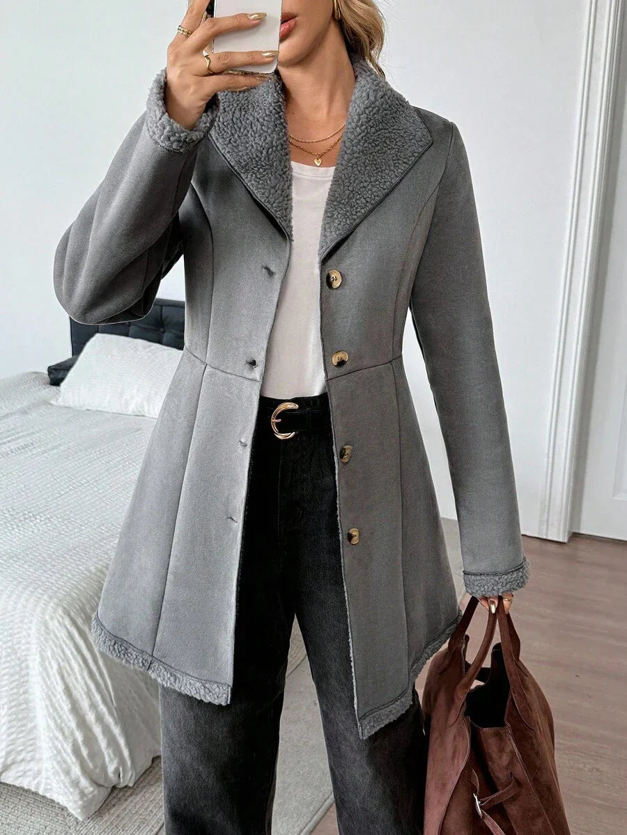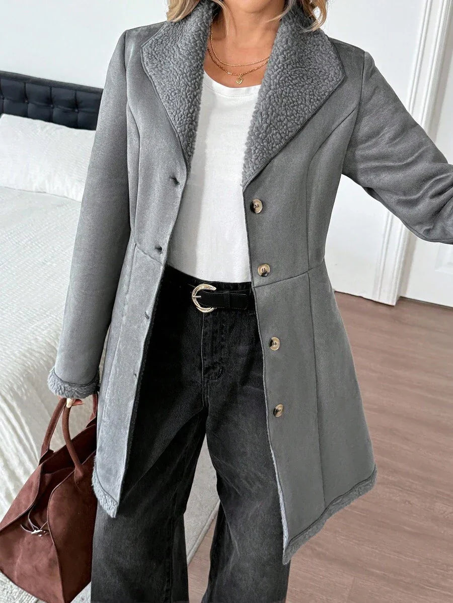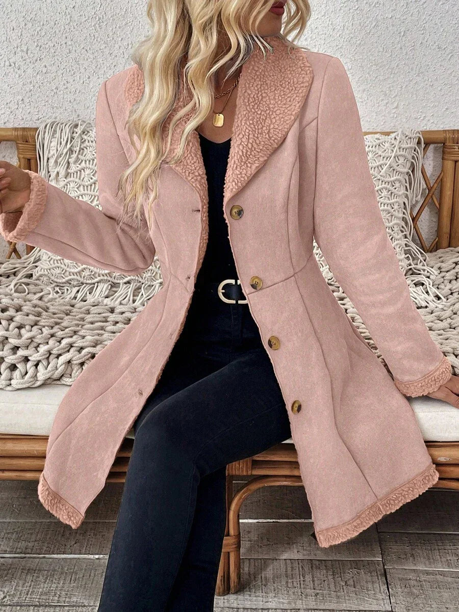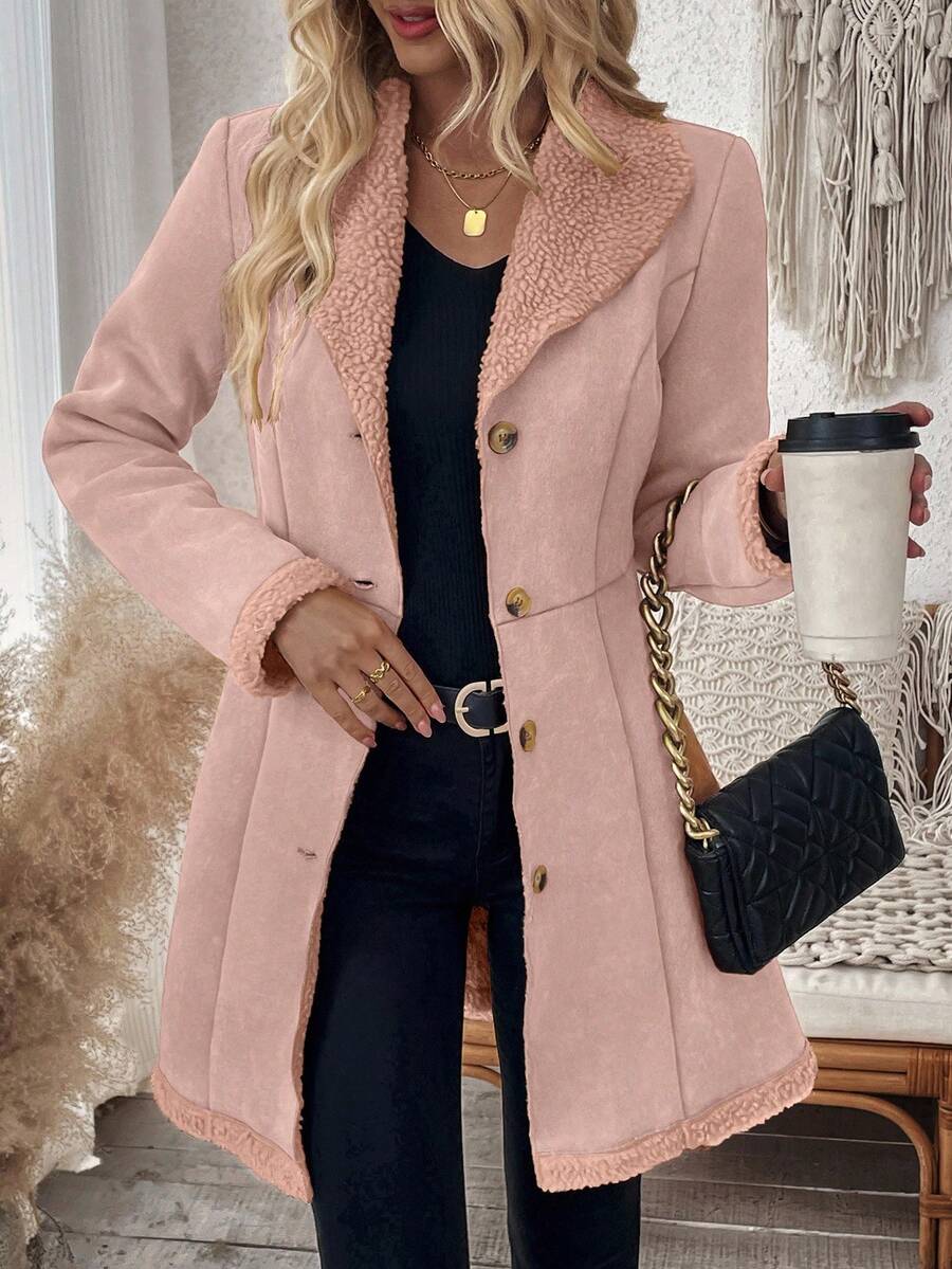 Giacca casual da donna con colletto, maniche lunghe e bottoni anteriori, in tessuto termico
