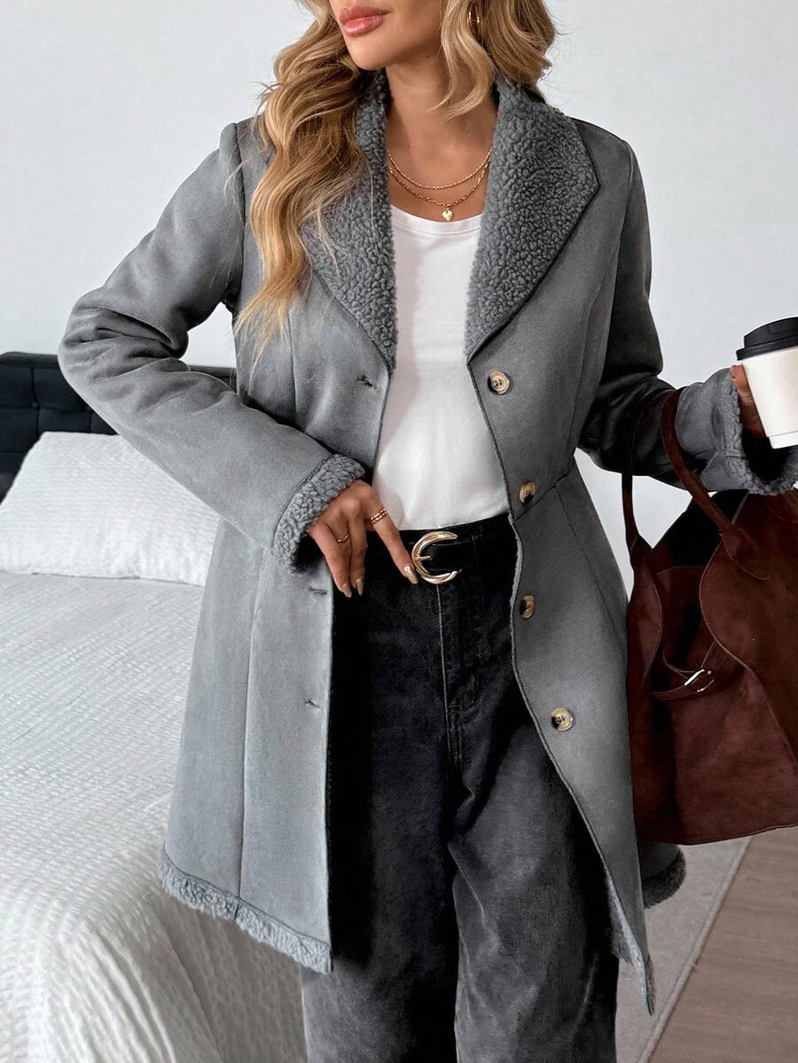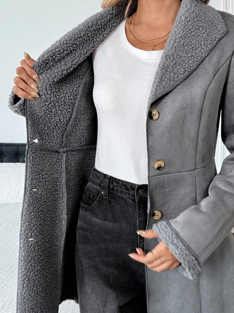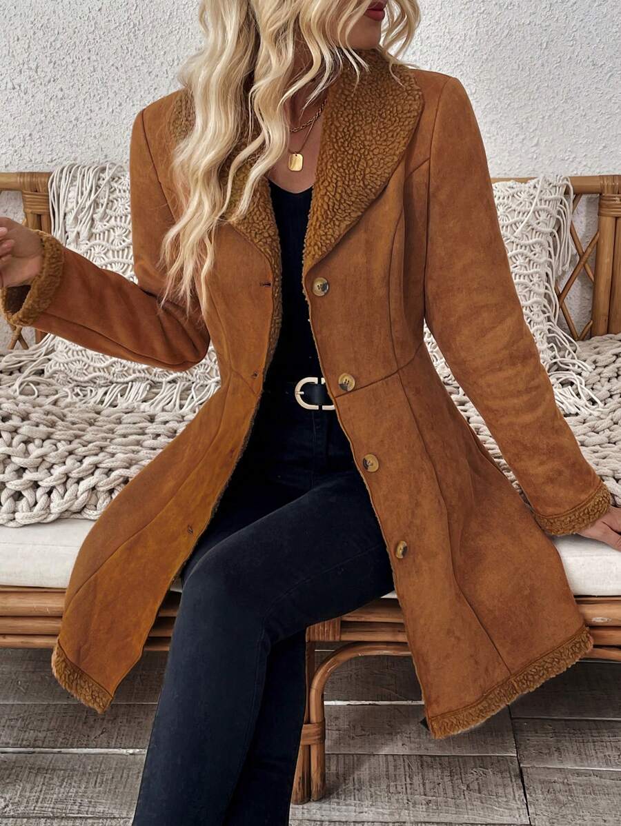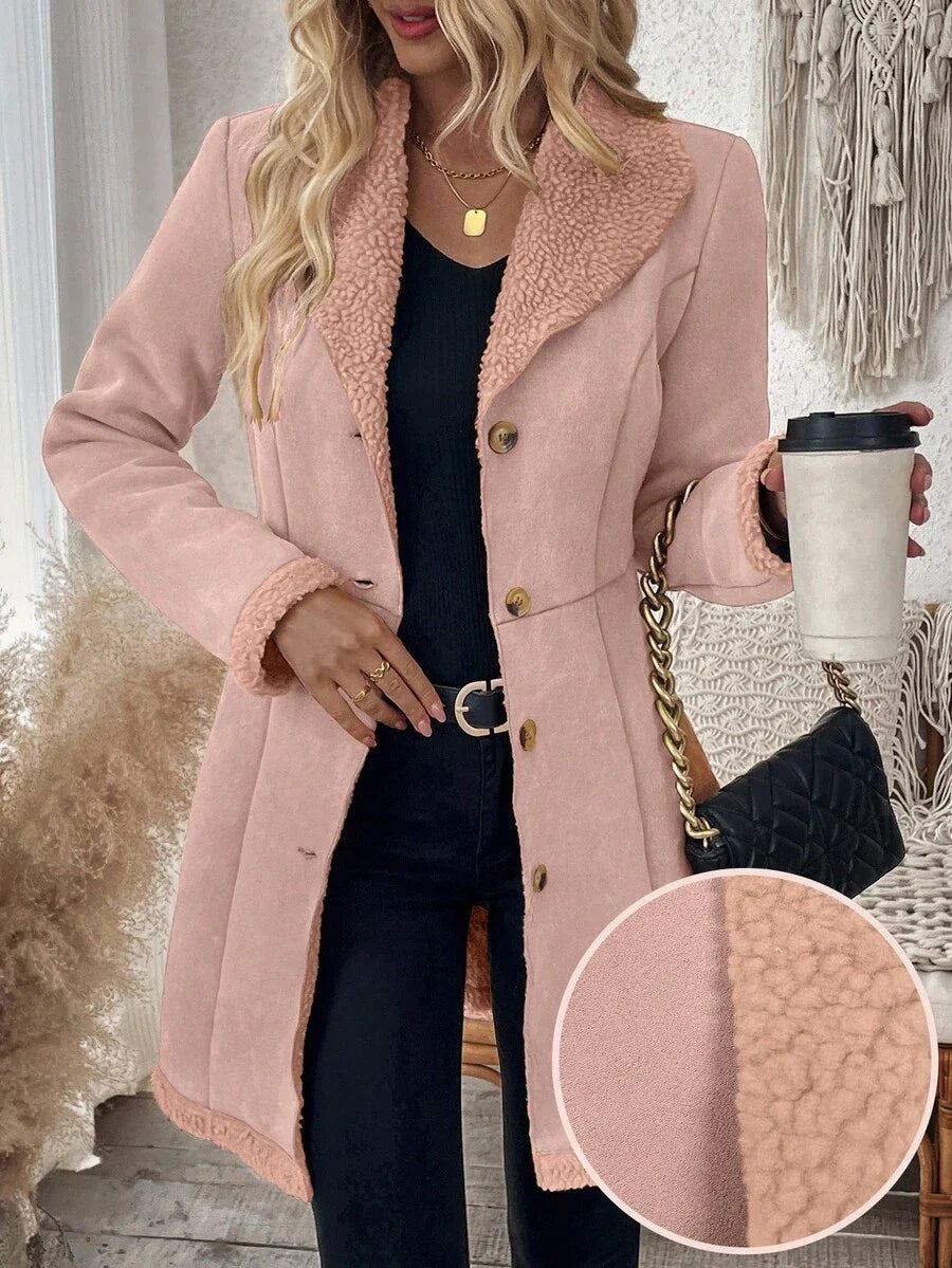 Giacca casual da donna con colletto, maniche lunghe e bottoni anteriori, in tessuto termico