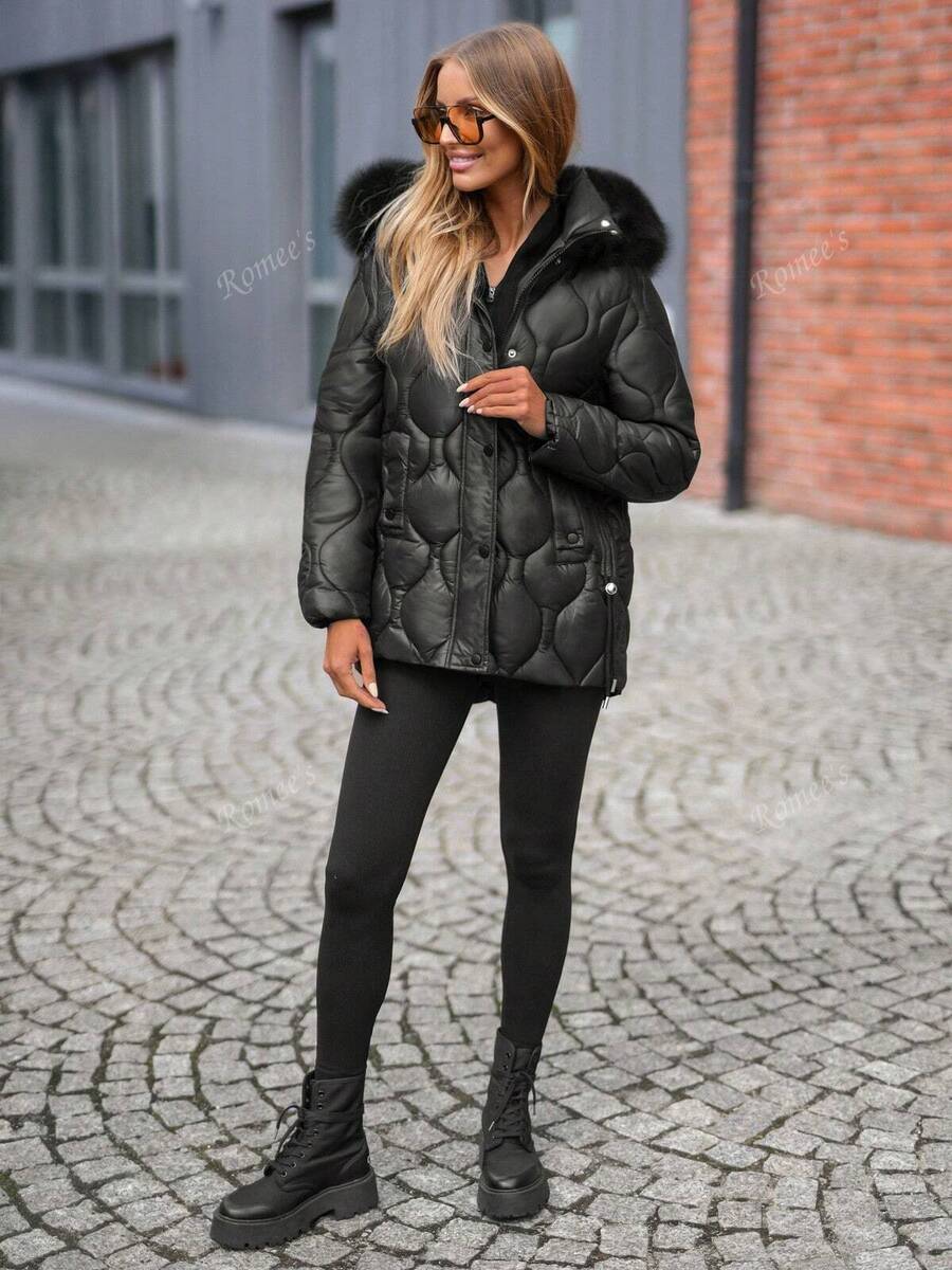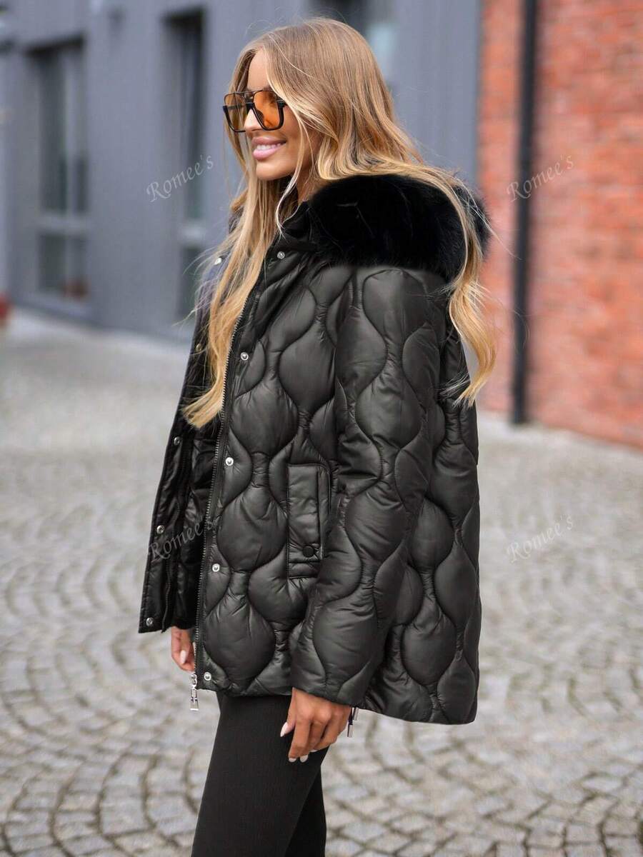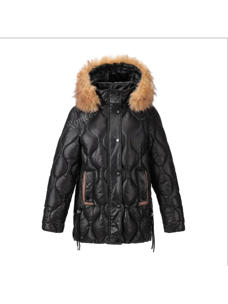 Giacca invernale da donna in cotone caldo, con cappuccio e colletto in pelliccia, modello invernale