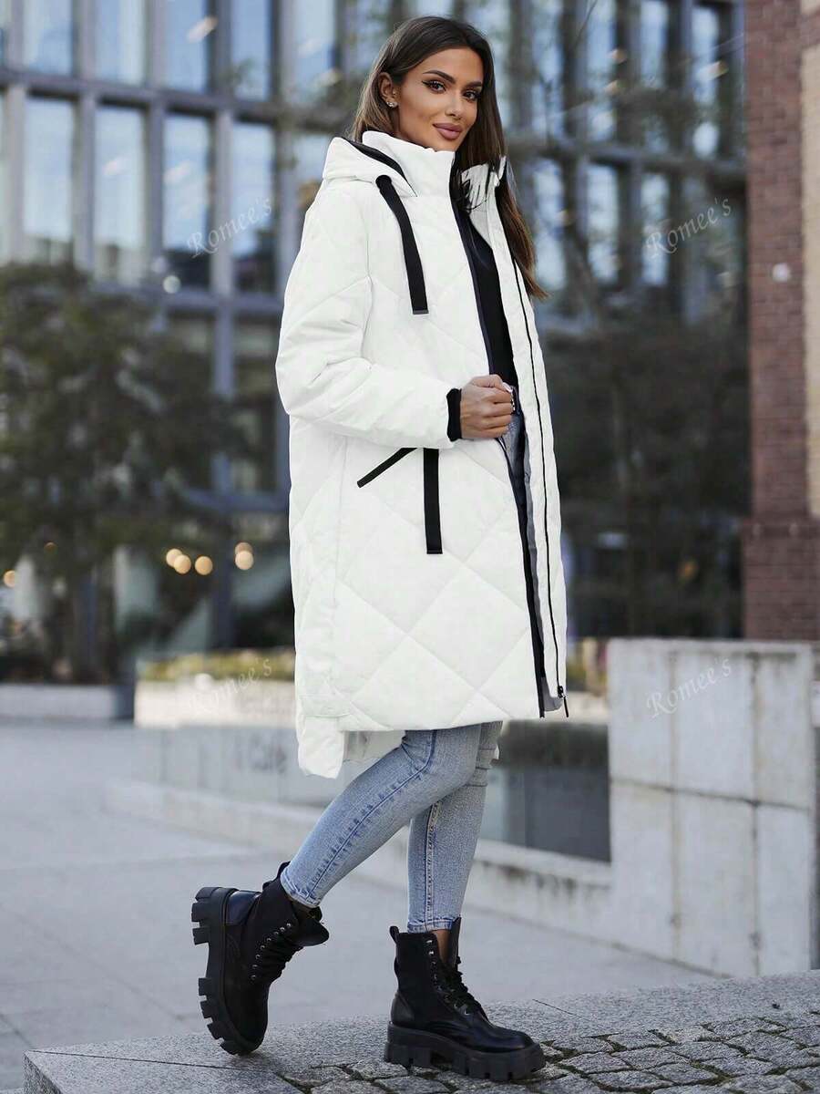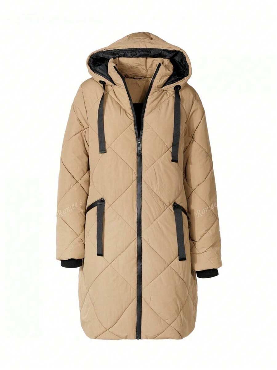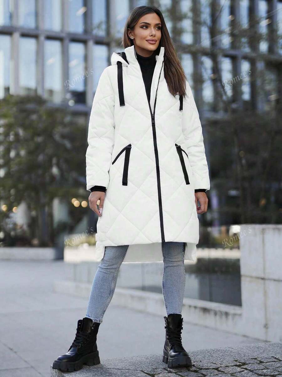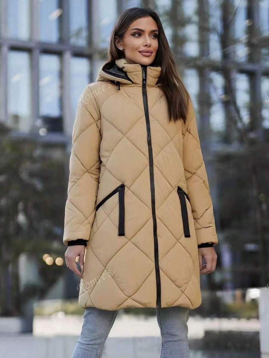 Giacca invernale lunga da donna in cotone casual per il tempo libero con cerniera e tasca a coste