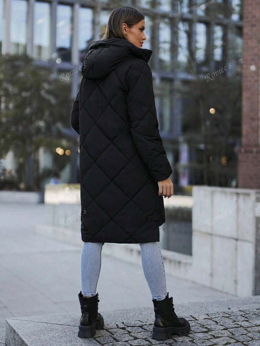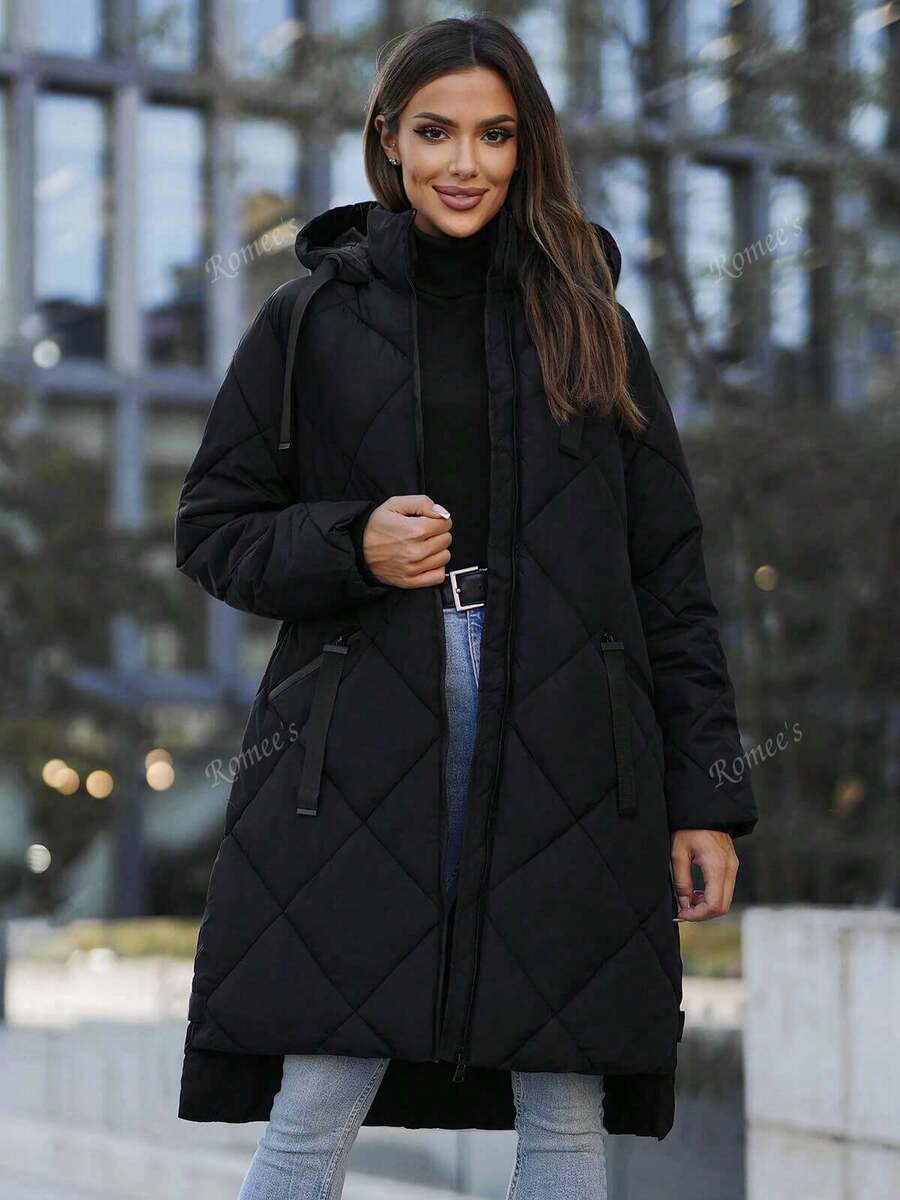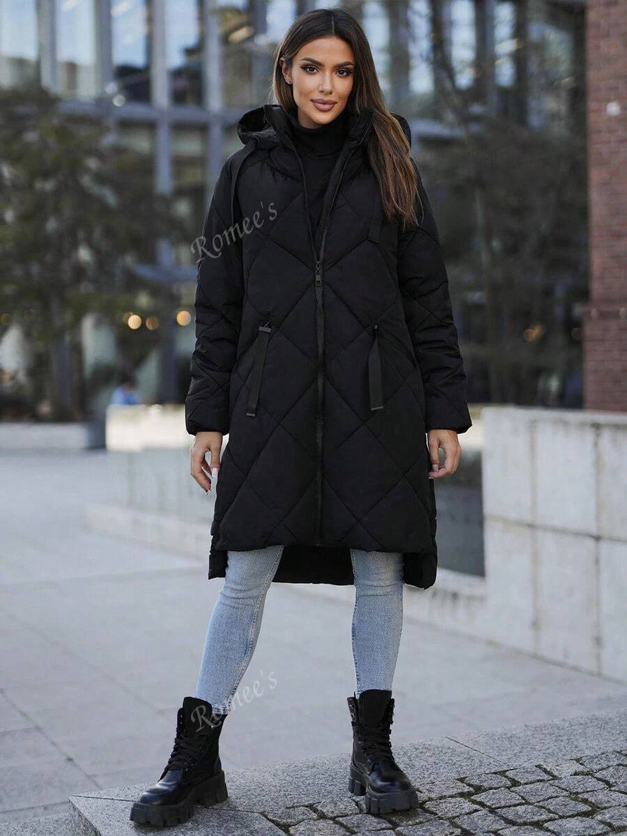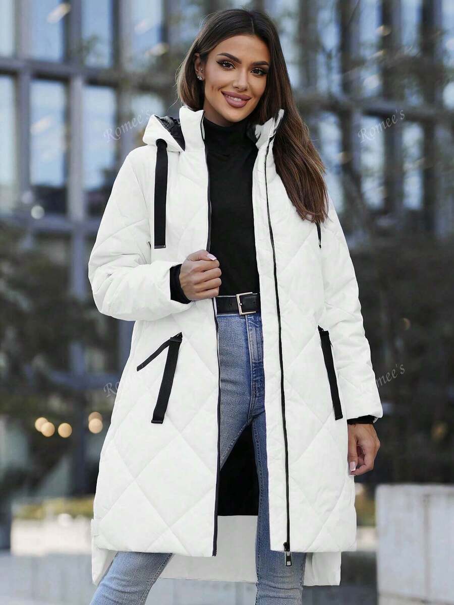 Giacca invernale lunga da donna in cotone casual per il tempo libero con cerniera e tasca a coste