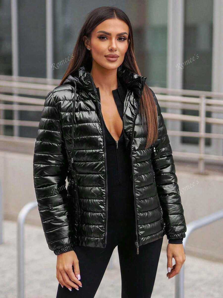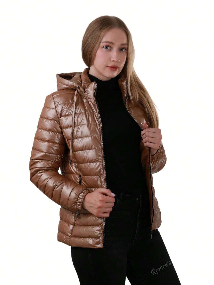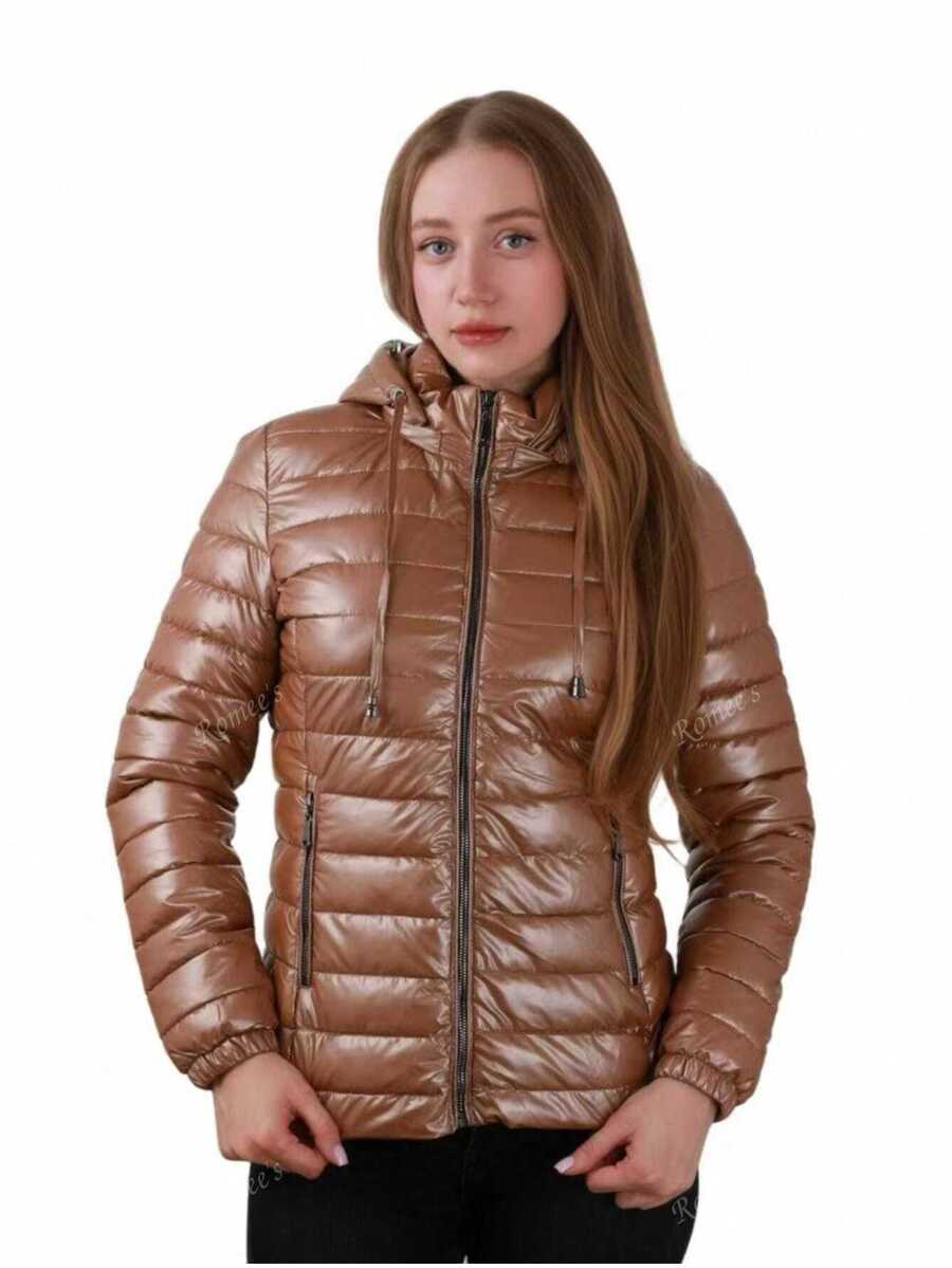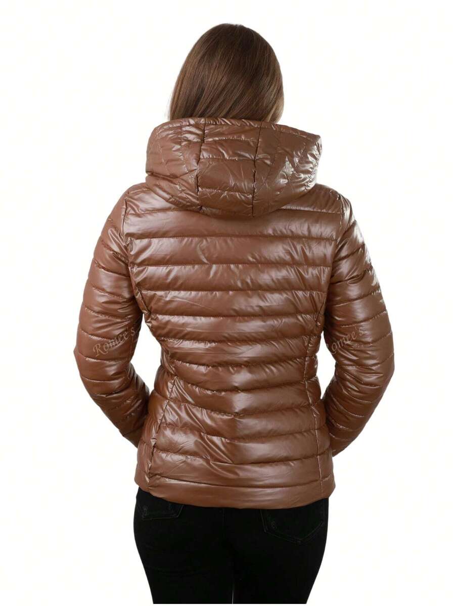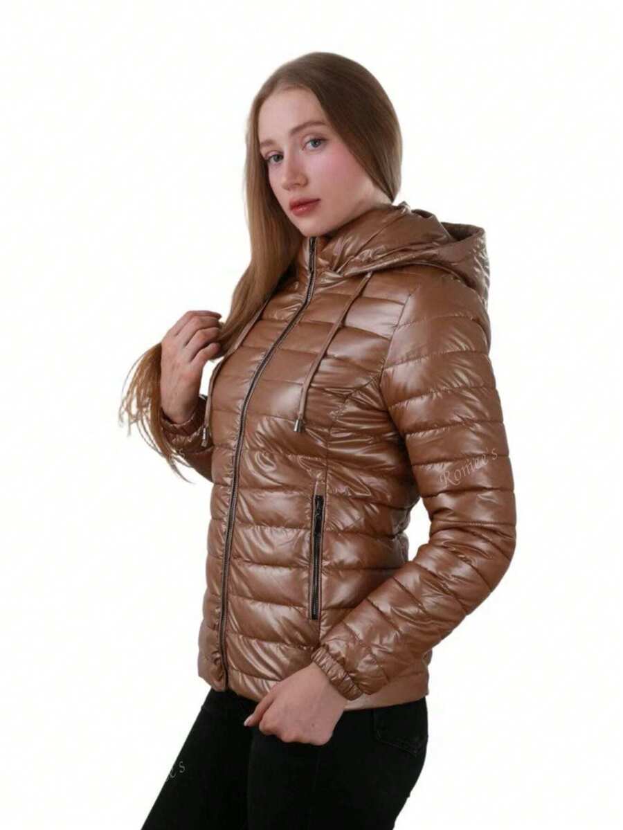 Giacca leggera con cappuccio in piuma d'oca lucida da donna