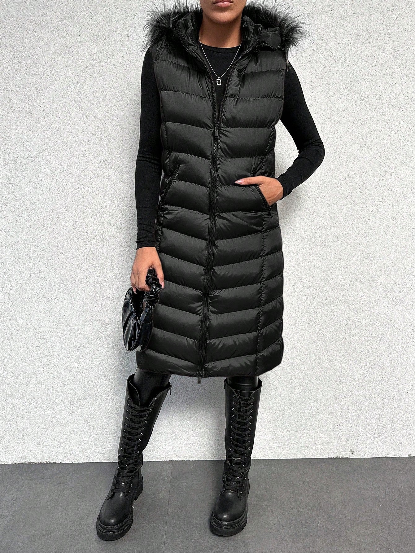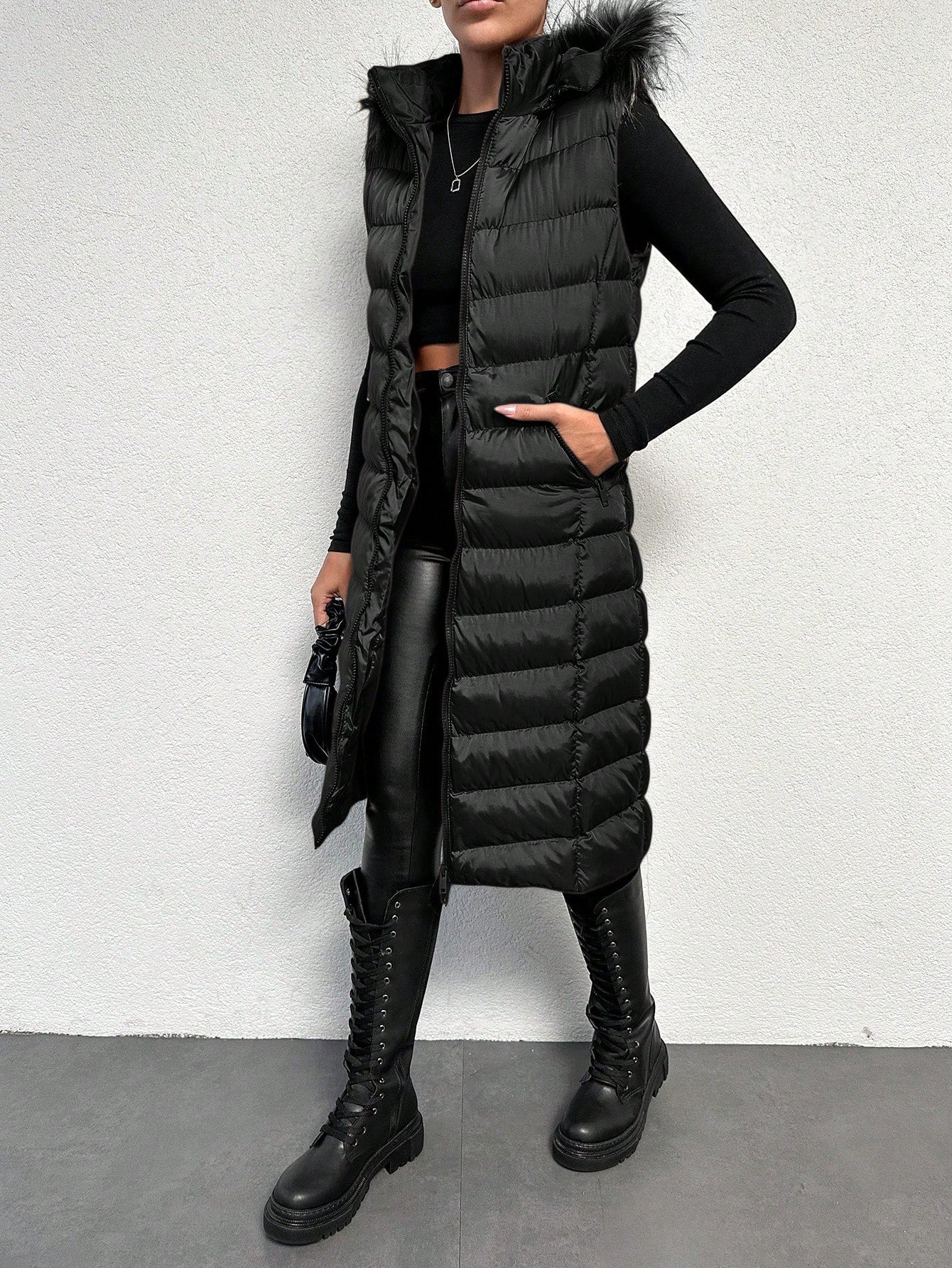 Giacca Spessa Senza Maniche Imbottita Nera Per Donne