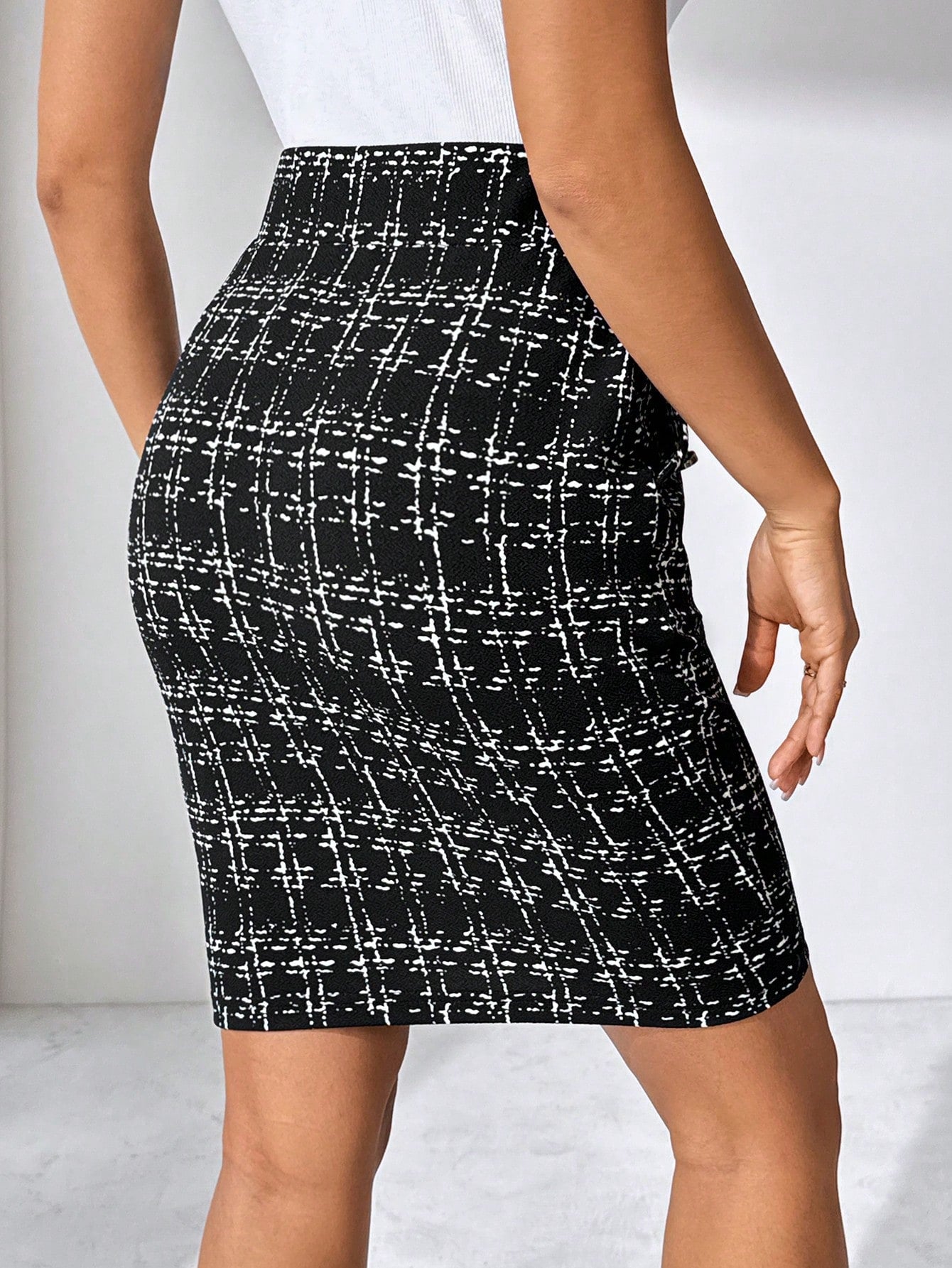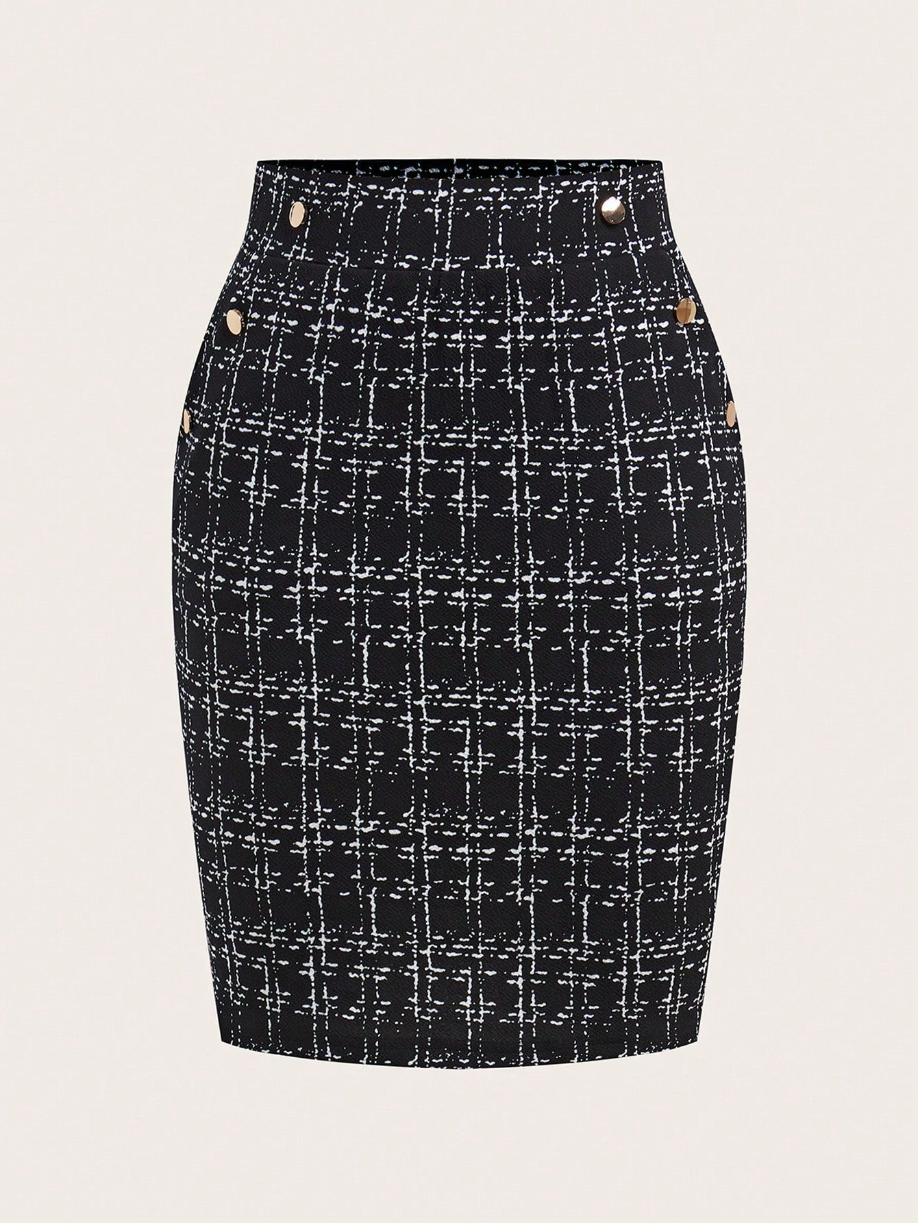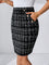 Gonna elegante da donna in ecopelle con tasche e fibbia in metallo