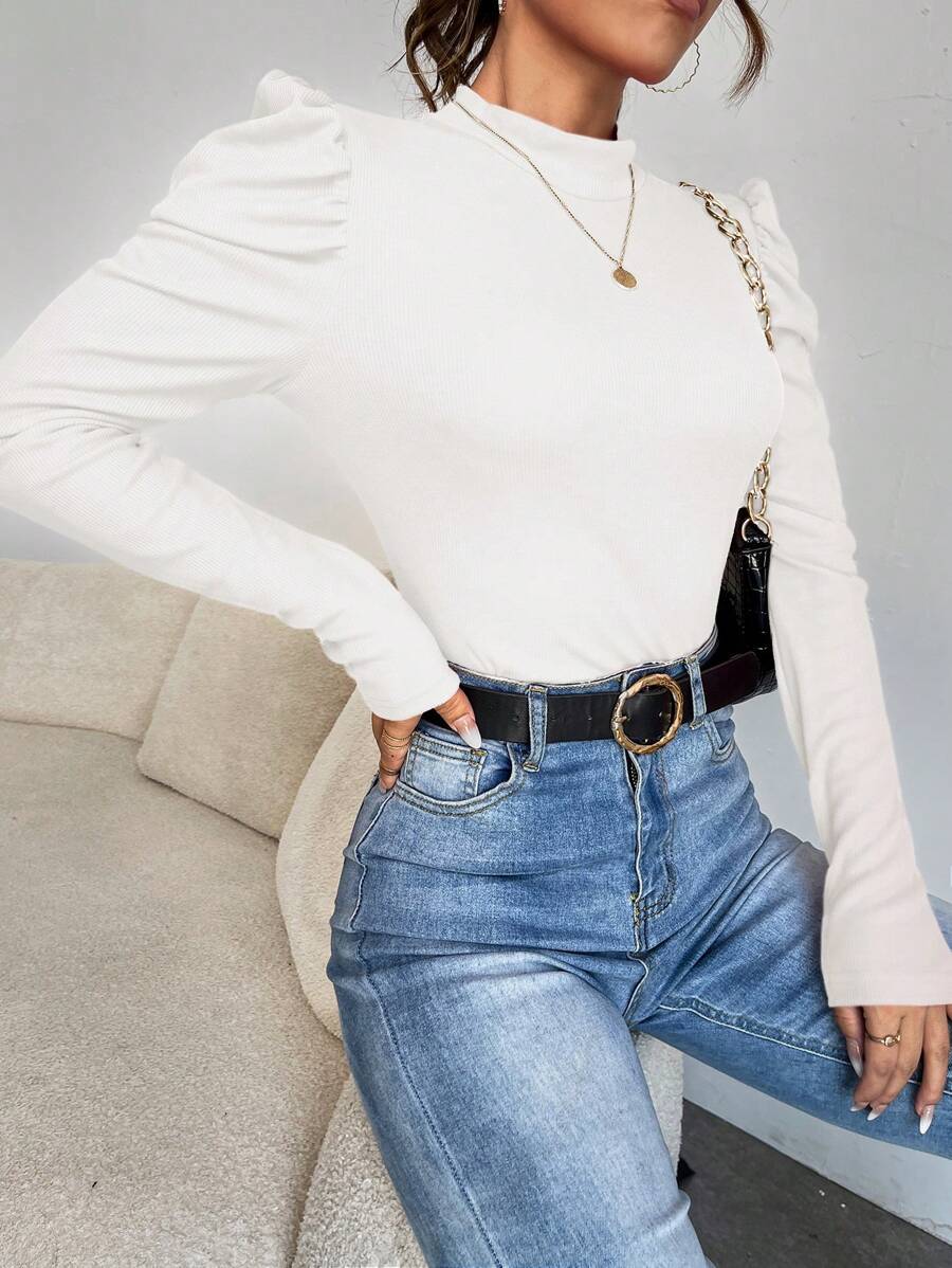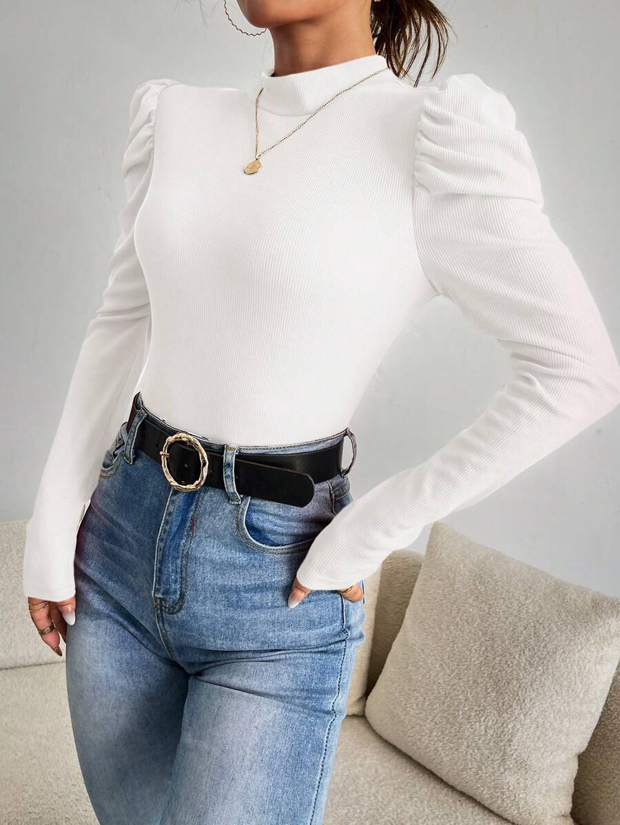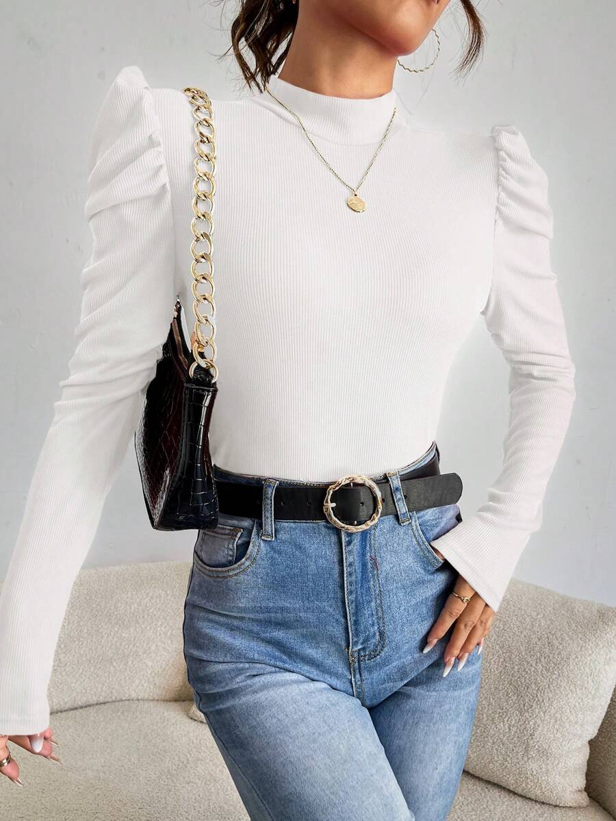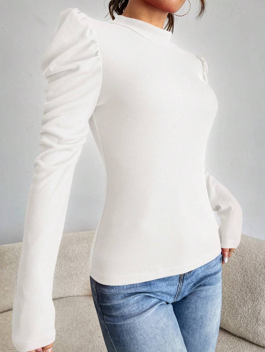 Magliette A coste Colore unico Elegante