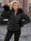 Piumino corto imbottito da donna, con cappuccio e polsini in pelliccia ecologica