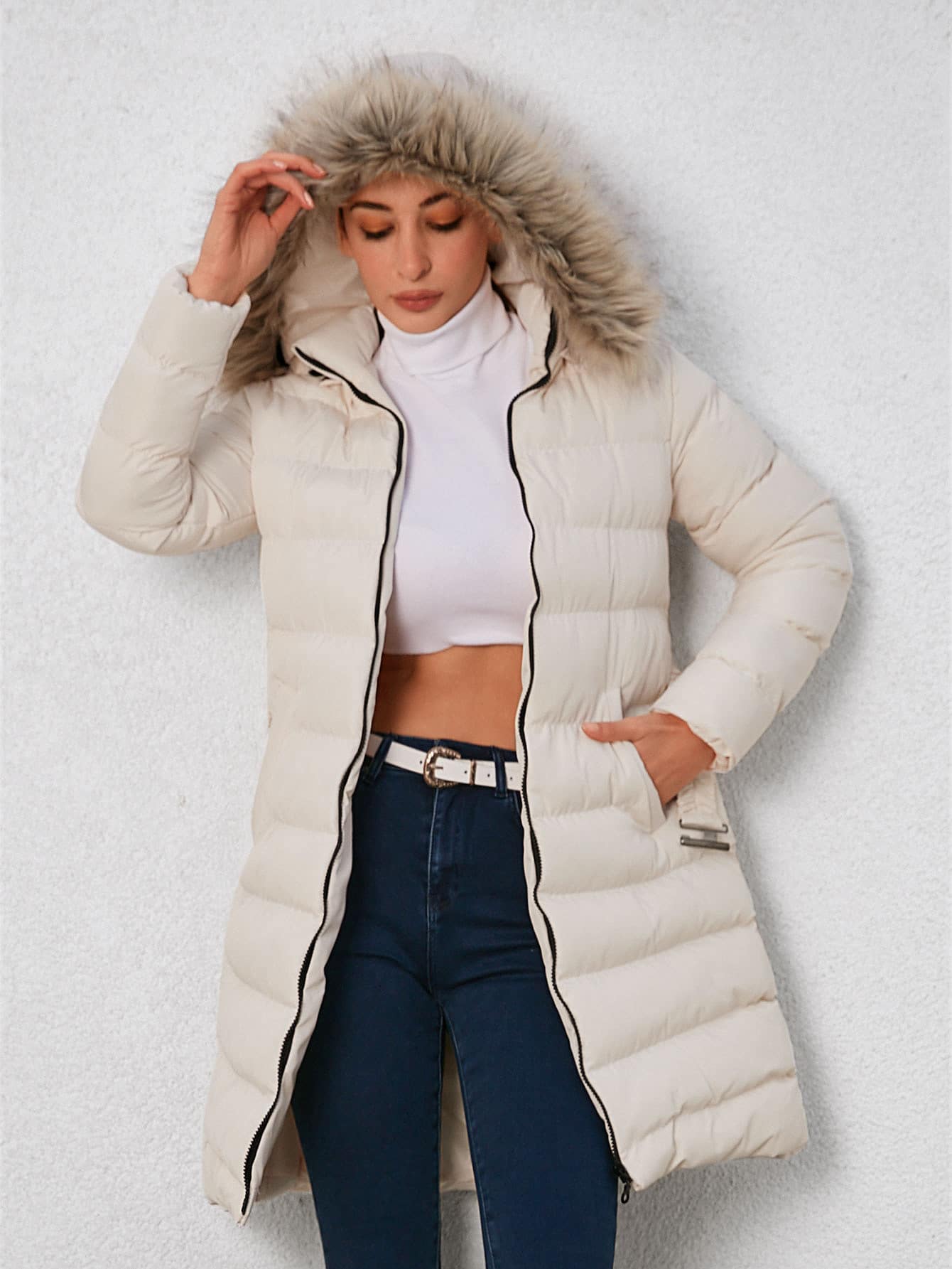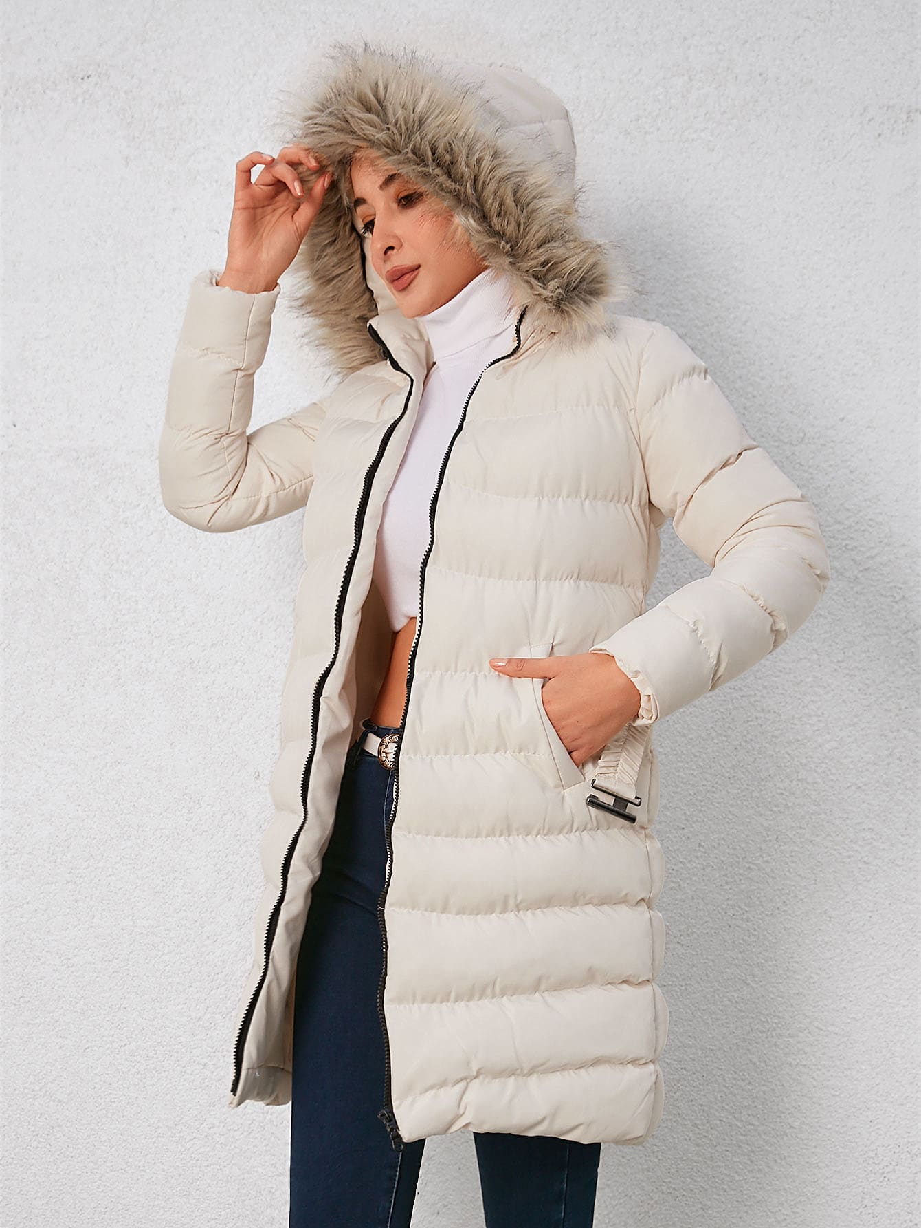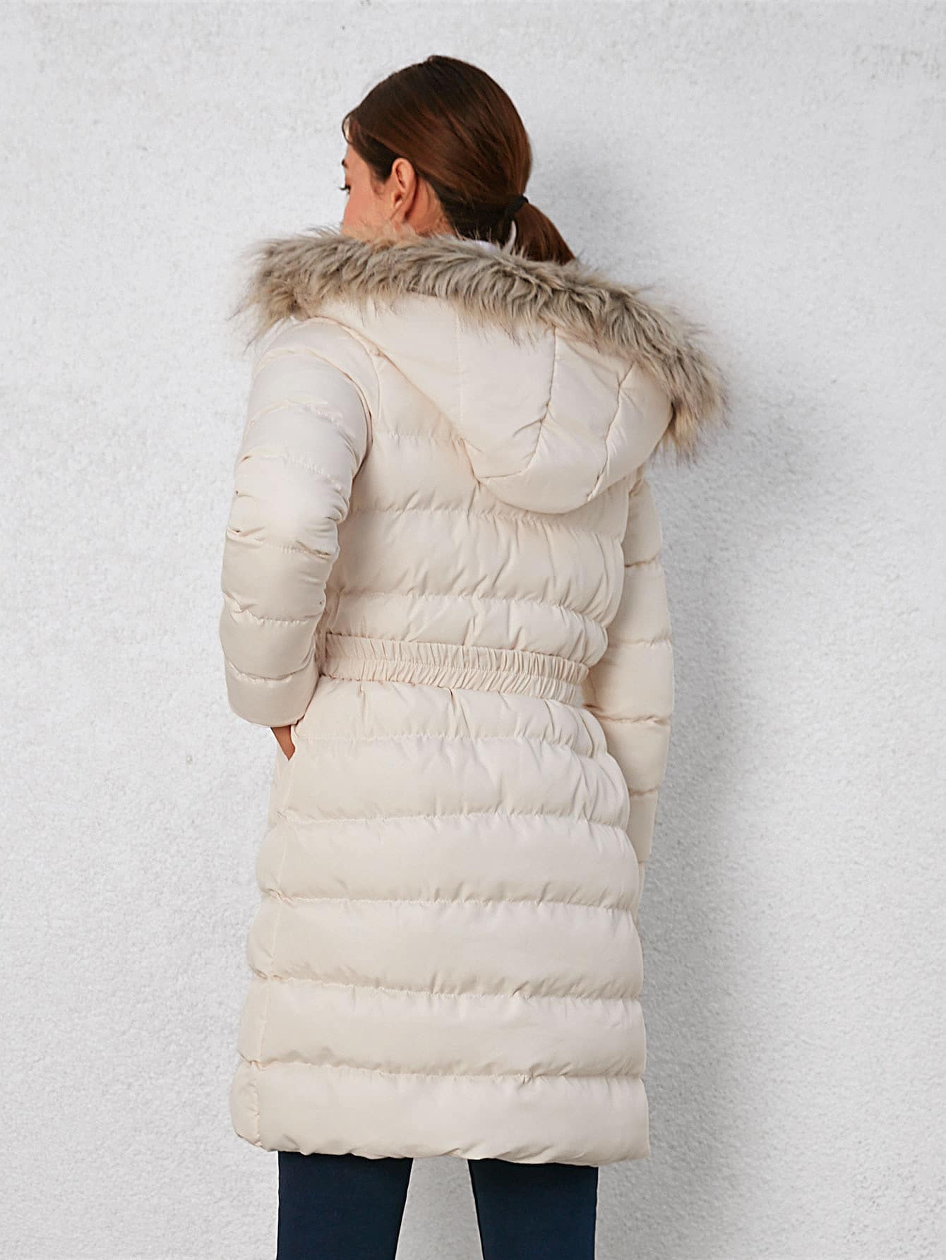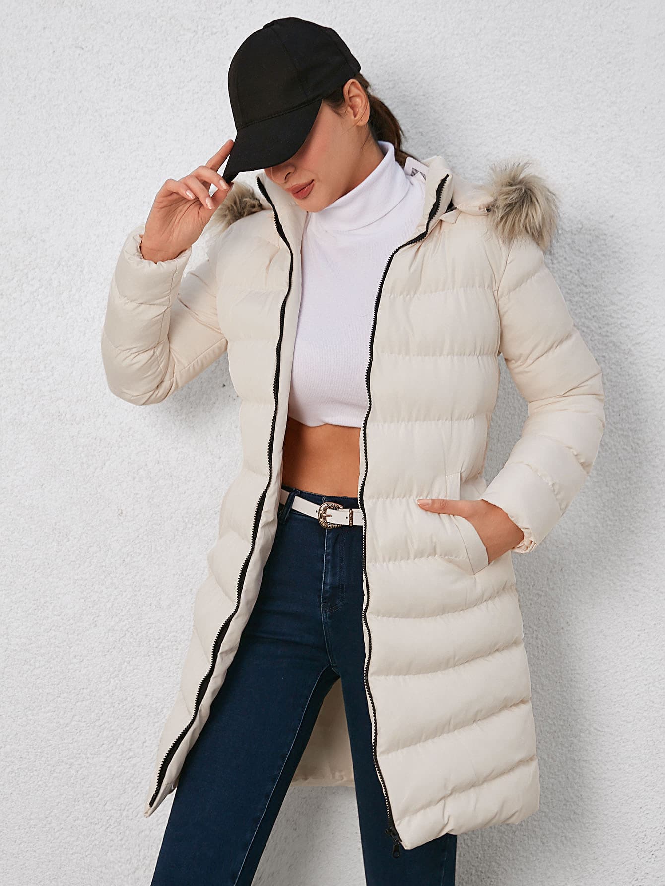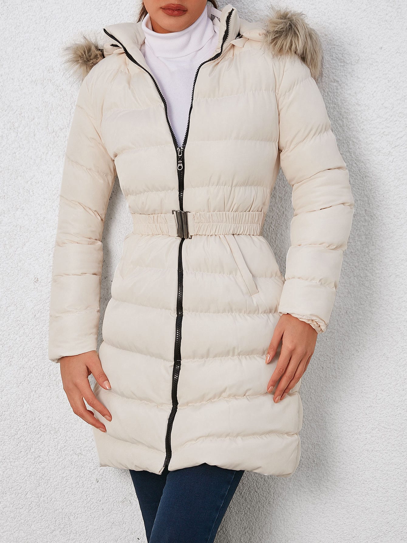 Piumino imbottito tasca inclinata bordo sfocato con cappuccio con cintura