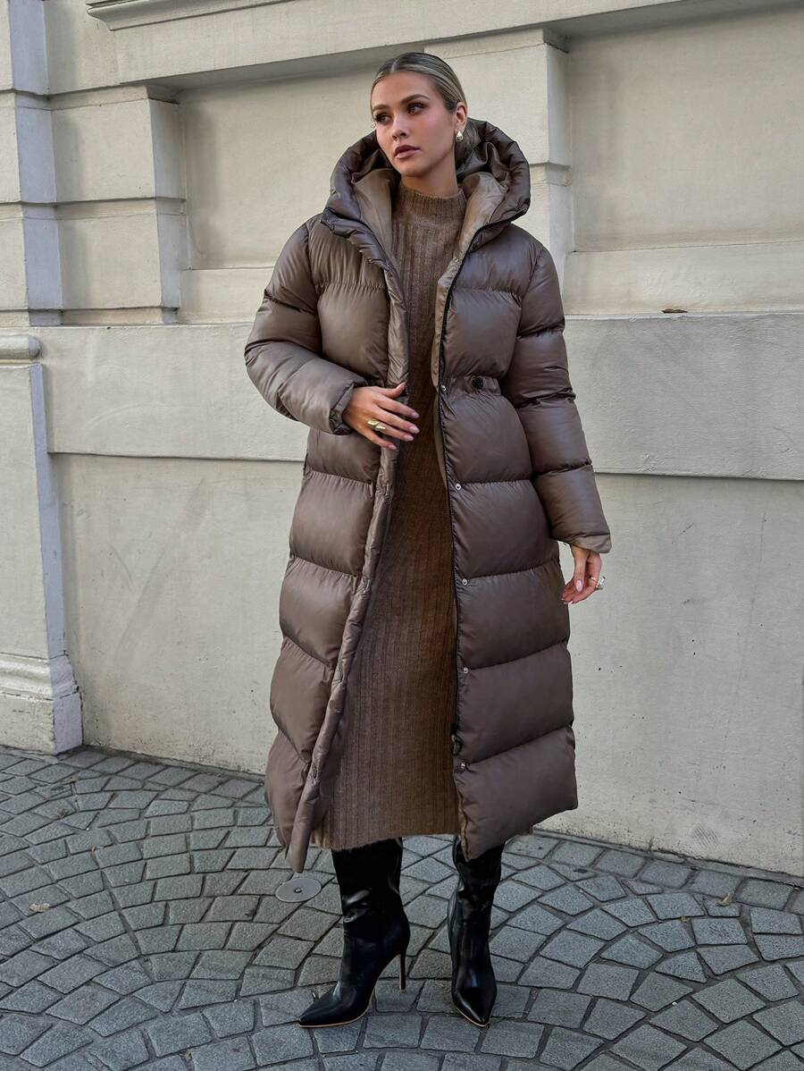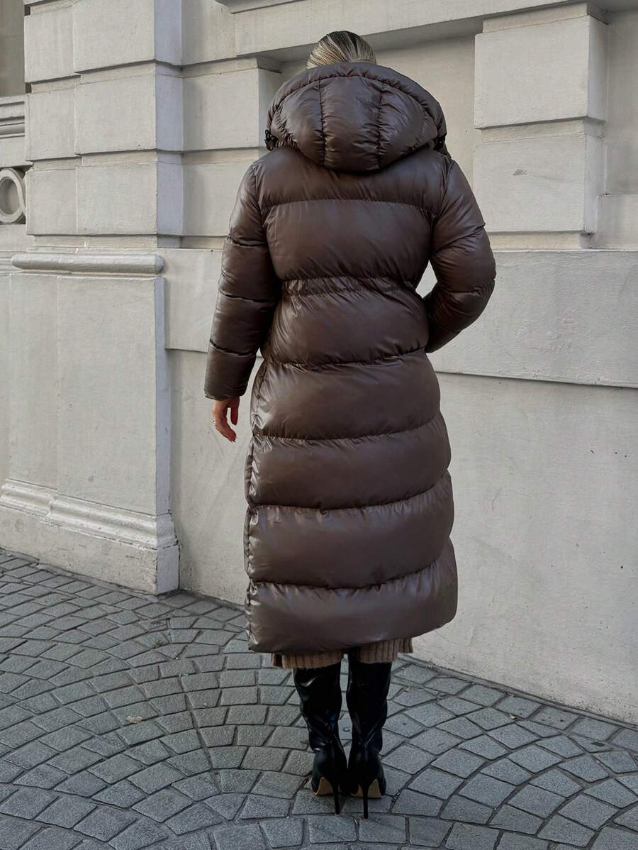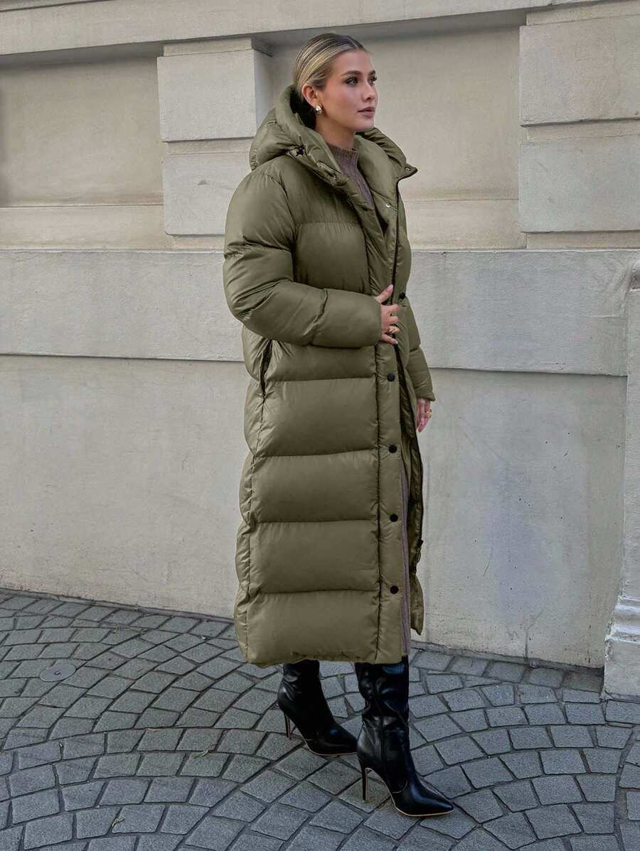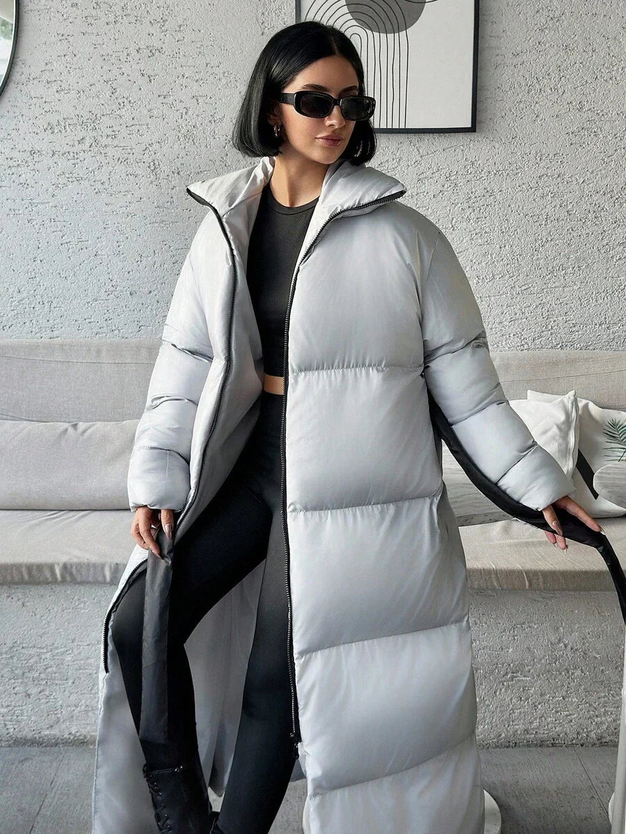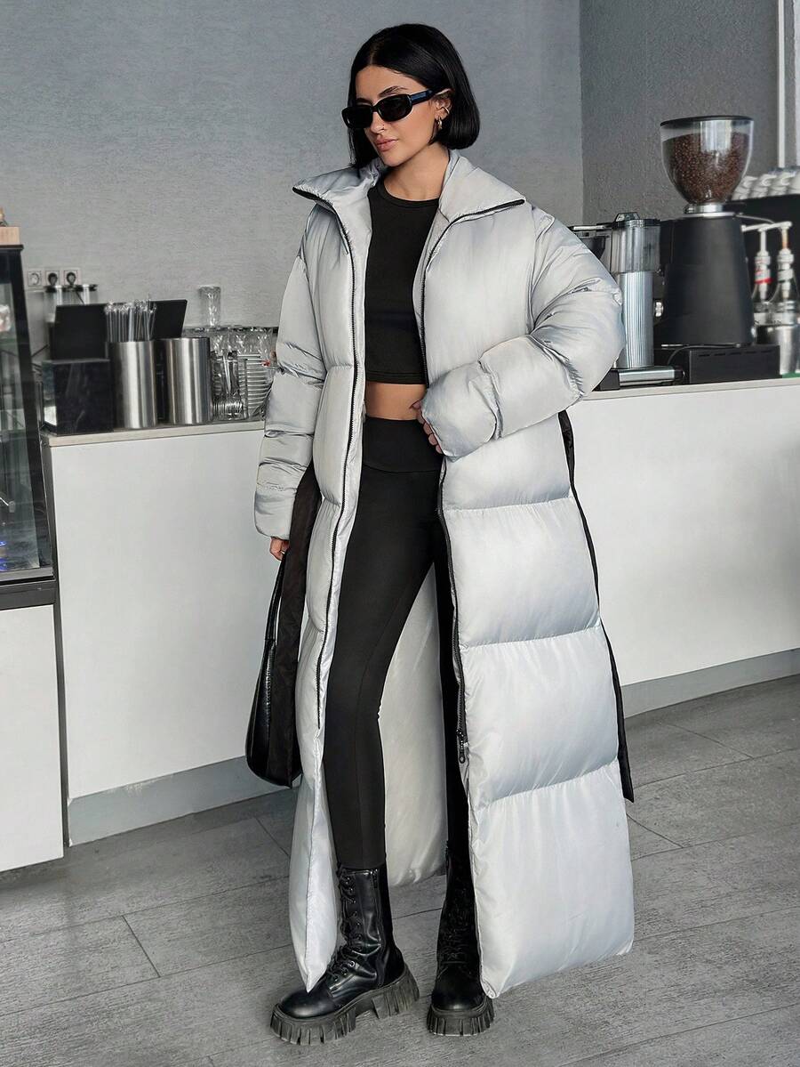 Piumino invernale lungo, elegante e super caldo, con collo alto, realizzato in tessuto impermeabile e lucido