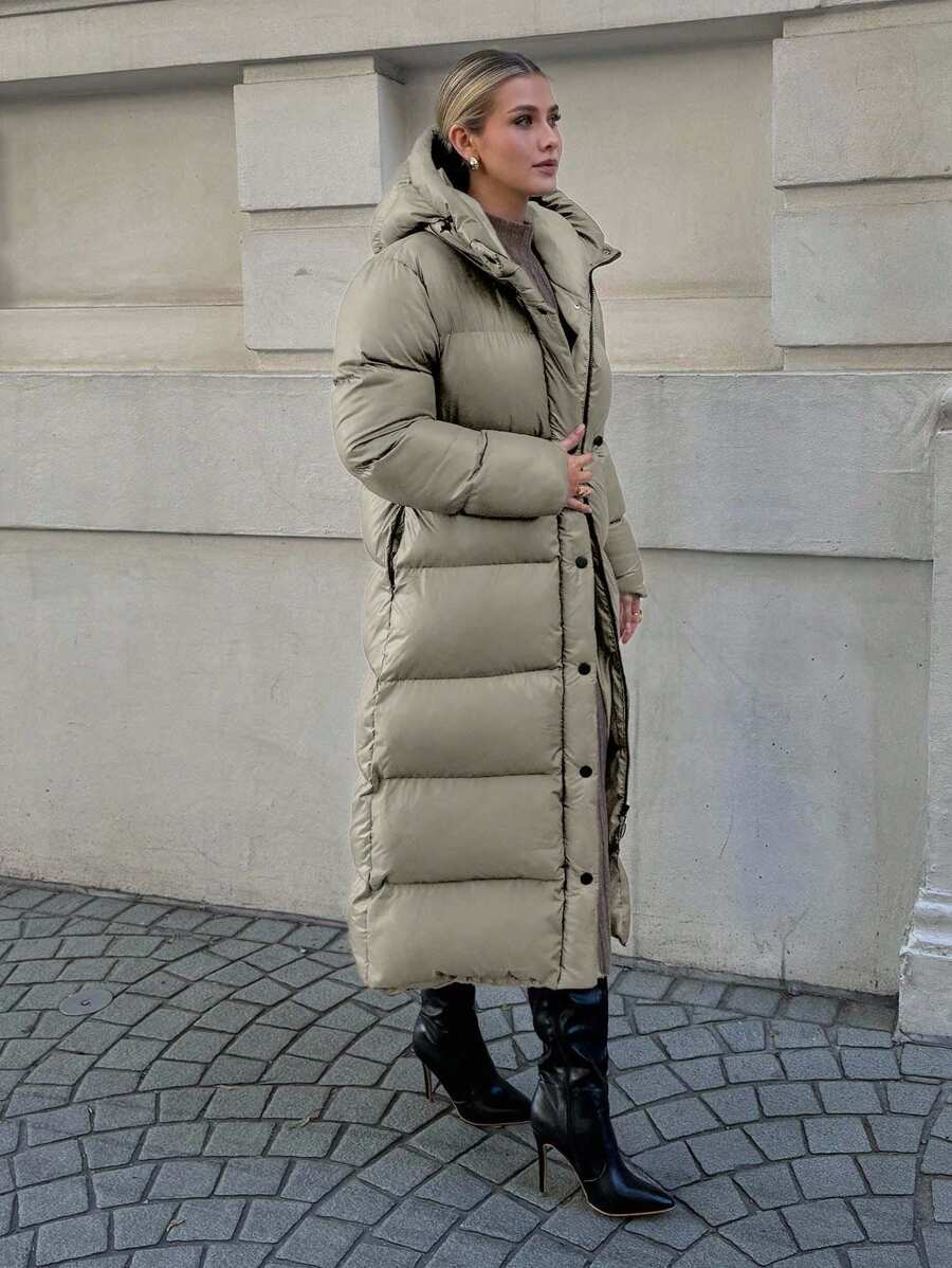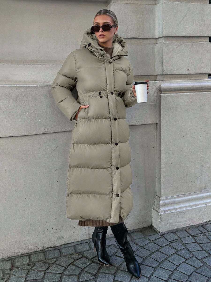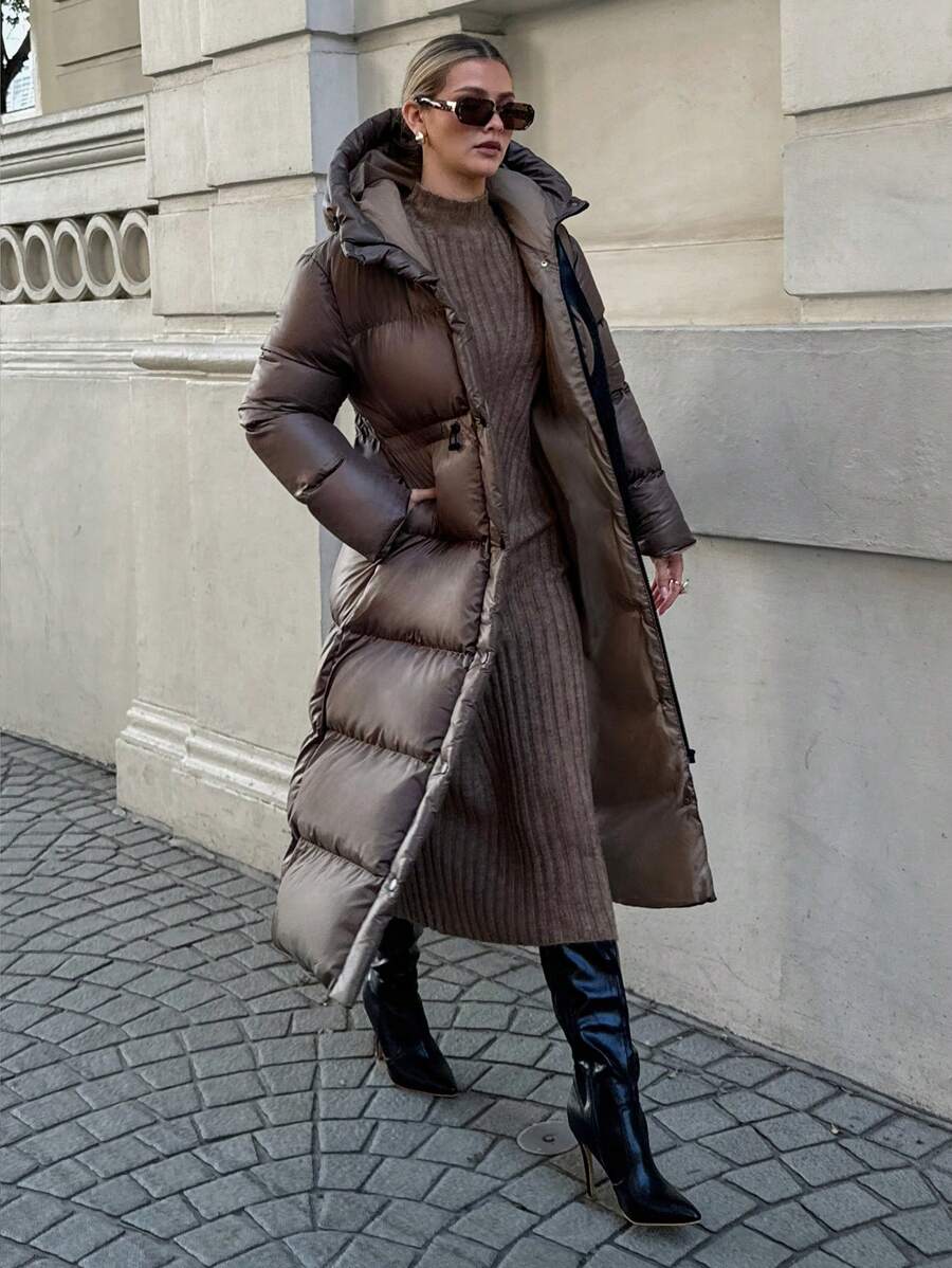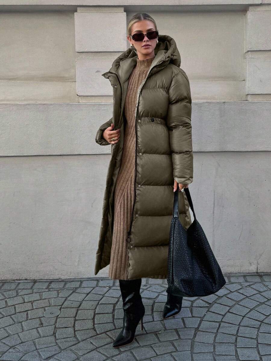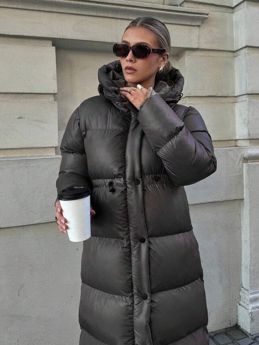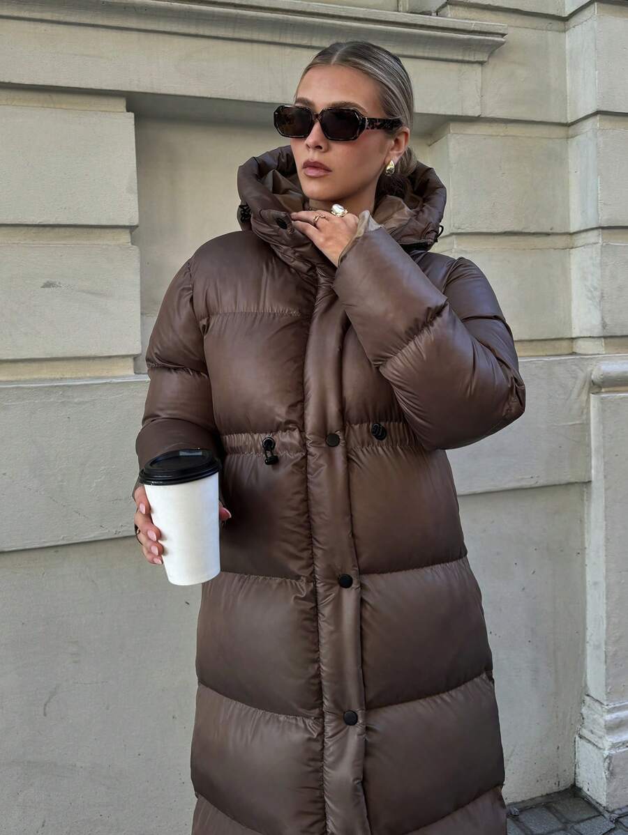 Piumino invernale lungo, elegante e super caldo, con collo alto, realizzato in tessuto impermeabile e lucido