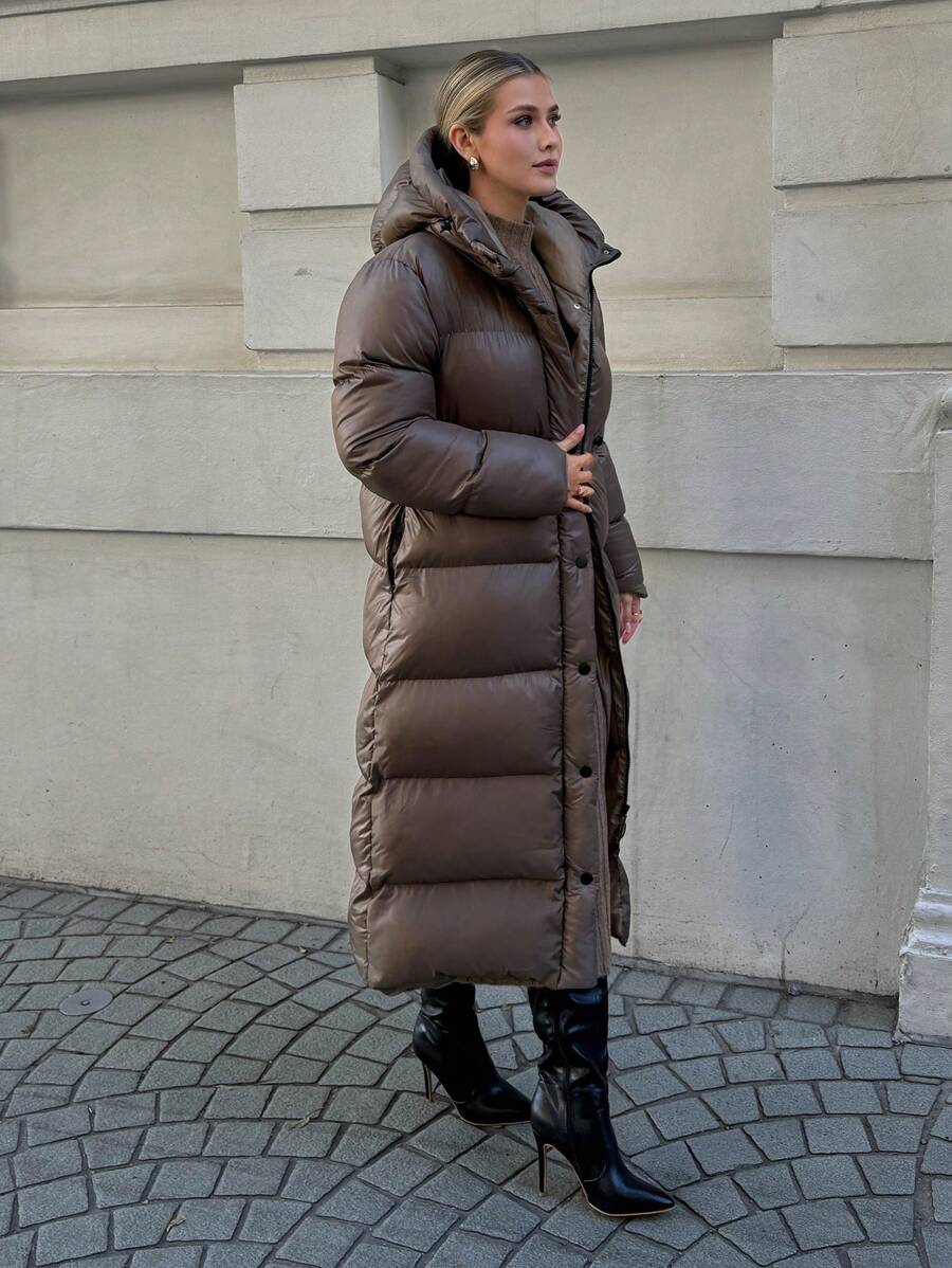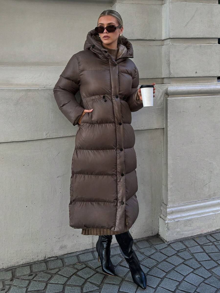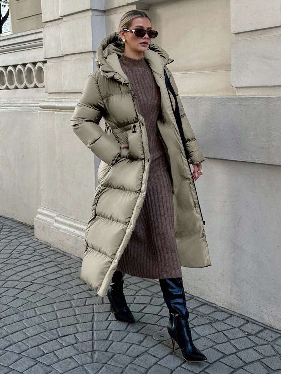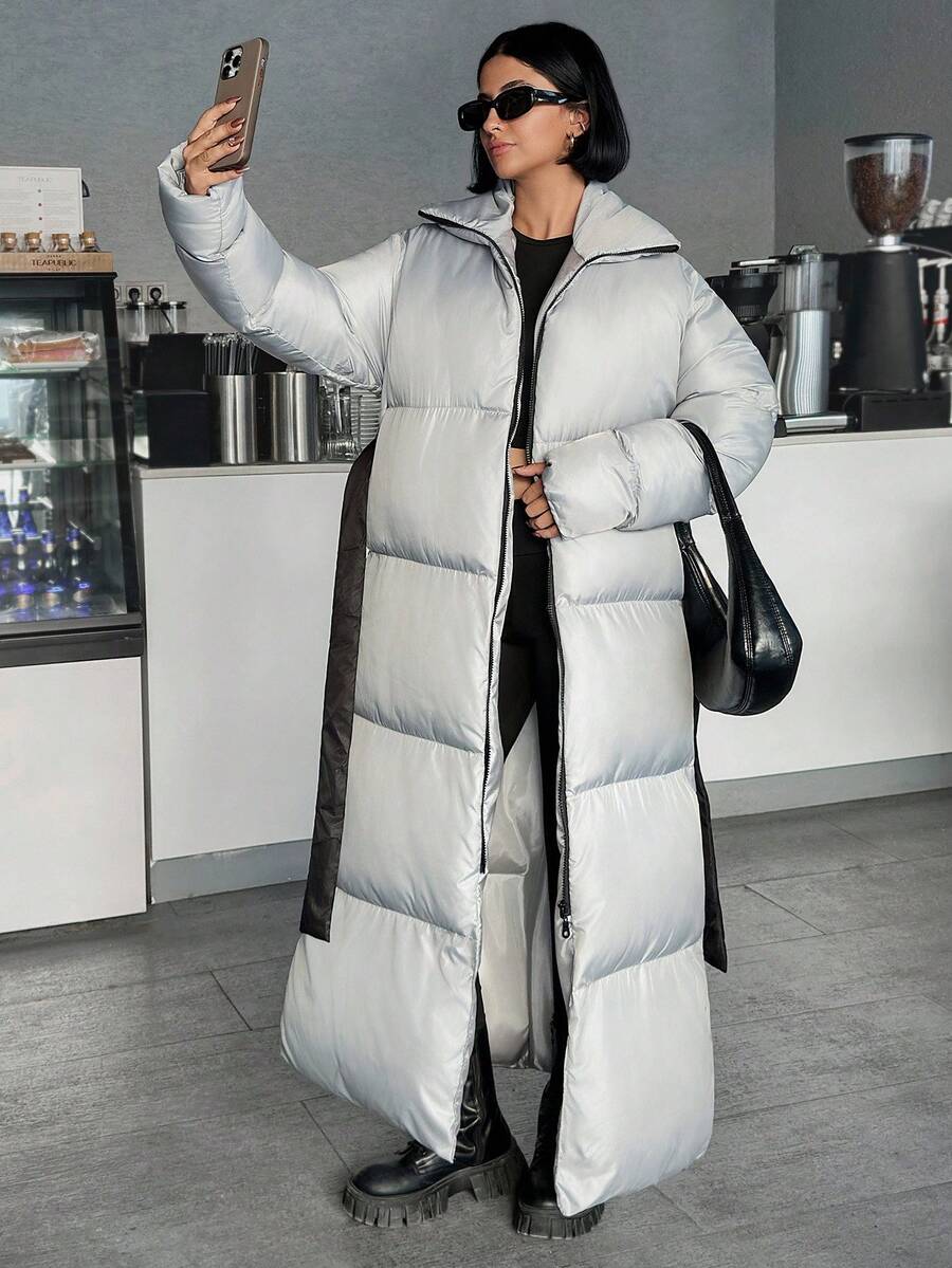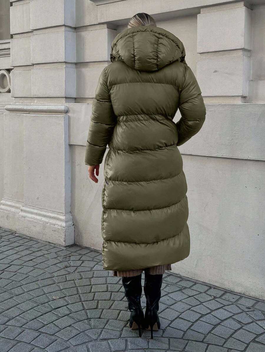 Piumino invernale lungo, elegante e super caldo, con collo alto, realizzato in tessuto impermeabile e lucido