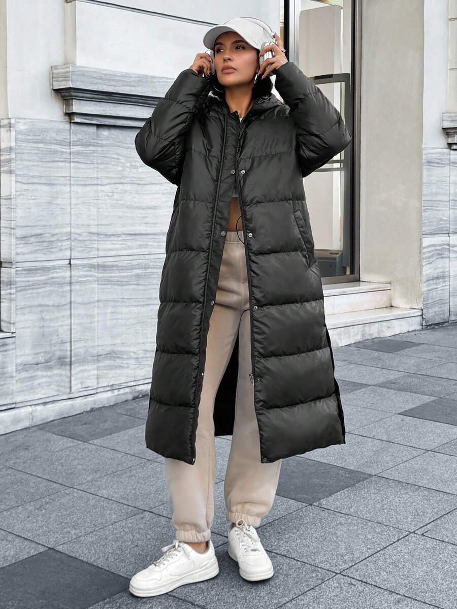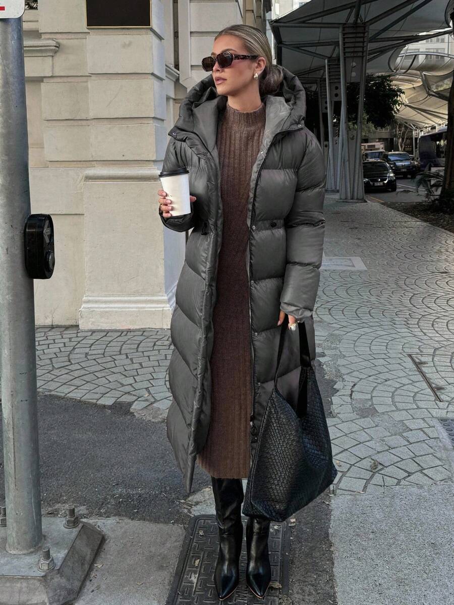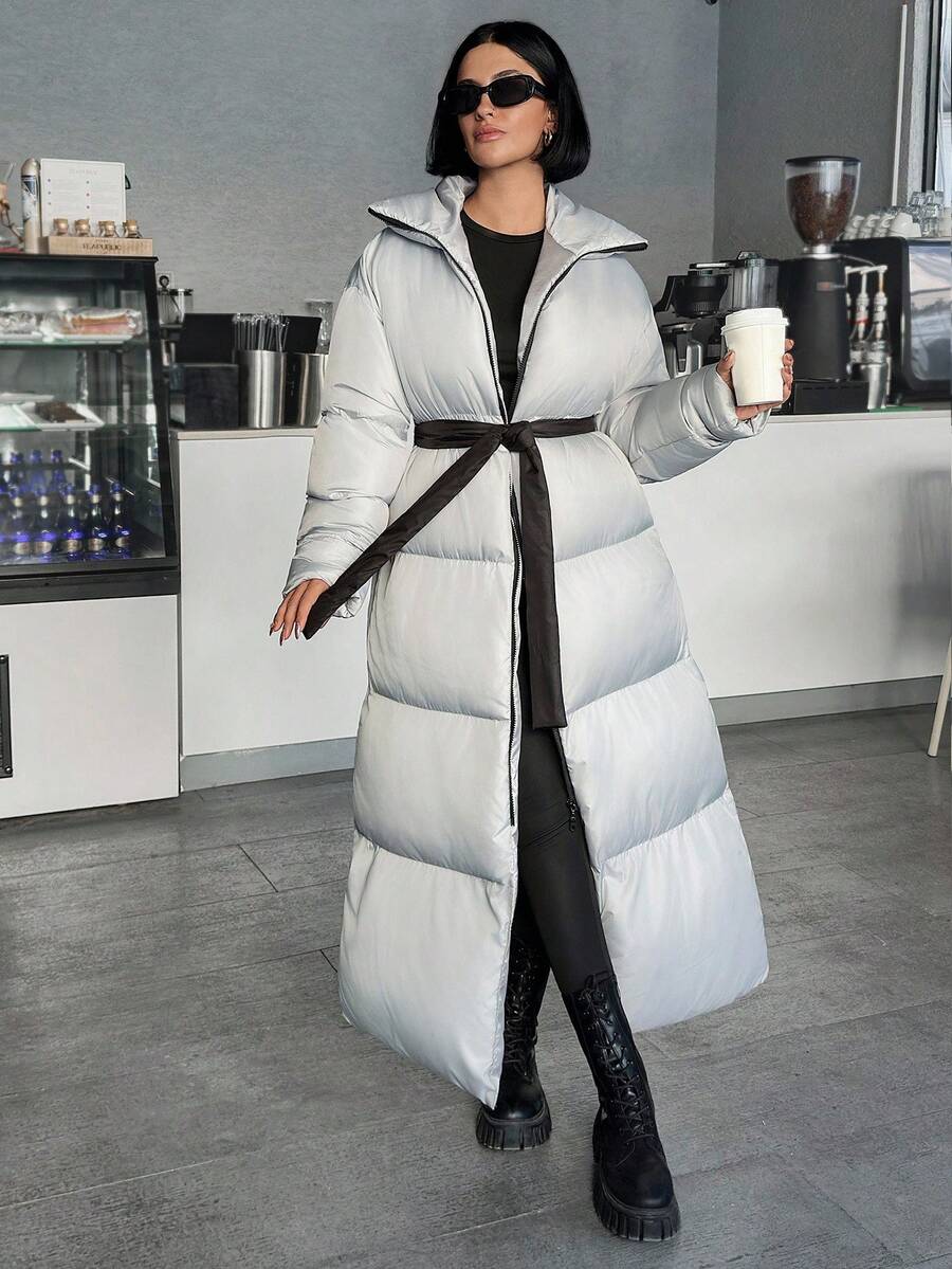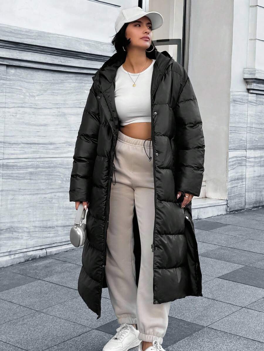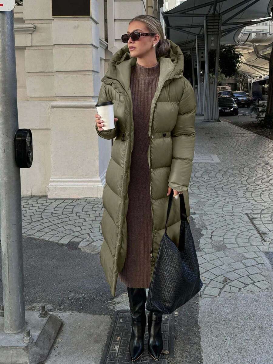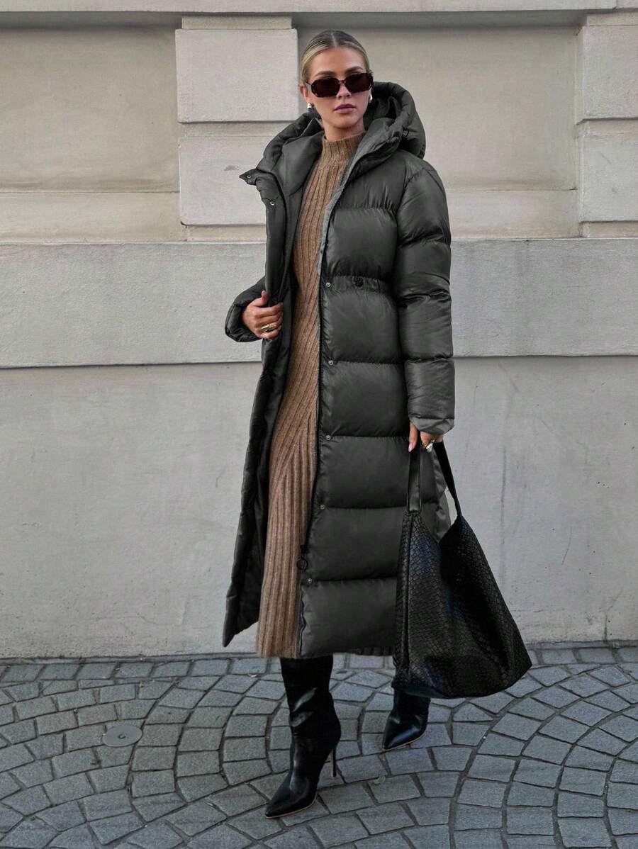 Piumino invernale lungo, elegante e super caldo, con collo alto, realizzato in tessuto impermeabile e lucido