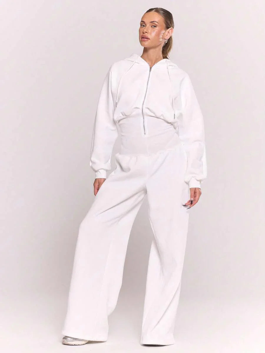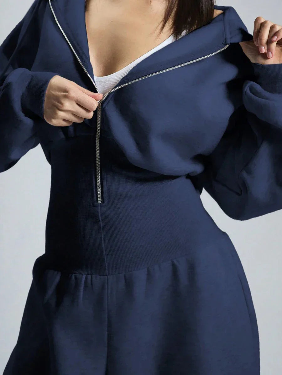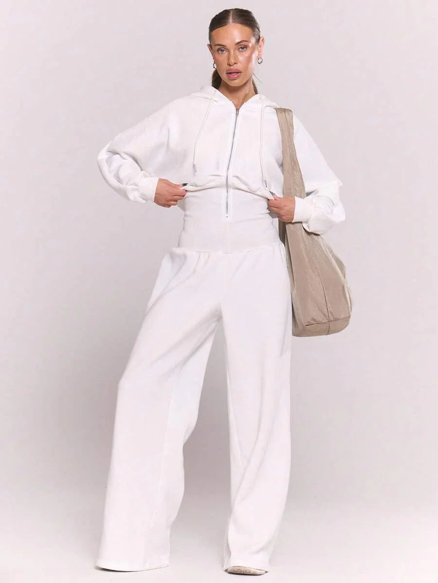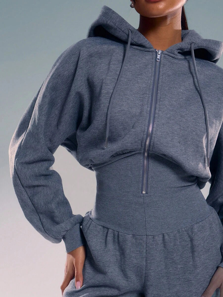 Tuta con cappuccio e chiusura lampo, vita stretta