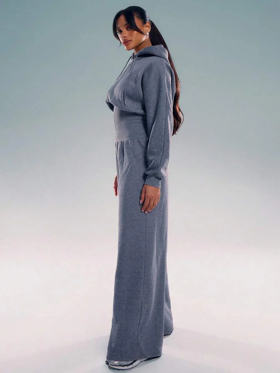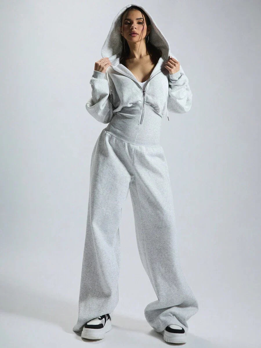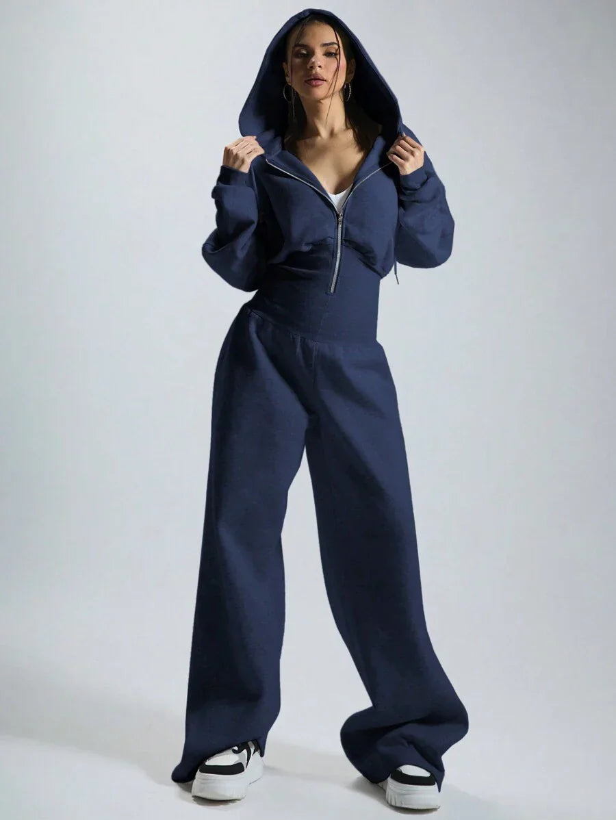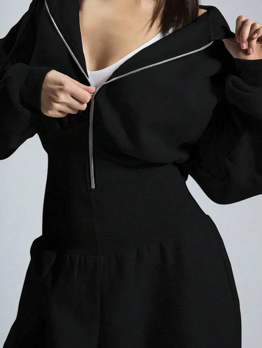 Tuta con cappuccio e chiusura lampo, vita stretta